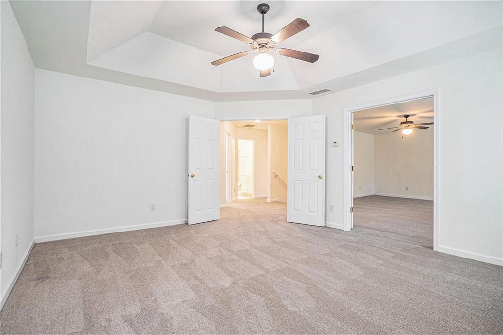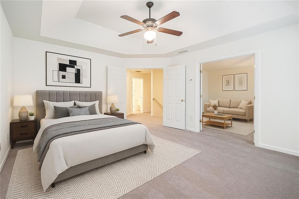 ***1 YEAR HOME WARRANTY FROM SELLERS, LIFETIME NO LENDER FEE REFINANCING*** This impressive 4-bedroom, 2.5-bath home offers space, versatility, and a seamless blend of style and comfort, within a vibrant community packed with amenities. The main level welcomes you with formal living and dining areas that flow into an open-concept layout, ideal for both daily living and entertaining. The kitchen features a bright breakfast nook with a clear view into the fireside living area, creating a comfortable and connected atmosphere. A convenient half bath rounds out the main floor. Upstairs, all four bedrooms are thoughtfully positioned, including one that connects directly to the primary owner's suite through elegant glass French doors, the perfect bonus room, sitting room, or home office. The primary ensuite features vaulted ceilings, a double vanity, soaking tub, separate glass framed shower, and a spacious walk-in closet. The laundry room is also located on the upper level for added convenience. Recent updates include a roof and exterior paint that are approximately 1.5 years old, new front yard sod installed 9 months ago, and fresh carpet and interior paint that give the home a clean, updated feel. The backyard offers a private, fenced-in area with a patio, ideal for outdoor relaxation. As part of a well-maintained community, residents enjoy access to a swimming pool, tennis courts, pickleball courts, a playground, and a small lake. This home blends modern updates with timeless design in a location that offers both comfort and connection. Discounted rate options and no lender fee future refinancing may be available for qualified buyers of this home.