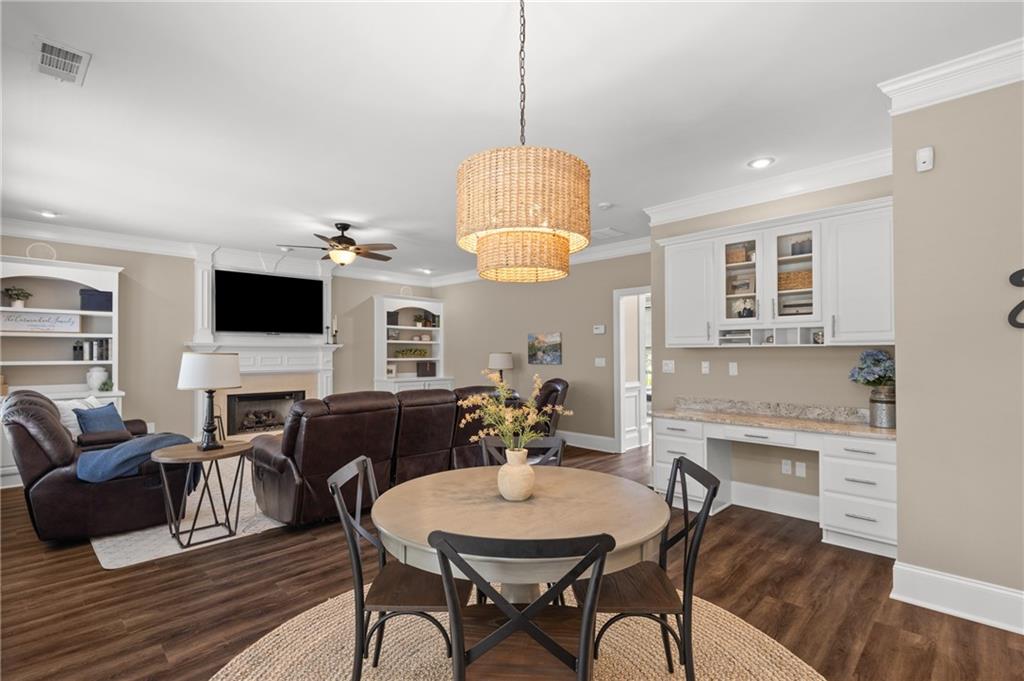 Spacious 5-Bedroom Home in Swim/Tennis Community! Welcome to this beautifully updated 5-bedroom, 2.5-bath home in a highly sought-after swim/tennis community. Boasting an organizer’s dream 2-car garage and professionally landscaped grounds, this property perfectly combines curb appeal with a lifestyle that blends outdoor enjoyment and comfortable, functional indoor living. Inside, you’ll find a 2-story foyer and main living areas with luxury vinyl plank flooring throughout. The floor plan includes a formal dining room, separate living room, and a cozy fireside family room with built-in bookshelves. The bright, open kitchen offers white cabinetry, granite countertops, stainless steel appliances, a large island, and a clear view to the family room—perfect for entertaining. Upstairs, the oversized master suite is a true retreat with a tray ceiling, walk-in closet, and a spa-like en-suite bathroom with double vanities, a whirlpool tub, and a separate shower. Four additional bedrooms plus a dedicated office provide plenty of space for family, guests, or working from home. Backyard Oasis – Step outside to an expansive backyard designed for relaxation and entertaining! Multiple patios, cozy sitting areas, a firepit retreat, and party lights create the perfect ambiance for evenings with friends or family gatherings. Whether it’s summer cookouts, late-night conversations under the stars, or quiet mornings with coffee, this outdoor space truly sets the home apart. This property offers space, style, and access to fantastic community amenities—pool, tennis, and more. Don’t miss your chance to enjoy both indoor comfort and an amazing outdoor lifestyle!