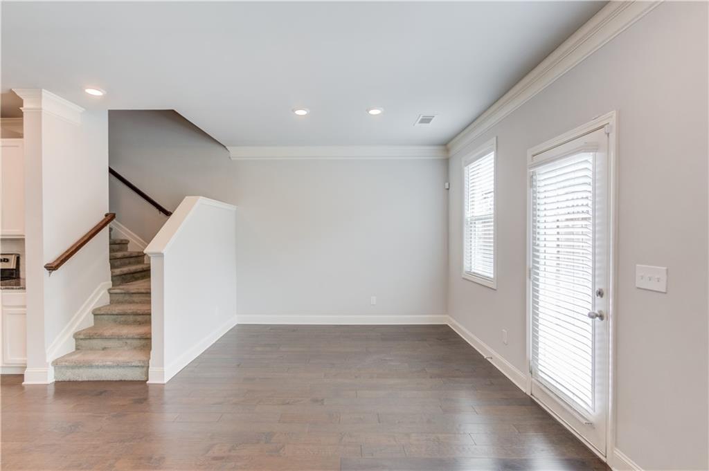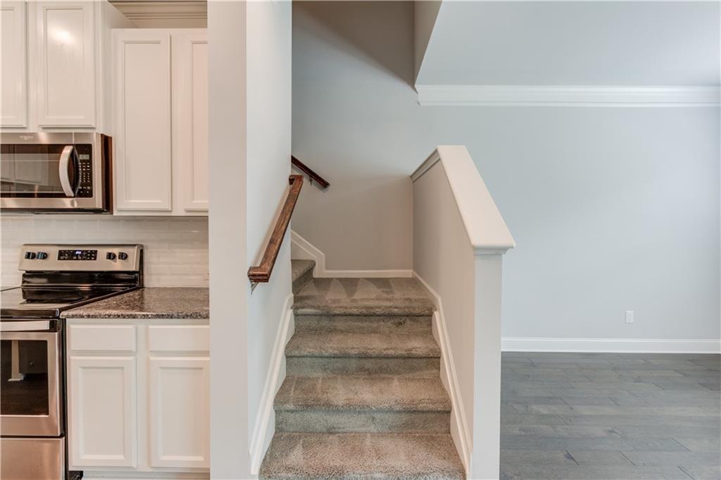 This immaculate townhome with basement is located in the highly desirable Mill Creek school district. The main level features stunning hardwood floors and a spacious great room that flows seamlessly into an open kitchen and dining area. The kitchen boasts an oversized center island with bar seating, granite countertops, stainless steel appliances and a generous walk-in pantry, perfect for both daily living and entertaining. Upstairs you'll find a luxurious owner's suite complete with a large walk-in closet and an oversized shower. This level also includes two additional bedrooms, two full bathrooms, a den and a convenient laundry room. Enjoy the outdoors with an upper deck off the dining room, a patio accessible from the basement, and a spacious backyard with green space. Easy access to I-85, and just minutes from local restaurants, shoppings and more.