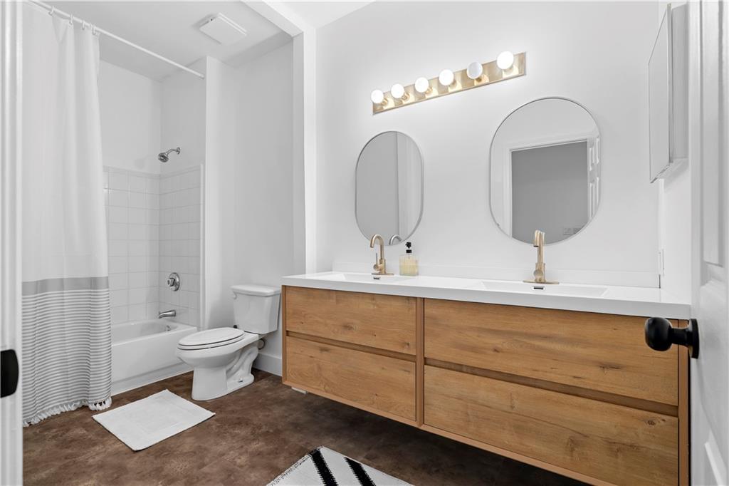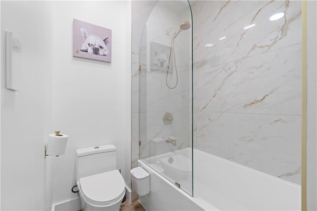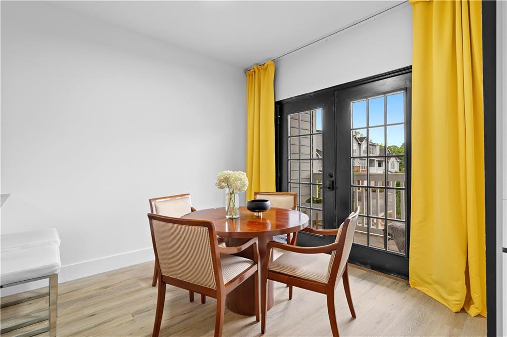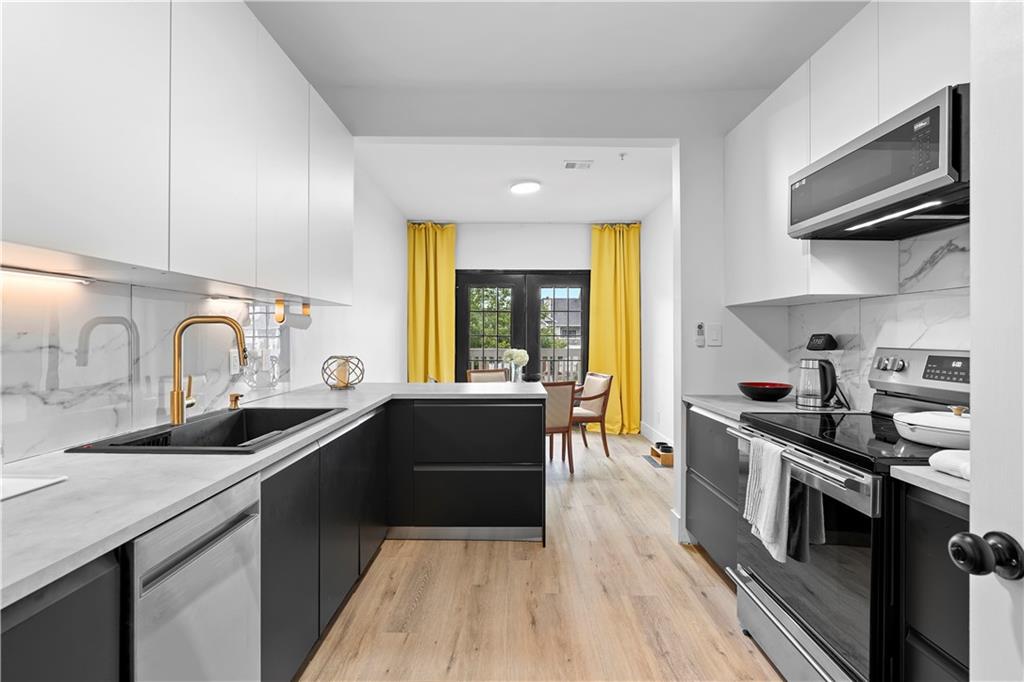 NEW EVERYTHING - COMPLETELY RENOVATED! Experience the luxury and feel of a brand new construction in this completely gutted and reimagined 3 bedroom, 2.5 bathroom home where every detail has been meticulously updated. From the ground up, this unit boasts all new plumbing, electrical, and top-of-the-line finishes throughout, ensuring a modern, worry free living experience. Inside you'll find gorgeous LVP flooring that flows seamlessly throughout, enhanced by tall baseboards. The jaw dropping kitchen is a chef's dream with high end cabinetry featuring hidden handle, soft-close cabinets and drawers, plenty of counter space, and brand new stainless steel appliances including a low profile, over the range, microwave. Enjoy casual dining at the breakfast bar with seating for two or dining area just off the kitchen with french doors opening to a balcony with a serene pool view, ideal for a morning coffee or unwinding in the evening. The spacious family room is anchored by a cozy fireplace, creating a perfect gathering space just off the entry. The primary suite is a private retreat with a dramatically expanded walk in closet and a spa inspired bathroom complete with an oversized soaking tub, stunning large format tile, and designer finishes. The other two additional bedrooms also have custom closets with built-ins for even more storage space! The guest bathroom has been reconfigured to create a more open, airy feel, while the powder room is fully refreshed with modern touches. Additional upgrades include new door handles, smart switches compatible with Alexa and Google, and fresh paint throughout. The deep 2 car garage leaves you with even more storage space or a place to park a motorcycle/golf cart in addition to two vehicles. Enjoy the community’s exclusive amenities, including a private, fenced in dog park. Situated in a prime location with quick access to The Battery, Truist Park, and Smyrna Market Village, plus easy connectivity to I-75/I-285 for around a 20 minute drive to the airport for frequent travelers! This home only needs you!