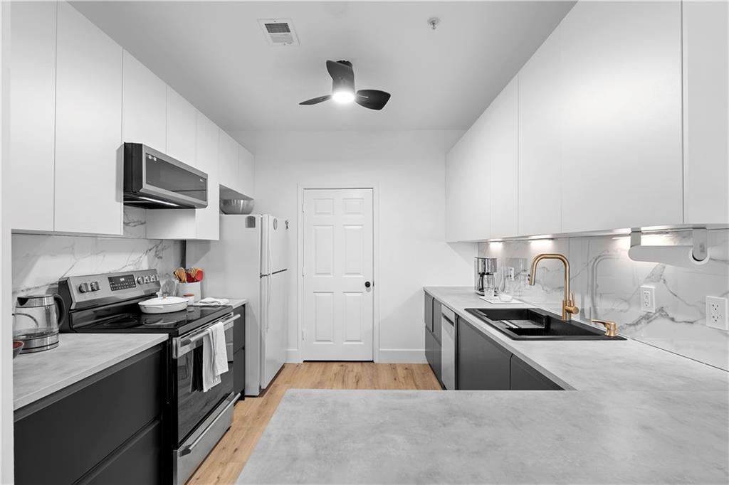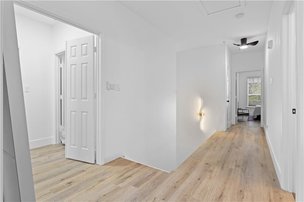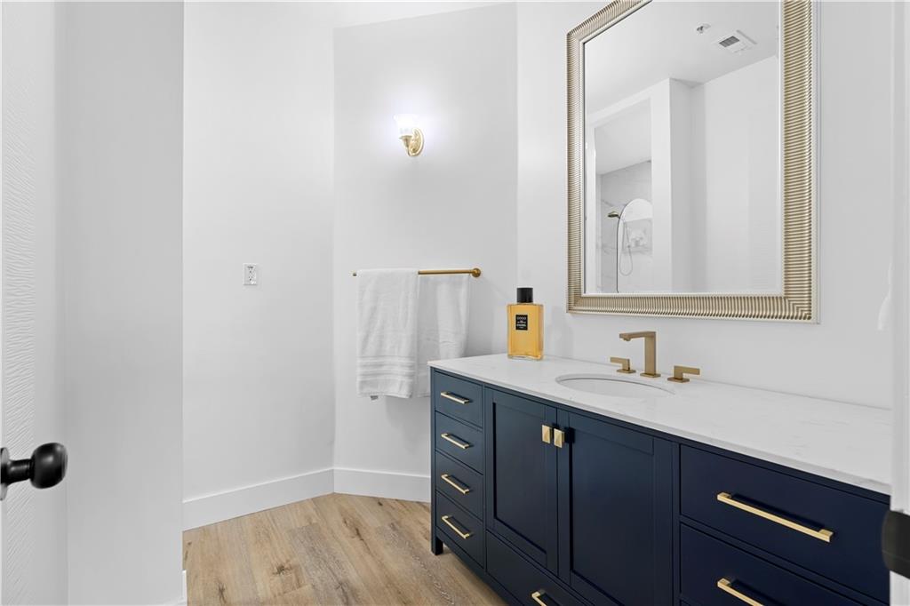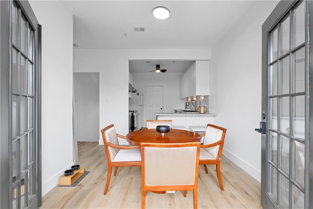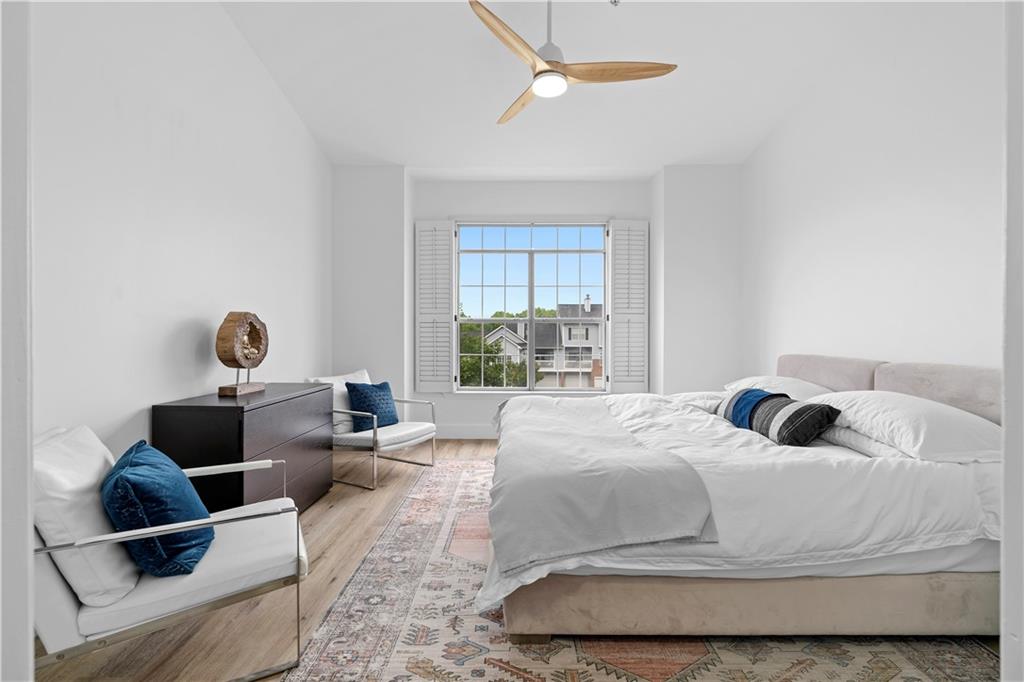 NEW EVERYTHING - COMPLETELY RENOVATED! Experience the luxury and feel of a brand new construction in this completely gutted and reimagined 3 bedroom, 2.5 bathroom home where every detail has been meticulously updated. From the ground up, this unit boasts all new plumbing, electrical, and top-of-the-line finishes throughout, ensuring a modern, worry free living experience. Inside you'll find gorgeous LVP flooring that flows seamlessly throughout, enhanced by tall baseboards. The jaw dropping kitchen is a chef's dream with high end cabinetry featuring hidden handle, soft-close cabinets and drawers, plenty of counter space, and brand new stainless steel appliances including a low profile, over the range, microwave. Enjoy casual dining at the breakfast bar with seating for two or dining area just off the kitchen with french doors opening to a balcony with a serene pool view, ideal for a morning coffee or unwinding in the evening. The spacious family room is anchored by a cozy fireplace, creating a perfect gathering space just off the entry. The primary suite is a private retreat with a dramatically expanded walk in closet and a spa inspired bathroom complete with an oversized soaking tub, stunning large format tile, and designer finishes. The other two additional bedrooms also have custom closets with built-ins for even more storage space! The guest bathroom has been reconfigured to create a more open, airy feel, while the powder room is fully refreshed with modern touches. Additional upgrades include new door handles, smart switches compatible with Alexa and Google, and fresh paint throughout. The deep 2 car garage leaves you with even more storage space or a place to park a motorcycle/golf cart in addition to two vehicles. Enjoy the community’s exclusive amenities, including a private, fenced in dog park. Situated in a prime location with quick access to The Battery, Truist Park, and Smyrna Market Village, plus easy connectivity to I-75/I-285 for around a 20 minute drive to the airport for frequent travelers! This home only needs you!
