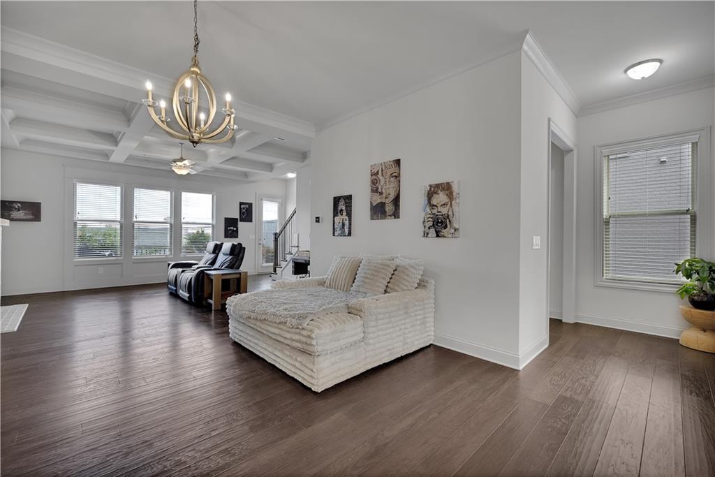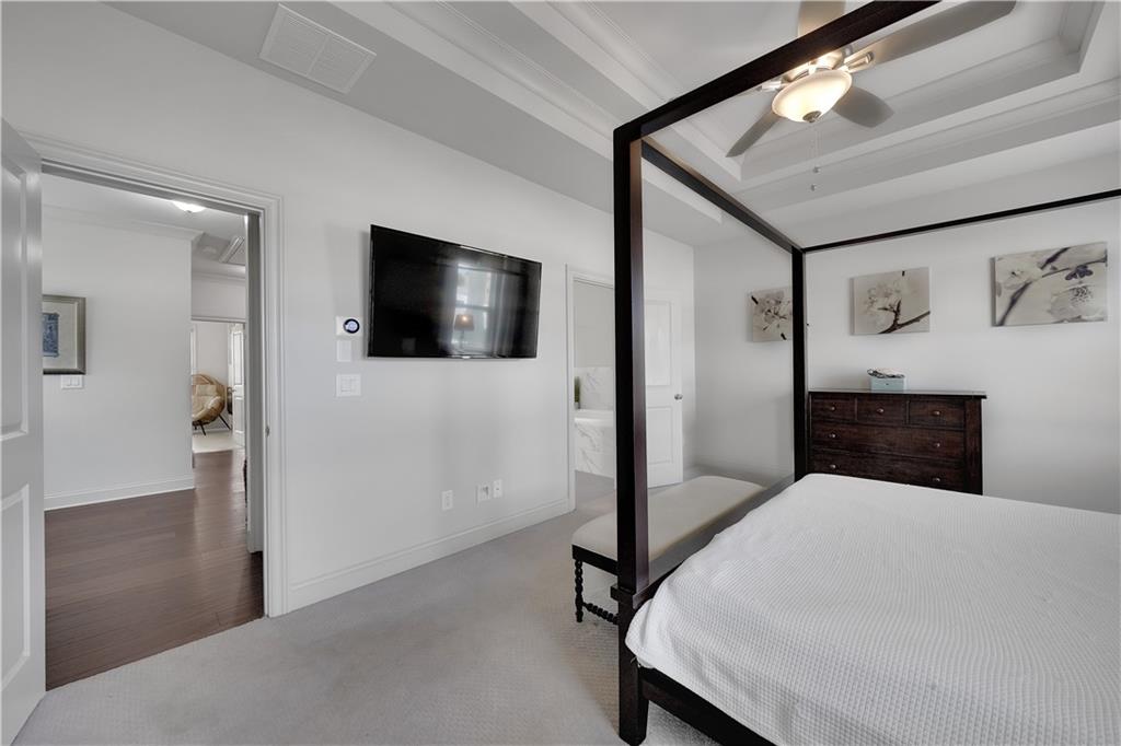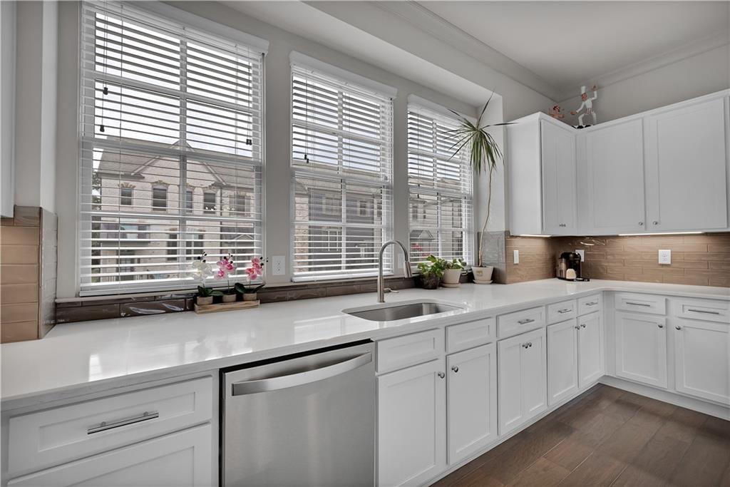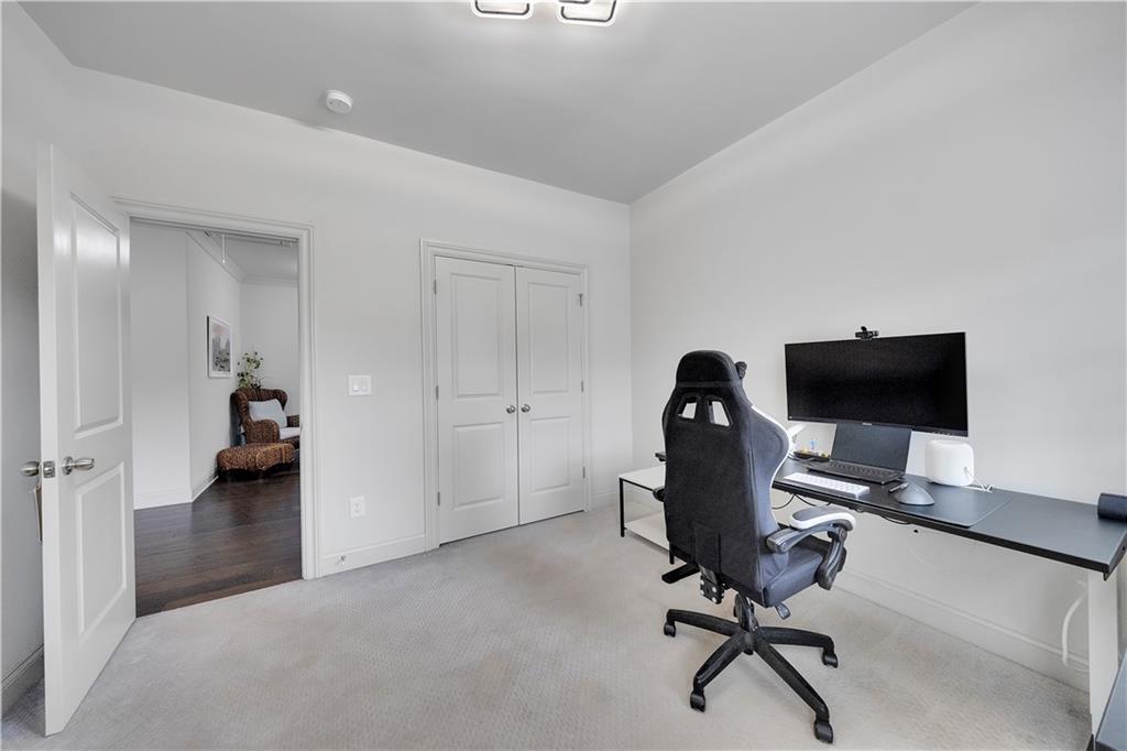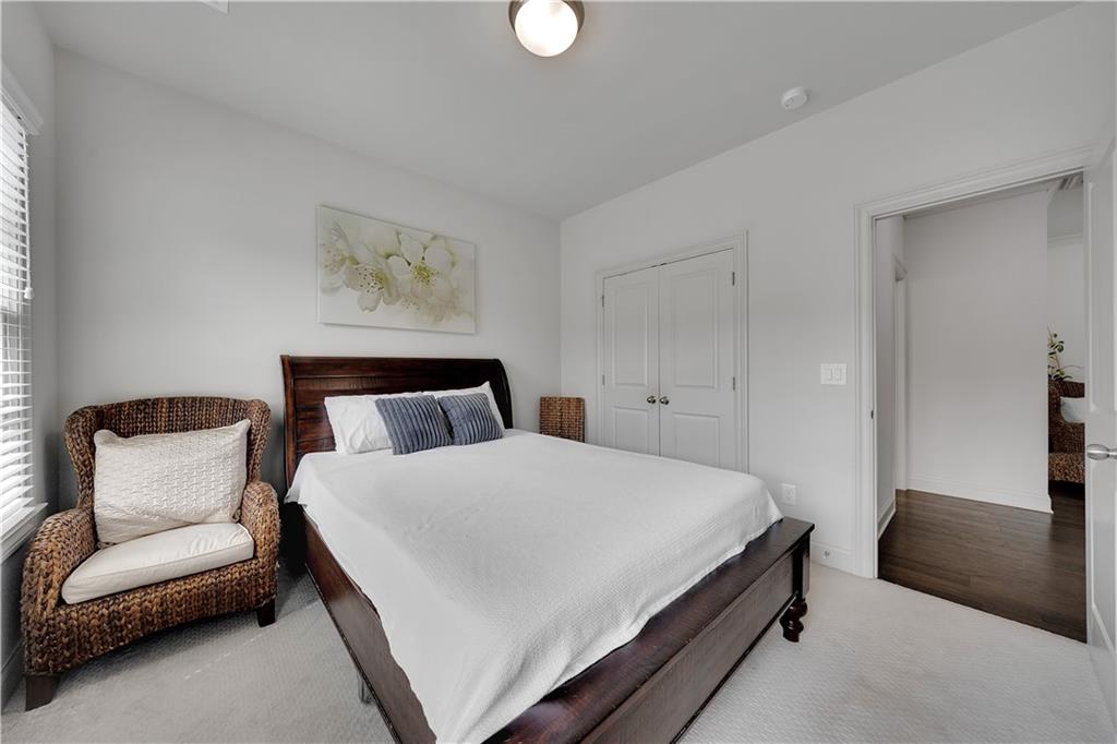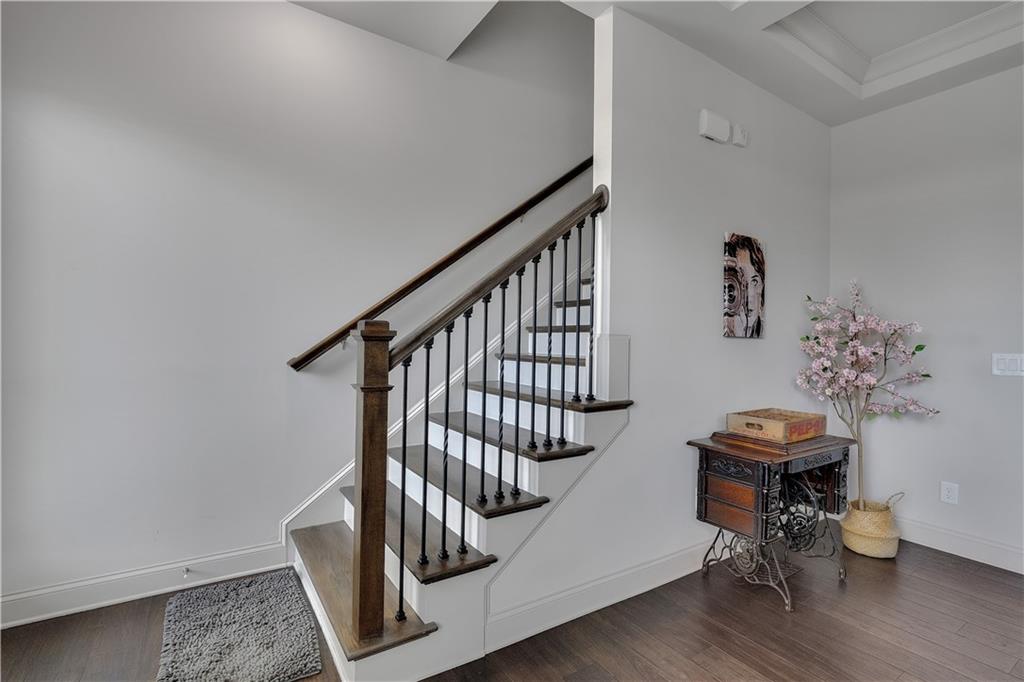 Tucked away in Brookhaven's best-located community, this END UNIT 4BR townhome stitches world-class cuisine on Buford Highway along with contemporary dining in Brookhaven Village. Boasting 10' ceilings, an oversized chef's dream kitchen and copious amounts of natural light, the main level creates the perfect amount of entertaining space for the social butterfly. The coffered ceiling and abundant trim package set this unit apart from most, with touches of grandeur at every turn. Upstairs is the primary suite, with a generously sized walk-in closet and a spa-like bathroom featuring a soaking tub and a 2-person walk-in shower. Dual vanities round out the bathroom. The oversized laundry room, full bathroom and 2 guest bedrooms round out the 3rd level. Additional windows are a huge bonus with being an end unit. The lower level has a 2-car garage as well as a full bathroom and the 4th bedroom, which can act as an at home office for the busy executive. The lower level has a walk-out entrance to the covered patio. Off the living room is an extended deck, perfect for watching planes take off from the Executive Airport down the road! The driveway in front of the home allows for 2 additional parking spots, or 4 total! Plenty of visitor parking in the community makes you the envy of the friend group! The community saltwater pool & clubhouse are next level, not to mention Skyland Park with walking trails, beach volleyball and open space! Town Brookhaven is down the road with Costco, 15+ restaurants and shopping! Brookhaven Village is literally down the road with 20+ restaurants and tons of shopping! This is your next address, book your appointment today!