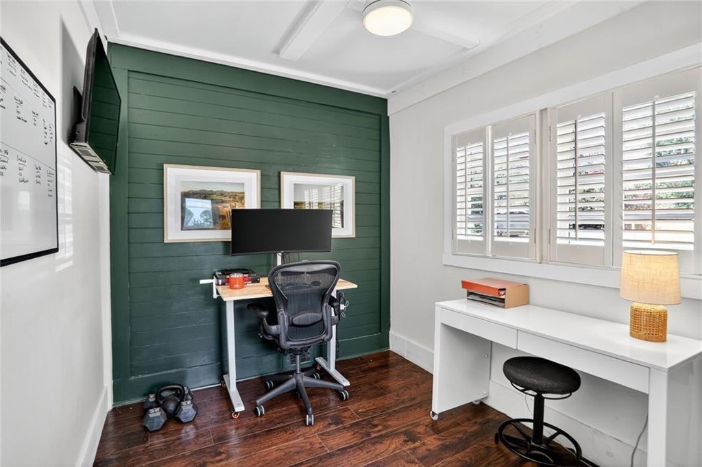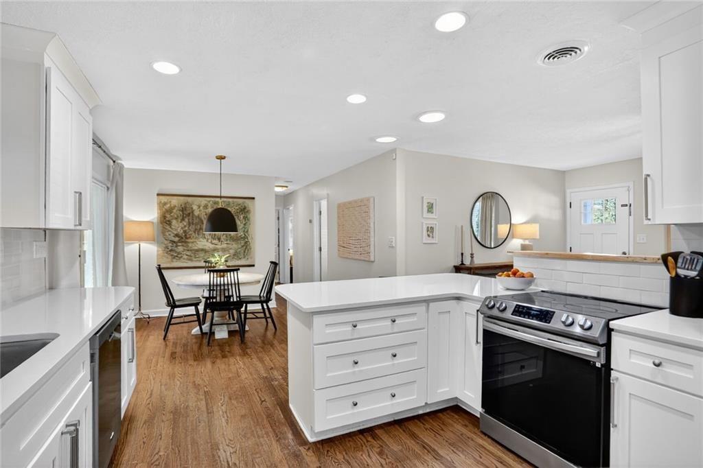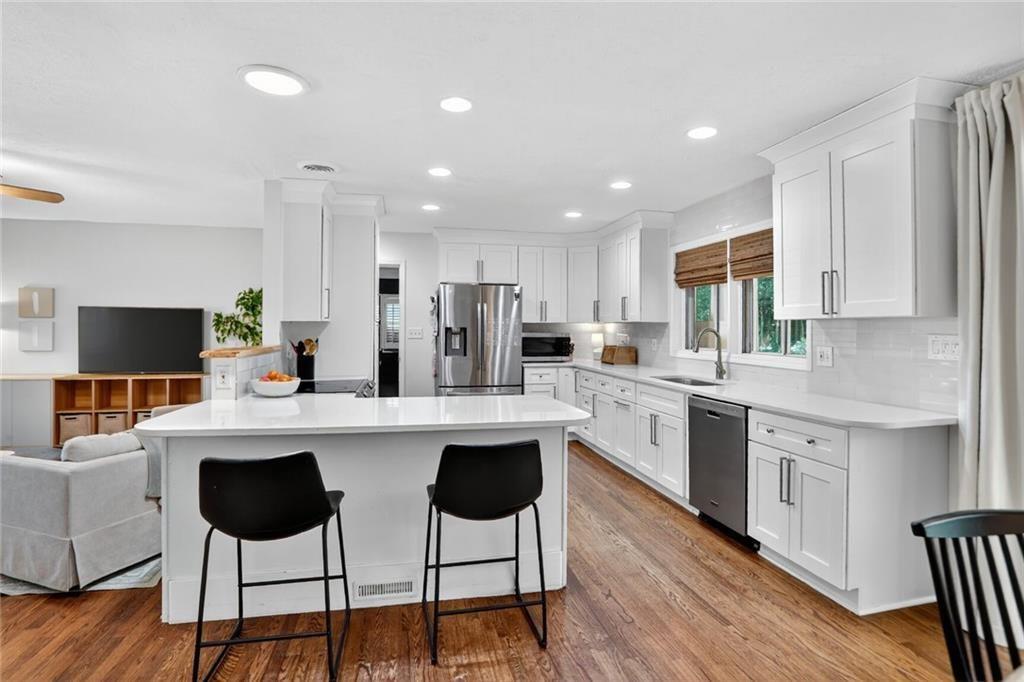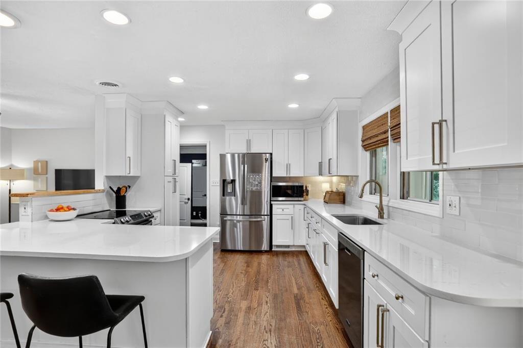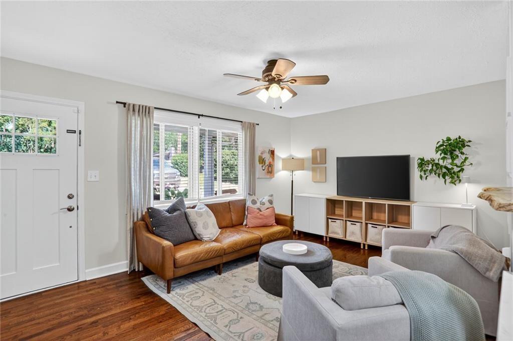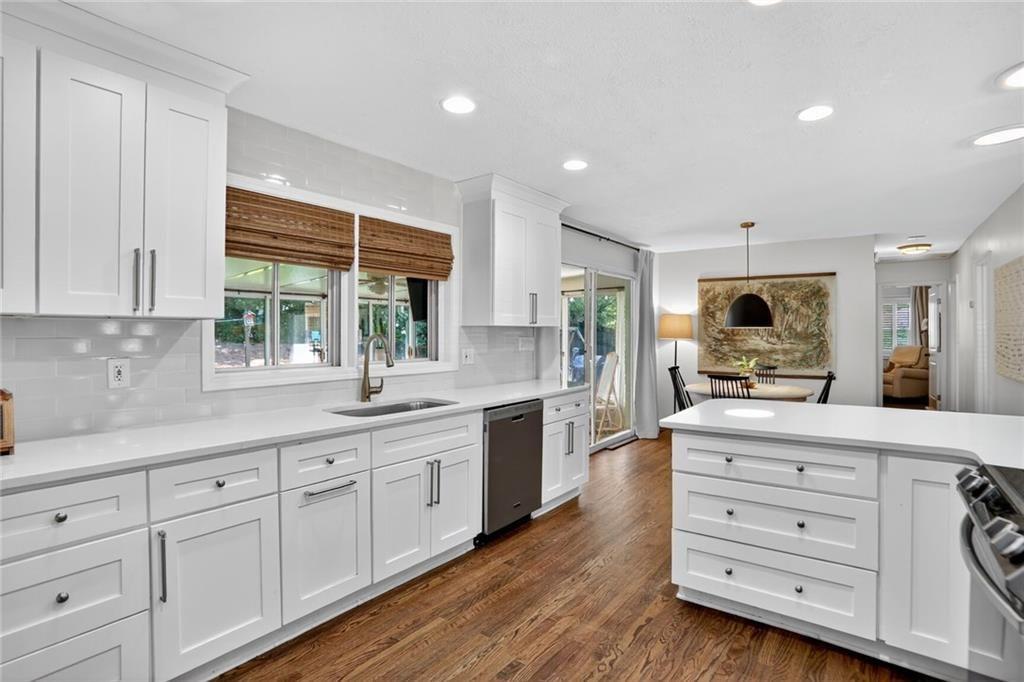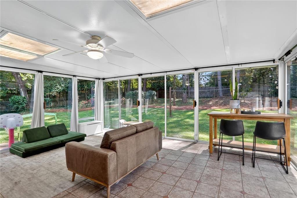 Stunning curb appeal and inviting front porch with beautiful landscaping and a large front yard. Come inside this sunny and renovated ranch home and fall in love. Open concept living areas feature a new kitchen with load of cabinet space, quartz counters, new backsplash, counter height seating, recessed lighting and gorgeous hardwood floors. The dining room is open and provides additional space for entertaining. Walk directly out into the huge sunroom with slider doors and level access to a huge, private yard! The 3 bedrooms are well-sized with one having an updated en suite bath and the other 2 sharing a full, renovated hall bath. Enjoy additional storage, work from home space or flex space in the renovated office and mudroom. New HVAC too. This home is an incredible find in Teasley elem district. Walking distance to Taylor-Brawner Park with food trucks, playgrounds and walking trails! Located perfectly between Smyrna Market Village and Vinings Jubilee. So many restaurants, grocery and shopping hot spots close by + enjoy The Battery and Truist Park just 2 miles away! Easy access into Vinings, Buckhead, 285 & 75.
