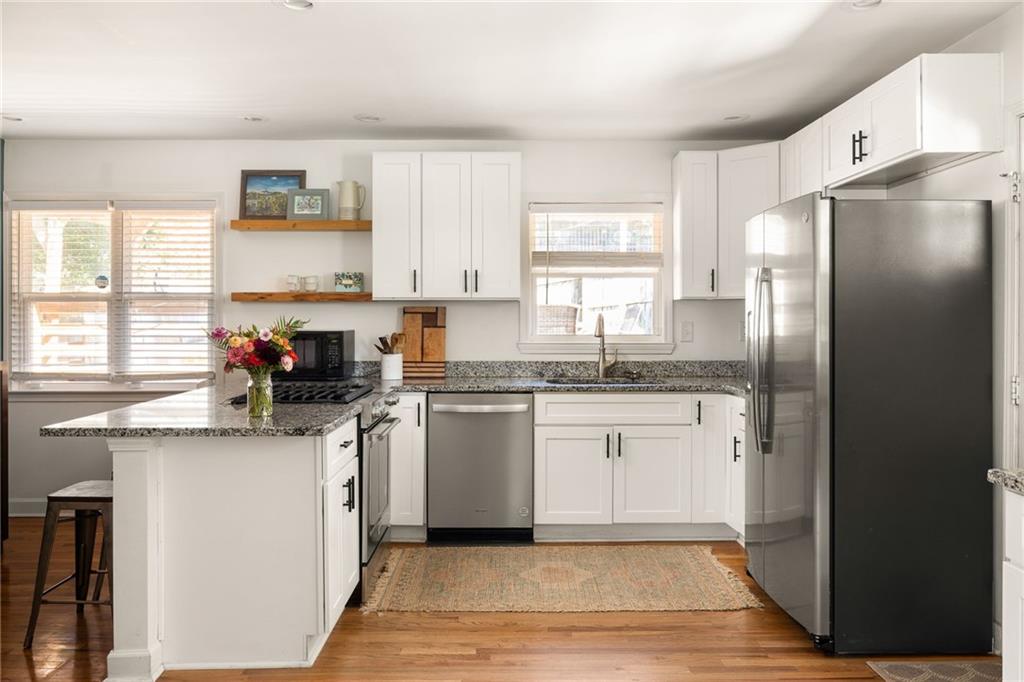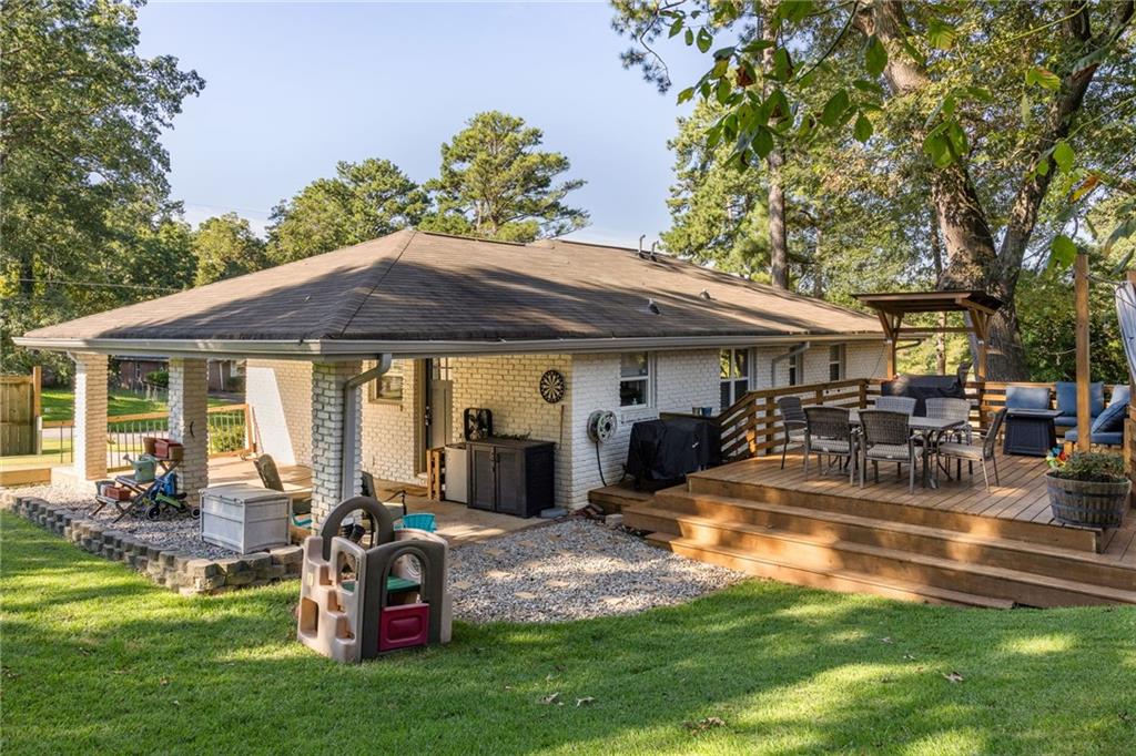 Open Sunday! This sun-kissed Decatur ranch is fully renovated with all the right details and features you’ll appreciate for years to come. And, with a special promotion by a favorite local lender, you don't need to wait to buy because Nancy Grieve with Shelter Mortgage is offering a 1% lower interest rate on your mortgage for the first year! You’ll be roasting marshmallows around the firepit while other buyers are still waiting for the rates to go down. You’ll love the fantastic light and flow in this gracious home that is perfect for entertaining, hosting guests, and enjoying serene moments outside. Main level features 2 bedrooms and 2 full bathrooms. Step downstairs to an amazing guest area complete with sitting area, office nook, and even room for an exercise zone. Downstairs laundry room includes extra shelving. Lower level also includes bonus closets for storage and even a side door entrance, which makes it perfect for AirBnB, guest suite privacy, or just easy access to the side yard patio with hammock. Don’t miss the custom details like the trim work, accent paint, and other thoughtful touches. Home and property lovingly maintained and ready for you to move in and immediately enjoy. Location: Property is located in the Longdale Park neighborhood, just minutes from I-20, Oakhurst, East Atlanta, and East Lake Publix. Yes, this property already has a Homestead Exemption. Close by the end of the year and you can save on taxes, too! Conveniently located within walk and roll distance to Longdale Park.