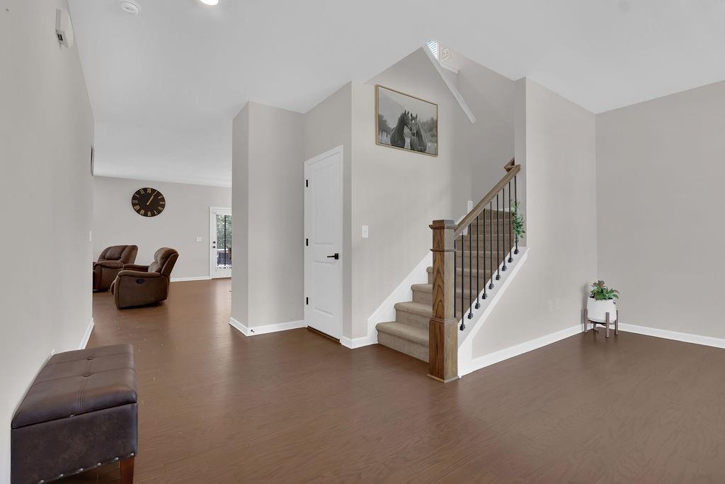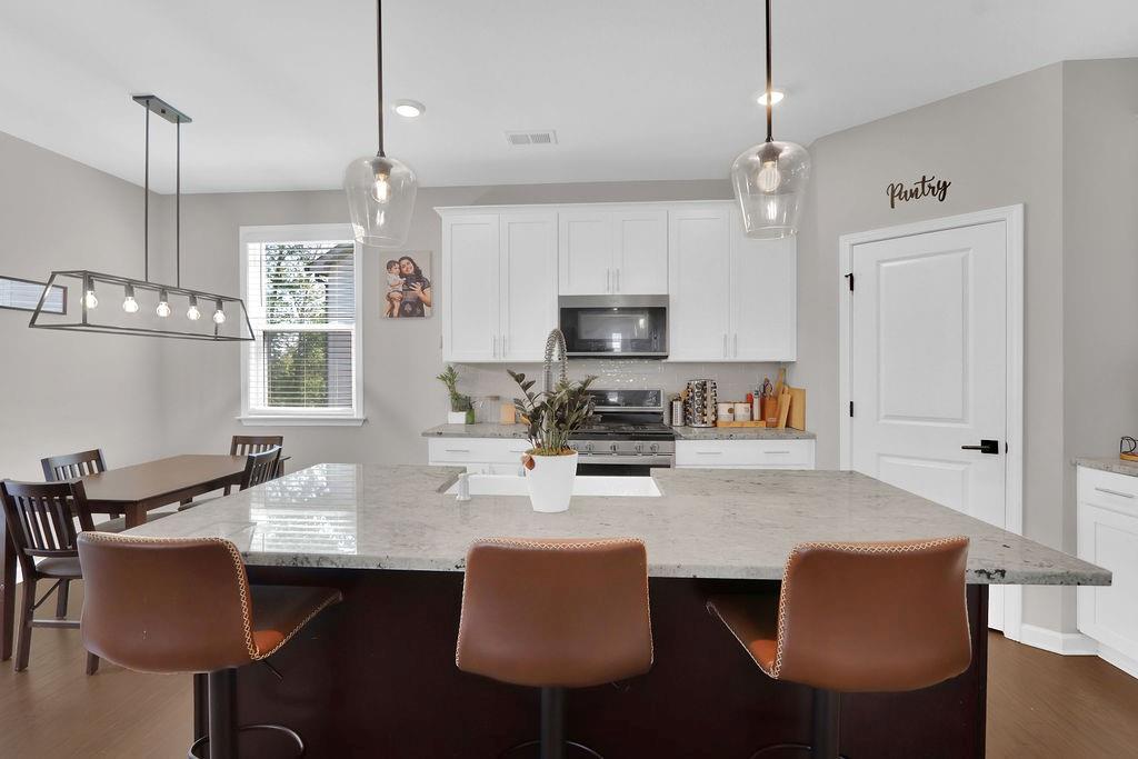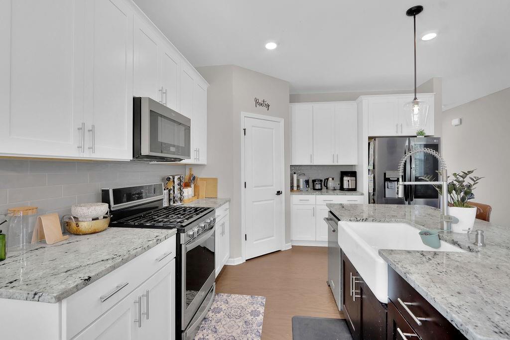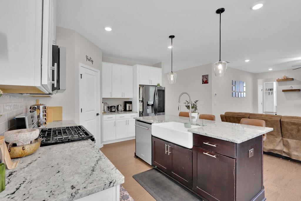 Welcome to this beautifully maintained 4-bedroom, 2.5-bath home, built in 2021 and thoughtfully designed with modern finishes and timeless charm. From the quaint front porch to the spacious backyard, every detail has been crafted for comfort and style. Step inside to an open-concept layout that seamlessly connects the family room to the eat-in kitchen—ideal for entertaining and everyday living. The kitchen features granite countertops, stainless steel appliances, a farmhouse sink, walk-in pantry, and stylish fixtures that add a touch of elegance. Upstairs, retreat to the oversized primary suite complete with a luxurious on-suite bath featuring a double vanity, walk-in shower, and generous walk-in closet. Three additional bedrooms provide flexible space for family, guests, or home office needs. The full basement offers additional living potential, with a partially finished area perfect for a game room, home gym, or media space. A walkout leads to the back patio and fully fenced, flat backyard—ideal for relaxing, entertaining, or letting pets and kids play freely. With modern design, ample space, and thoughtful features throughout, this home is truly move-in ready and waiting for you to make it your own.