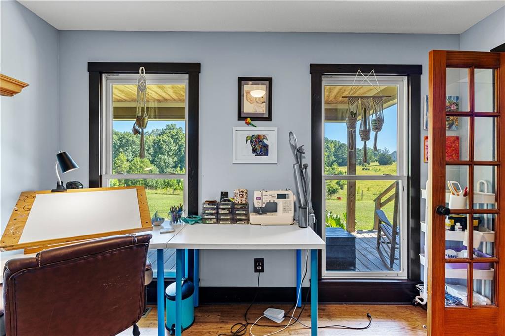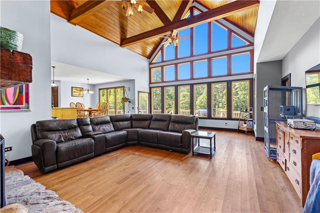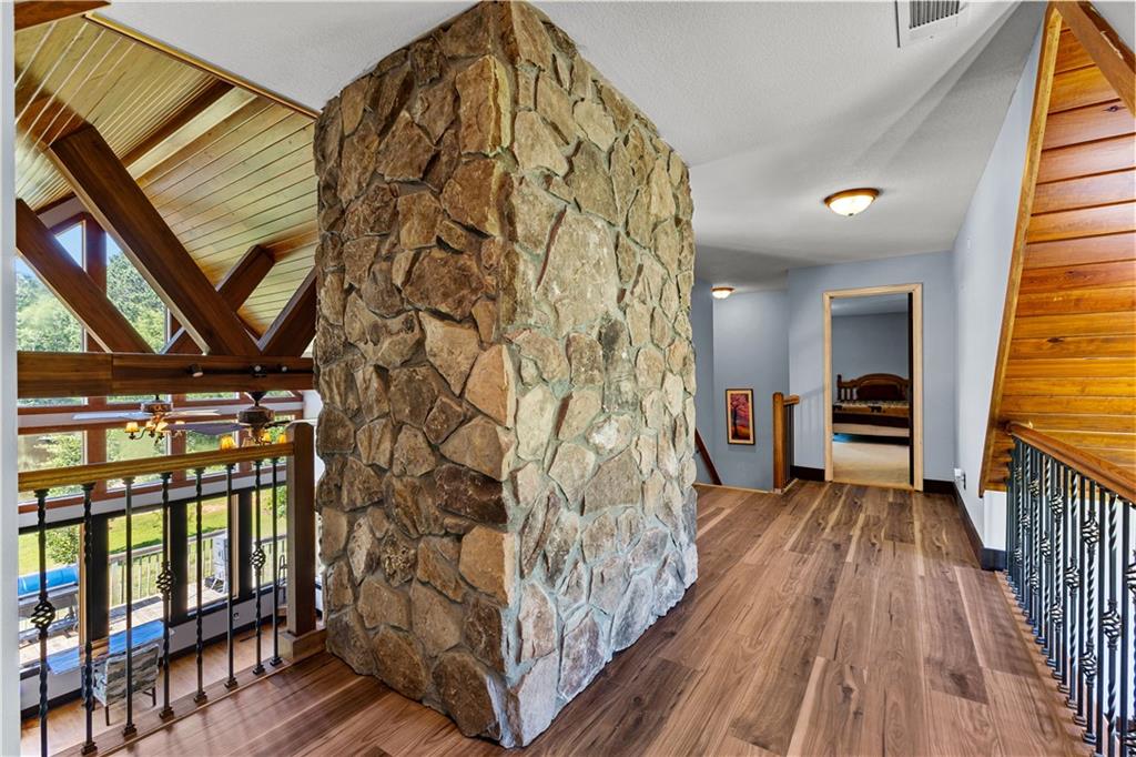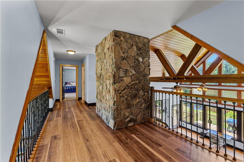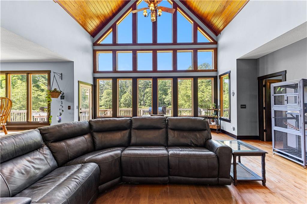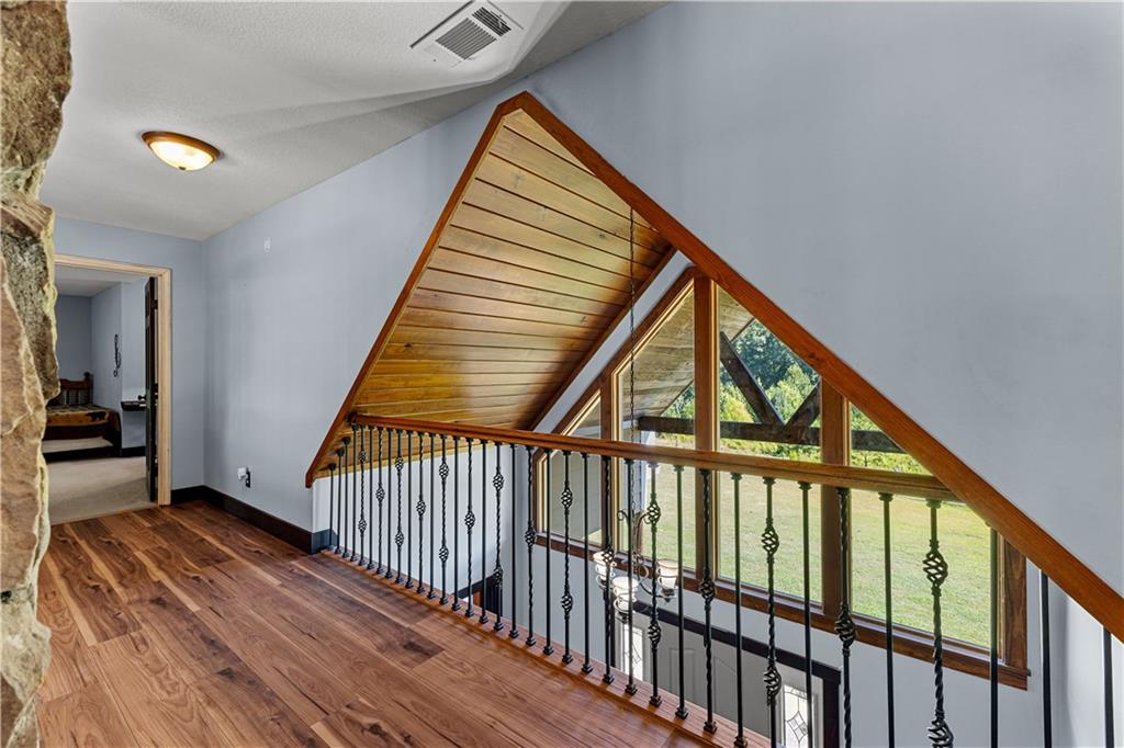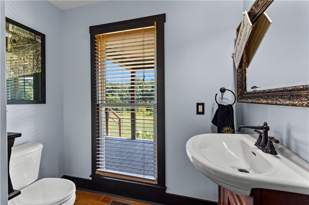 **ASK ABOUT ACCESS TO A LOWER-THAN-AVERAGE INTEREST RATE!!!** Welcome home to your very own piece of countryside in the south! Whether you're interested in the quiet of the country, where every star is visible at night, waking up to a lake view and/or a rooster crowing, cultivating your own mini farm, growing your own peaches, pears, and blueberries, or just having the option to do any of those things, THIS. IS. IT!! And that's just the outside...Inside, you'll find 20-foot tall floor-to-ceiling windows with an open view to the lake, master bedroom on main, and a beautifully handcrafted fireplace & chimney which stretches throughout all three stories, from the basement floor to the 2nd floor ceiling. Don't miss the authentic arrowheads perfectly grouted into the structure on every level, nor the option for a potbelly stove or something like it in the basemen!. Spanning the entire width of the house are both a wrap-around porch with plenty of space for allllll the rocking chairs, as well as a deck with a view on the back side of the home. With multiple chicken coops (which can stay or go), 6+ acres of fenced pasture, a 28-tree peach & pear orchard, nearly 2 acres of wild blackberries, pole barn, and a couple other useful structures, this property is literally bursting with potential in so many directions! Oh! Speaking of so many directions...there's a natural underground spring running through the property, and guess what that means? It's totally possible to dig your very own lake or to have a beautiful stream running across the property! Schedule a private tour today; this home is truly a gem!