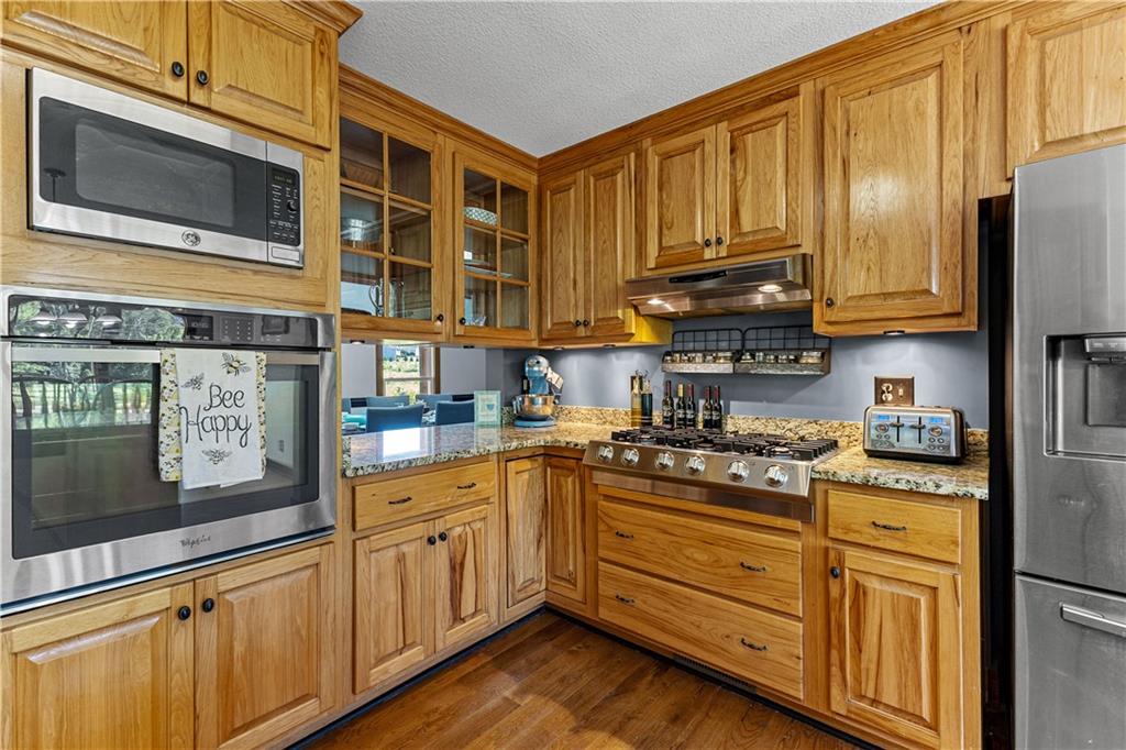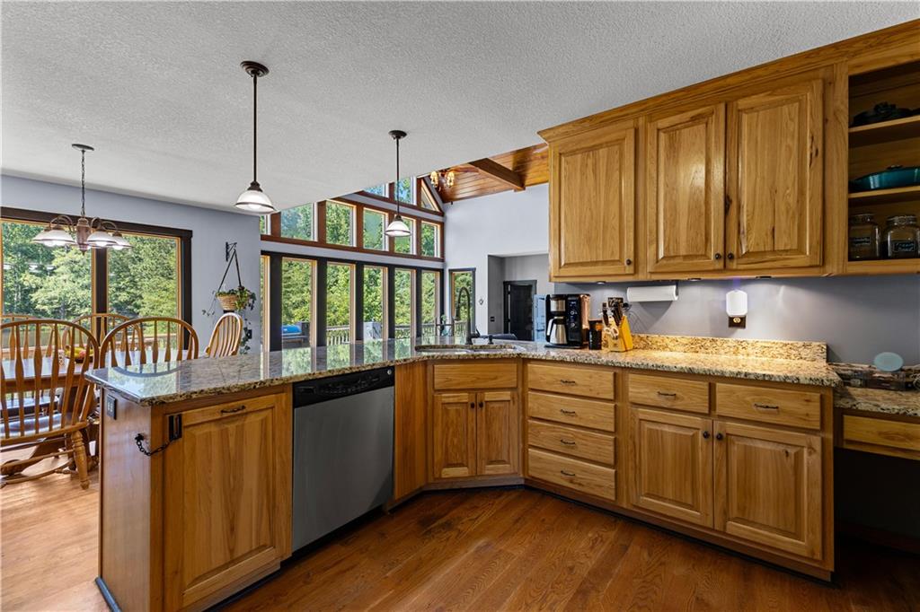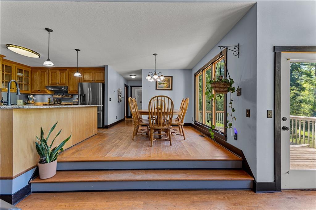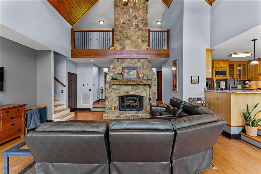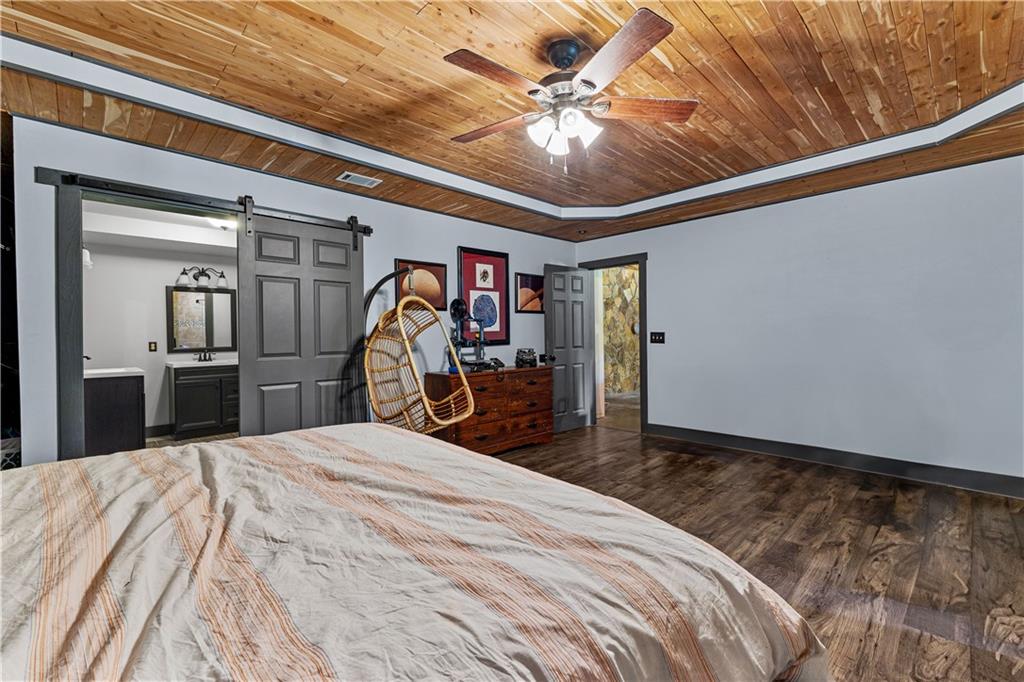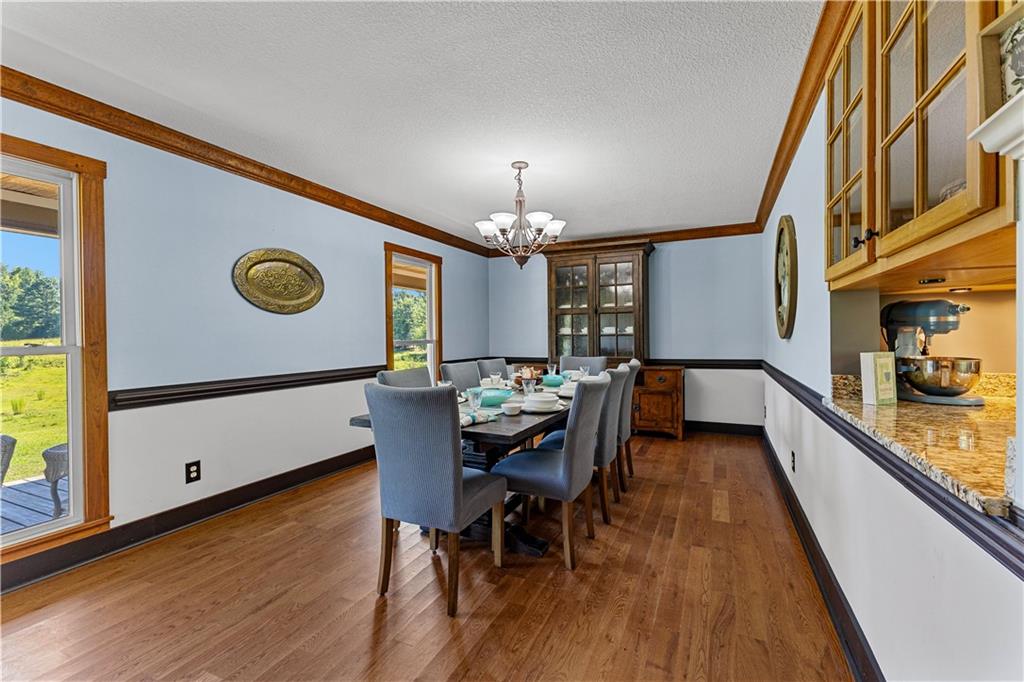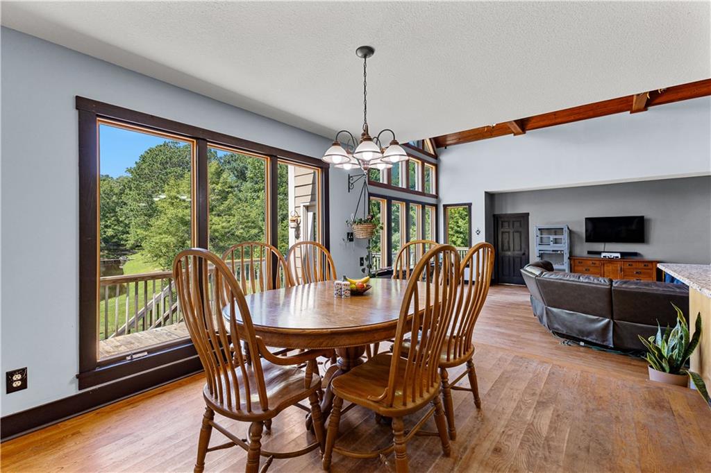 **ASK ABOUT ACCESS TO A LOWER-THAN-AVERAGE INTEREST RATE!!!** Welcome home to your very own piece of countryside in the south! Whether you're interested in the quiet of the country, where every star is visible at night, waking up to a lake view and/or a rooster crowing, cultivating your own mini farm, growing your own peaches, pears, and blueberries, or just having the option to do any of those things, THIS. IS. IT!! And that's just the outside...Inside, you'll find 20-foot tall floor-to-ceiling windows with an open view to the lake, master bedroom on main, and a beautifully handcrafted fireplace & chimney which stretches throughout all three stories, from the basement floor to the 2nd floor ceiling. Don't miss the authentic arrowheads perfectly grouted into the structure on every level, nor the option for a potbelly stove or something like it in the basemen!. Spanning the entire width of the house are both a wrap-around porch with plenty of space for allllll the rocking chairs, as well as a deck with a view on the back side of the home. With multiple chicken coops (which can stay or go), 6+ acres of fenced pasture, a 28-tree peach & pear orchard, nearly 2 acres of wild blackberries, pole barn, and a couple other useful structures, this property is literally bursting with potential in so many directions! Oh! Speaking of so many directions...there's a natural underground spring running through the property, and guess what that means? It's totally possible to dig your very own lake or to have a beautiful stream running across the property! Schedule a private tour today; this home is truly a gem!