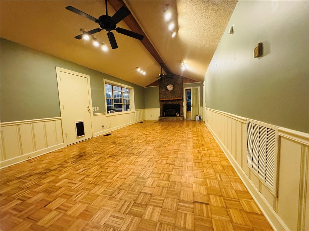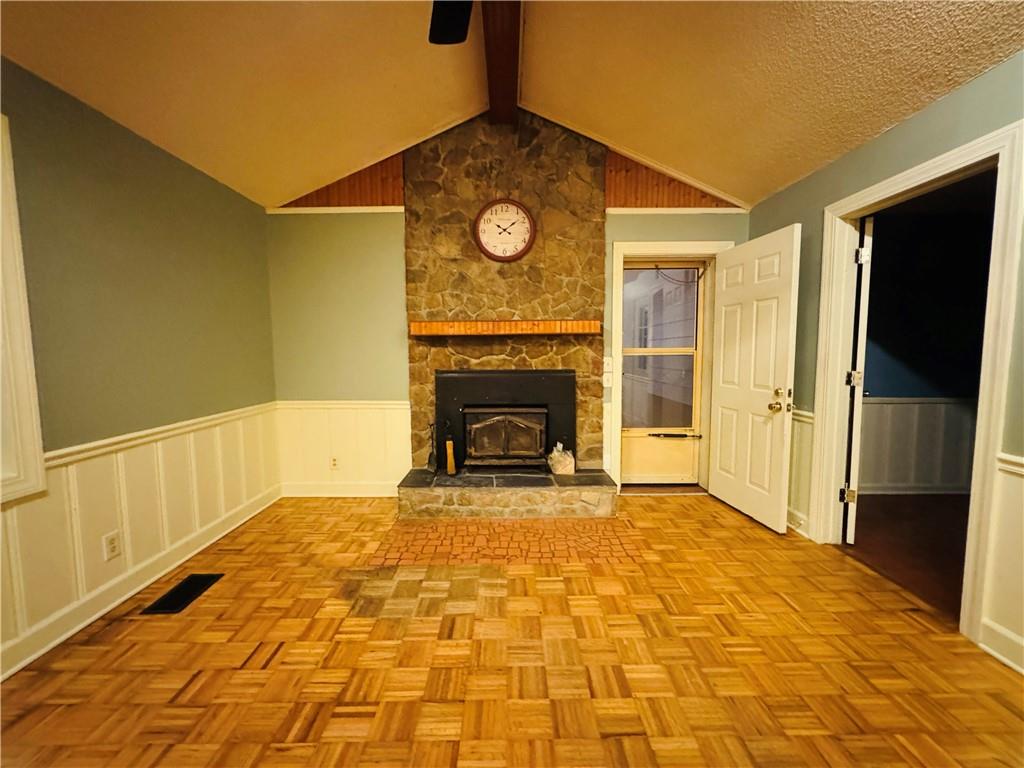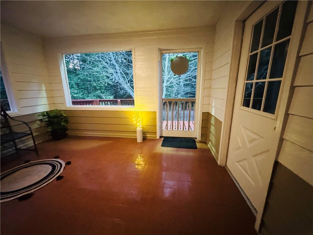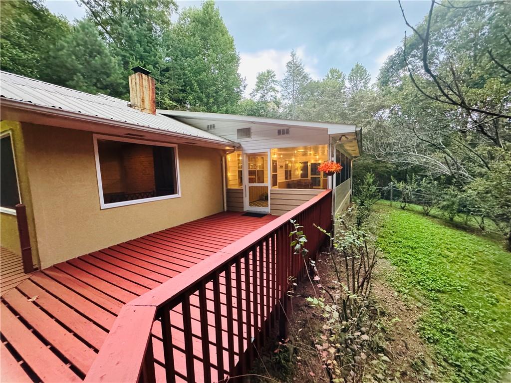 3 large bedrooms, each with an ensuite, on 2.5 serene acres. The home welcomes you with a spacious deck and an extra-large screened-in porch-ideal for relaxing mornings, entertaining friends, or simply soaking in the peaceful views. Step inside to an open-concept living, kitchen, and dining area, featuring a vaulted ceiling and a cozy wood-burning fireplace at the heart of the great room. A utility/laundry room connects to a second smaller screened porch/mudroom area, offering both function and charm. Tucked away just 12 miles from town, this wooded retreat offers the perfect blend of privacy and convenience, this property delivers the peace and seclusion of the woods without sacrificing proximity to town.