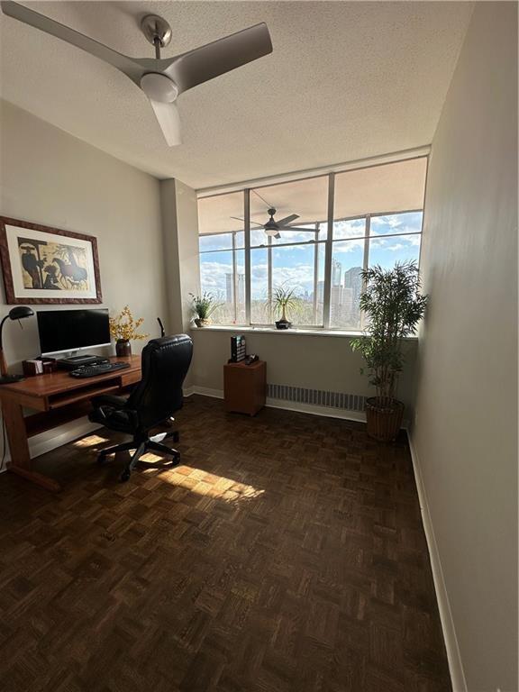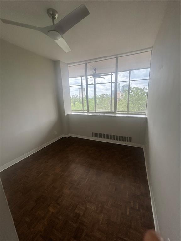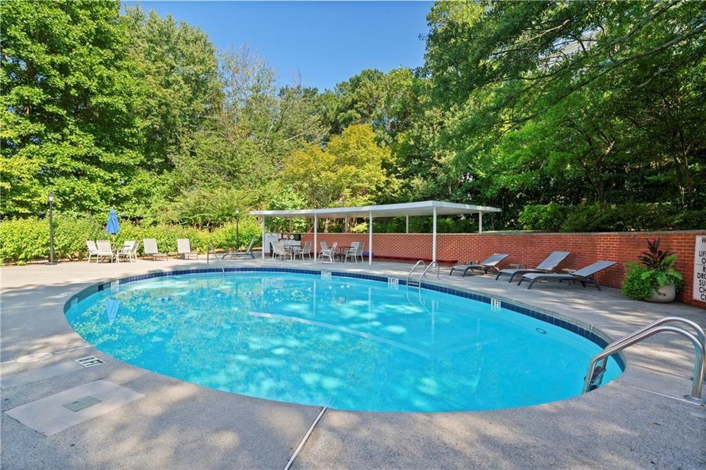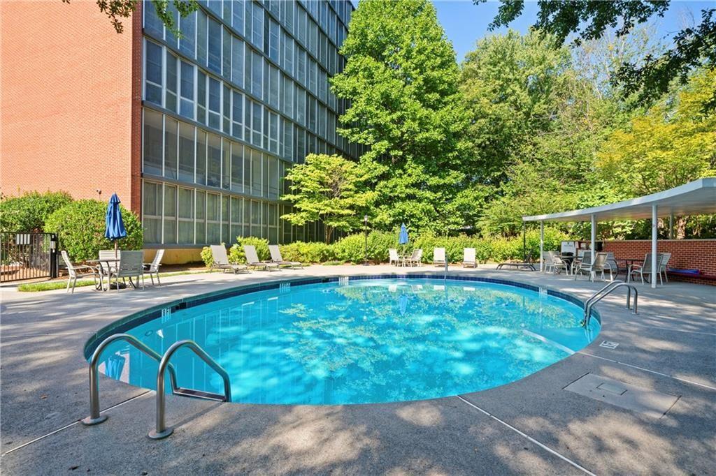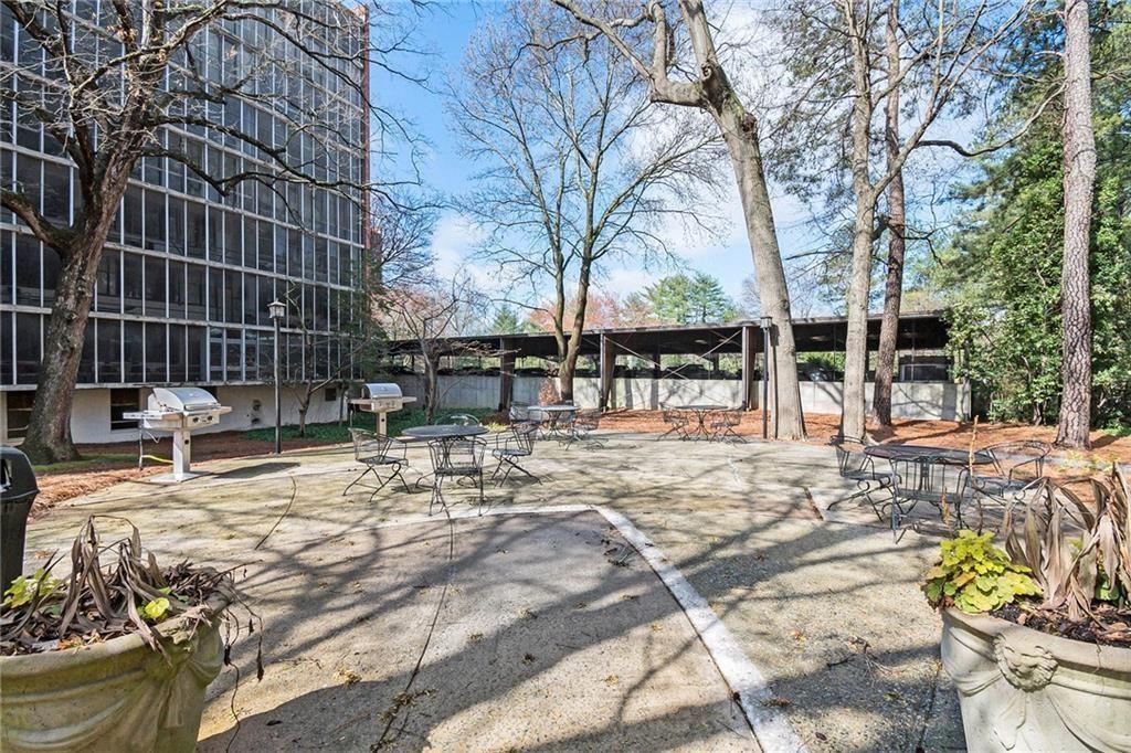 MID-CENTURY modern Buckhead Condo with amazing views from every room of Skyline! PRICED TO SELL!! Walk to all Buckhead has to offer at this amazing price! Two Bedroom with One Bath Open Floor Plan features Hardwood Floors throughout, neutral paint and windows provide great natural light. The two exterior doors to the screened patio have been replaced with glass doors for an enhanced view and patio runs full length of unit. The HOA fee covers all utilities except Cable and Internet, unit has a deeded storage space (largest available) across the hall. The Community offers Laundry facilities with new machines, gym, library/common room, pool, gazebo and grill area. This is a prime location yet tucked quietly away from Peachtree in a secure access building. Use a Parking Form provided inside the first entry and put on dash available so you won't be booted. Building provides an onsite maintenance team. A special secure pedestrian access to Saint Regis Drive, Whole Foods and all the dining and night life Buckhead has to offer. This is the most affordable housing for Buckhead living so don't miss out on seeing this unit!