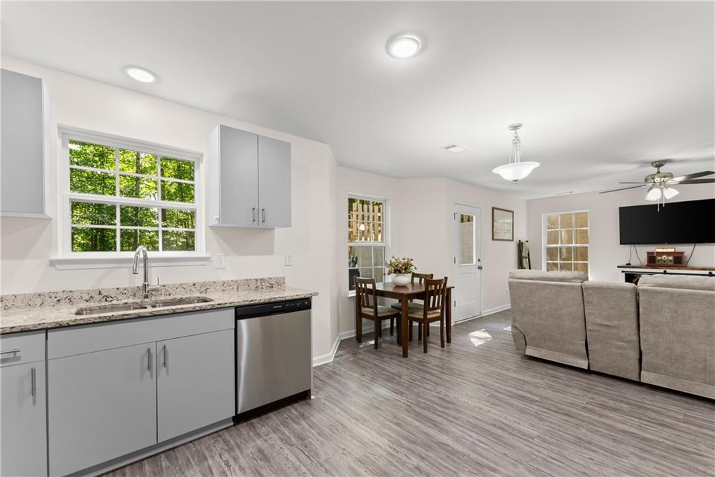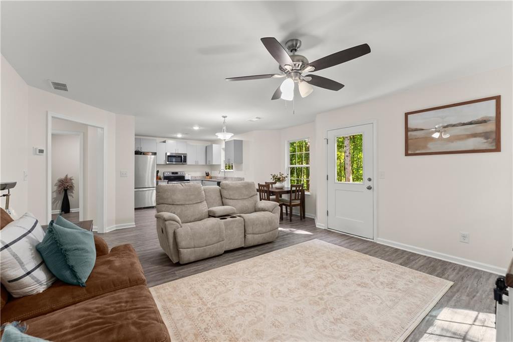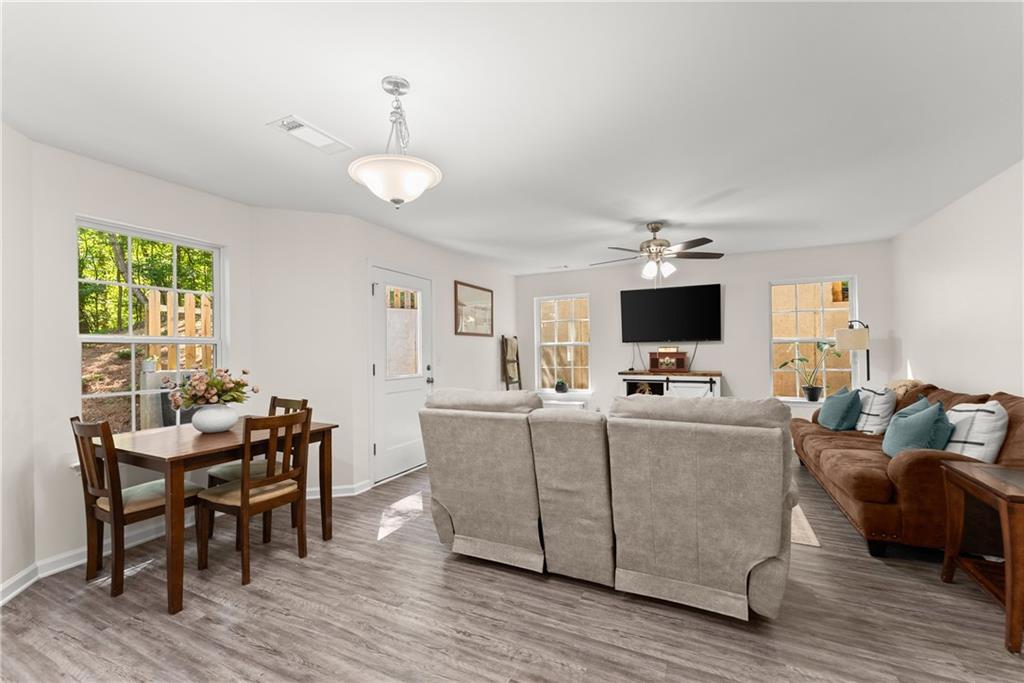 Nestled on over 2.5 acres with no HOA, this meticulously maintained residence feels just like new. Pulling you in, the light-filled living spaces flow across easy-care LVP flooring, while vaulted ceilings lift your everyday routines into something extraordinary. The primary suite isn’t just spacious—it’s fit for a king AND queen—complete with two generous walk-in closets and a bright, refreshed bathroom. For nature lovers and lake enthusiasts, being under five minutes from Laurel Park means effortless access to Lake Lanier via a mega boat ramp, plus walking trails, a dog park, tennis courts, playgrounds, splash pad, volleyball, pavilions, and more—making adventures effortless. Privacy abounds, whether you're relaxing on the concrete back patio, tucked under the covered porch, or enjoying peace of mind thanks to the seller-installed drainage system and detailed maintenance schedule. With fresh paint on the main level and a two-car garage ready for your cars—or lake toys—this home is polished, practical, and perfectly poised to host everything from quiet evenings to grand holidays. Plus, with the highly regarded North Hall schools nearby, it blends tranquility and convenience in equal measure.