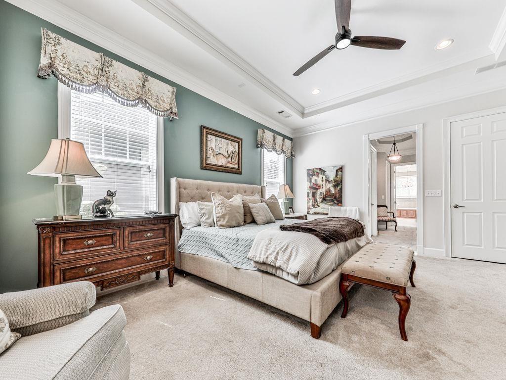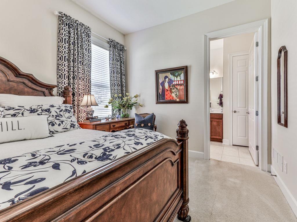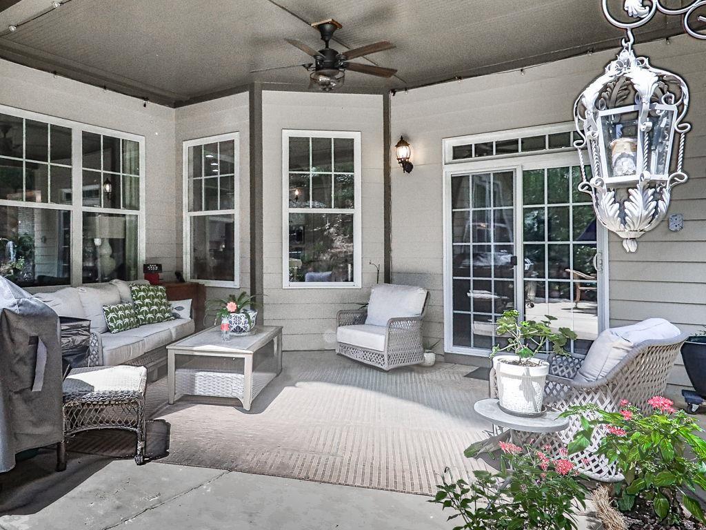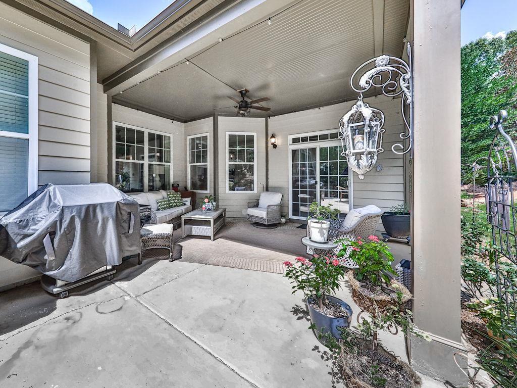 Stunning home in amenity rich Soleil Laurel Canyon! Situated on a quiet cul-de-sac, this brick front home welcomes you in with extended front porch with double, oversized leaded doors. Upon entry, you will notice mill work throughout, giving home an elegant touch. Separate dining room and office with French doors, both have windows letting in extra light. Formal seating area gives way to keeping room with jumbo ceramic tile surround fireplace with wood mantle. Numerous windows allow more light and viewing into private backyard. Kitchen has that wow factor! Newly remodeled, with luxurious veining hard marble! Walk in pantry and copious amounts of cabinets, including built in coffee nook and roll out shelving. Master retreat is serene and comfortable with extra sitting area. His and her closets just off the extended hallway to ensuite. Gorgeous chandelier adorns the area over jetted tub! Dual vanities with cut out seating area. Shower comes with grab bar, bench, and cut out for shower essentials. Second bedroom has attached full bath with shower and two closets for extra storage. Third bedroom is bright and cozy with full bath across hall and has shower/bath combo. Extra roomy laundry room has extra shelving and cabinets. Garage has coveted overhead storage. Not only do you have massive front porch to relax on, but also, covered, open patio with extended patio perfect for entertaining or gardening. This home is a 10 out of 10! Soleil Laurel Canyon is the premier 55+ community with so much to offer from cooking clubs, crafts- including 2 kilns, billiards, indoor and outdoor swimming pools plus indoor sauna, full workout facility, gardening club with greenhouse and your very own plot to garden, tennis, pickleball, and so much more!