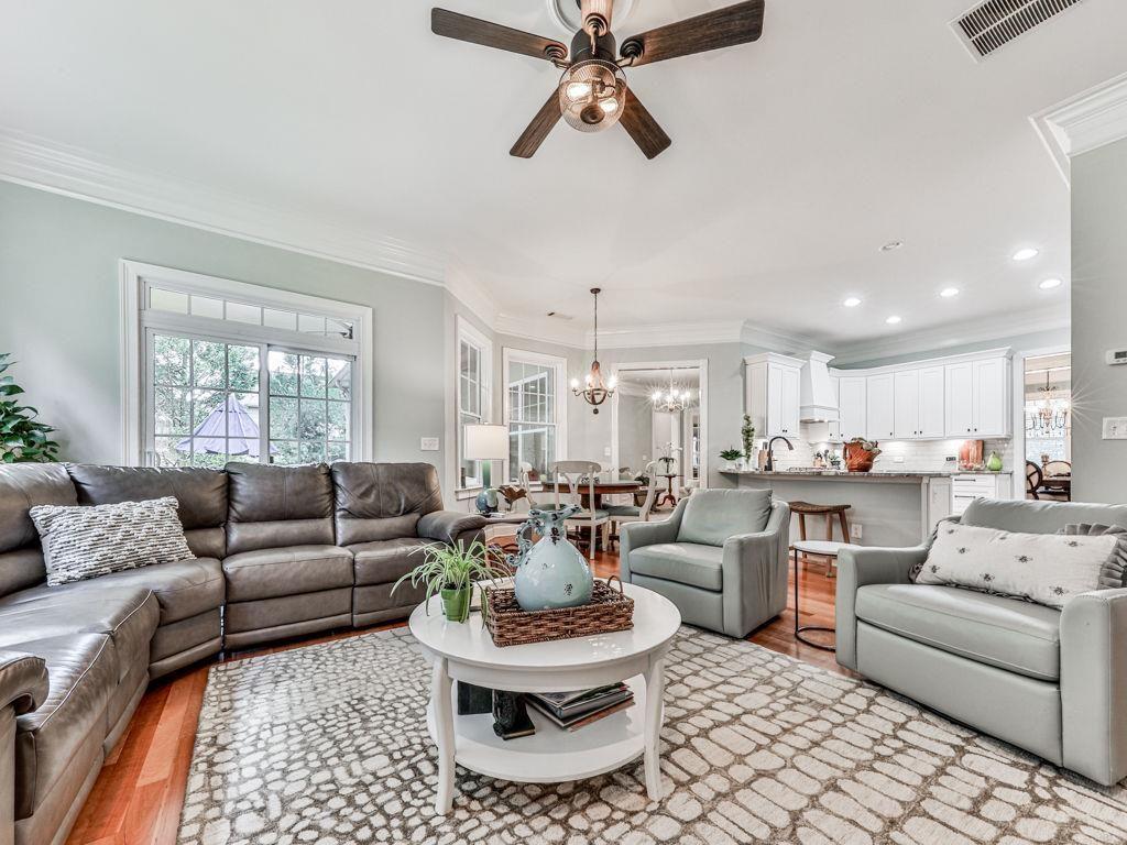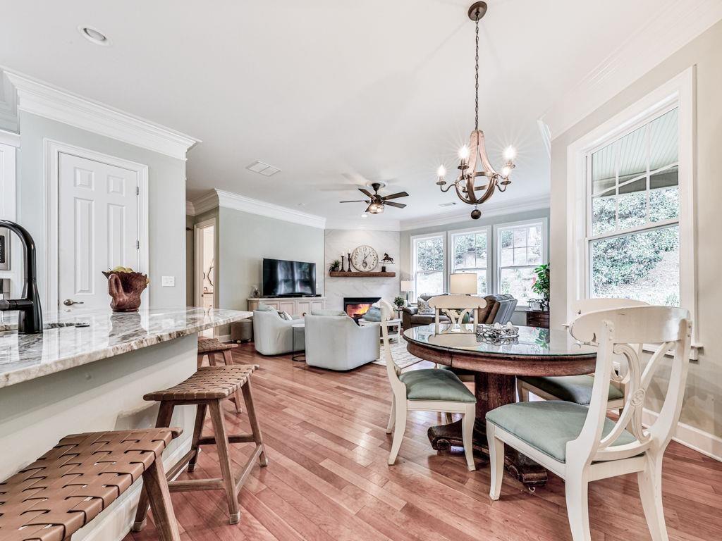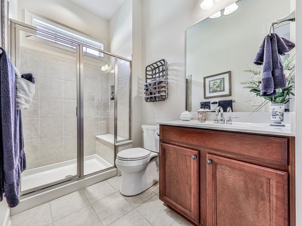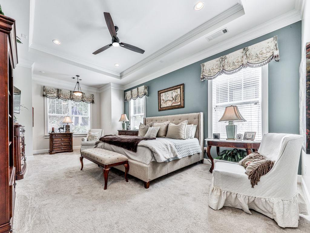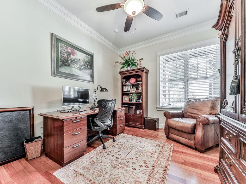 Stunning home in amenity rich Soleil Laurel Canyon! Situated on a quiet cul-de-sac, this brick front home welcomes you in with extended front porch with double, oversized leaded doors. Upon entry, you will notice mill work throughout, giving home an elegant touch. Separate dining room and office with French doors, both have windows letting in extra light. Formal seating area gives way to keeping room with jumbo ceramic tile surround fireplace with wood mantle. Numerous windows allow more light and viewing into private backyard. Kitchen has that wow factor! Newly remodeled, with luxurious veining hard marble! Walk in pantry and copious amounts of cabinets, including built in coffee nook and roll out shelving. Master retreat is serene and comfortable with extra sitting area. His and her closets just off the extended hallway to ensuite. Gorgeous chandelier adorns the area over jetted tub! Dual vanities with cut out seating area. Shower comes with grab bar, bench, and cut out for shower essentials. Second bedroom has attached full bath with shower and two closets for extra storage. Third bedroom is bright and cozy with full bath across hall and has shower/bath combo. Extra roomy laundry room has extra shelving and cabinets. Garage has coveted overhead storage. Not only do you have massive front porch to relax on, but also, covered, open patio with extended patio perfect for entertaining or gardening. This home is a 10 out of 10! Soleil Laurel Canyon is the premier 55+ community with so much to offer from cooking clubs, crafts- including 2 kilns, billiards, indoor and outdoor swimming pools plus indoor sauna, full workout facility, gardening club with greenhouse and your very own plot to garden, tennis, pickleball, and so much more!