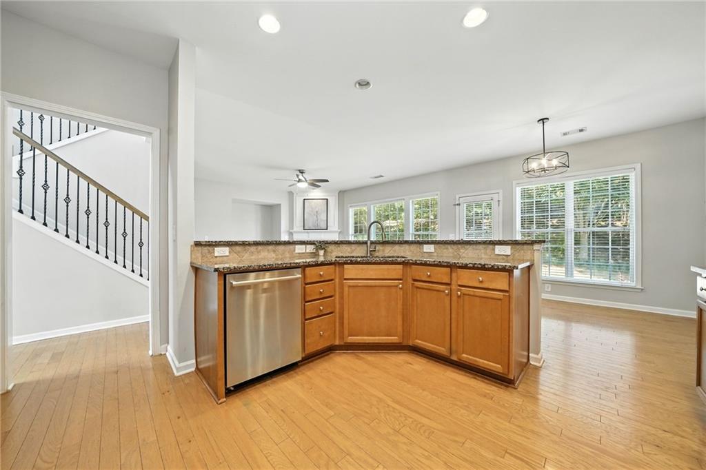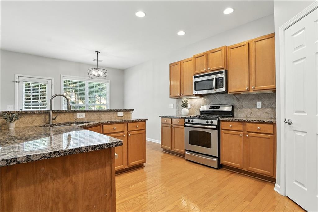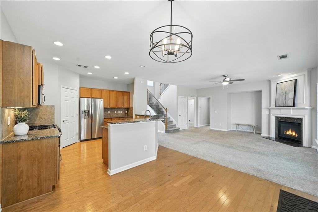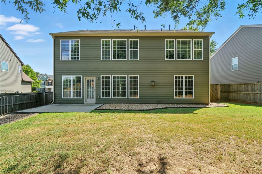 Welcome to this beautiful home in the highly sought-after Harmony on the Lakes community! This hard-to-find 5-bedroom home under $500,000 offers a fantastic floor plan with a bedroom and full bath on the main level. The main level also features a formal dining room, an eat-in kitchen with granite countertops, stained wood cabinetry, stainless steel appliances, and updated light fixtures throughout. Upstairs, one of the spacious secondary bedrooms is large enough to serve as a bonus room or recreation room, while the primary suite features a roomy bath and ample closet space. The exterior offers a level driveway, a flat backyard with a patio perfect for grilling and entertaining, and mature landscaping. Enjoy resort-style living with Harmony on the Lakes’ outstanding amenities: a lake with a fishing dock, swim team, tennis, pickleball, playgrounds, walking trails, and a full exercise facility. Conveniently located near schools, parks, and shopping, this home is priced to sell and won’t last long!
