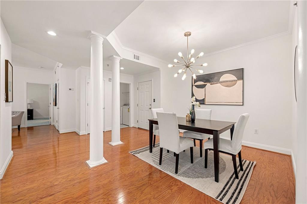 Welcome to your city retreat at The Manor House Unit 2109, a move-in ready condo designed for modern urban living. This freshly updated home offers two spacious bedrooms with large walk-in closets and two sleek bathrooms featuring a double vanity, walk-in shower, and a Japanese-style soaking tub perfect for relaxing after a long day. The open living area includes hardwood floors, nine-foot ceilings, abundant natural light, and a stainless-steel and granite kitchen that overlooks the living space, making it ideal for entertaining or unwinding. Added conveniences include a private laundry room with washer and dryer, brand-new carpet in the bedrooms, two deeded parking spaces (#51 & #156) in a secure garage, a 24-hour concierge for peace of mind, and even a dog walk for your furry friend. Located on a tree-lined street that feels like a neighborhood but sits just minutes from the Beltline, Bobby Jones Golf Course, shopping, and dining, this condo blends comfort, style, and city convenience between Buckhead and Midtown. Don’t miss your chance to experience true urban elegance—schedule your tour today to see this beautifully renovated and staged home!