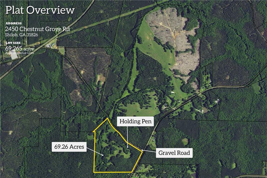 Situated in the heart of Shiloh, Talbot County, this 69.27-acre cattle farm presents a unique combination of agricultural potential, hunting retreat, and historic charm. Conveniently located just 3 miles from Manchester and 8 miles north of Talbotton along Hwy 85, the property offers peaceful country living with quick access to nearby towns and amenities. The landscape showcases rolling pastures, mature timber, and two flowing creeks—Mossy Branch and Lazer Creek—adding both beauty and function. Enhancements include fenced pastures and a holding pen for cattle, making the property ideal for livestock operations, farming, or establishing a premier deer camp. It also offers subdivision potential and multiple income opportunities from timber, agriculture, or hunting leases. With its proximity to Pine Mountain, Callaway Gardens, and Roosevelt’s Little White House, this estate combines investment value with an exceptional rural lifestyle in a safe and welcoming community.
