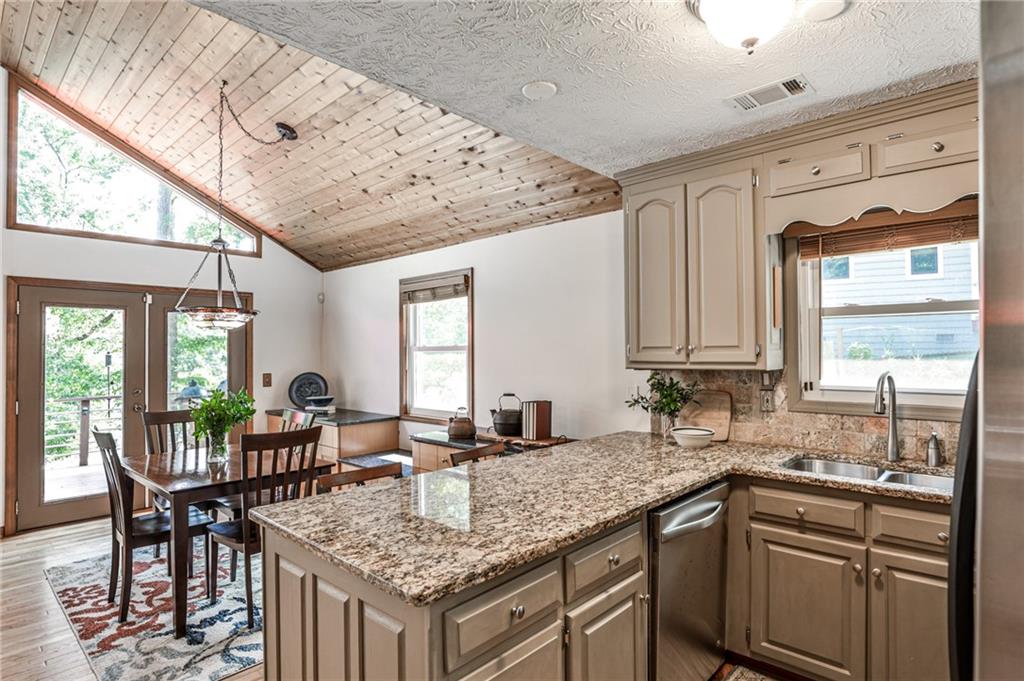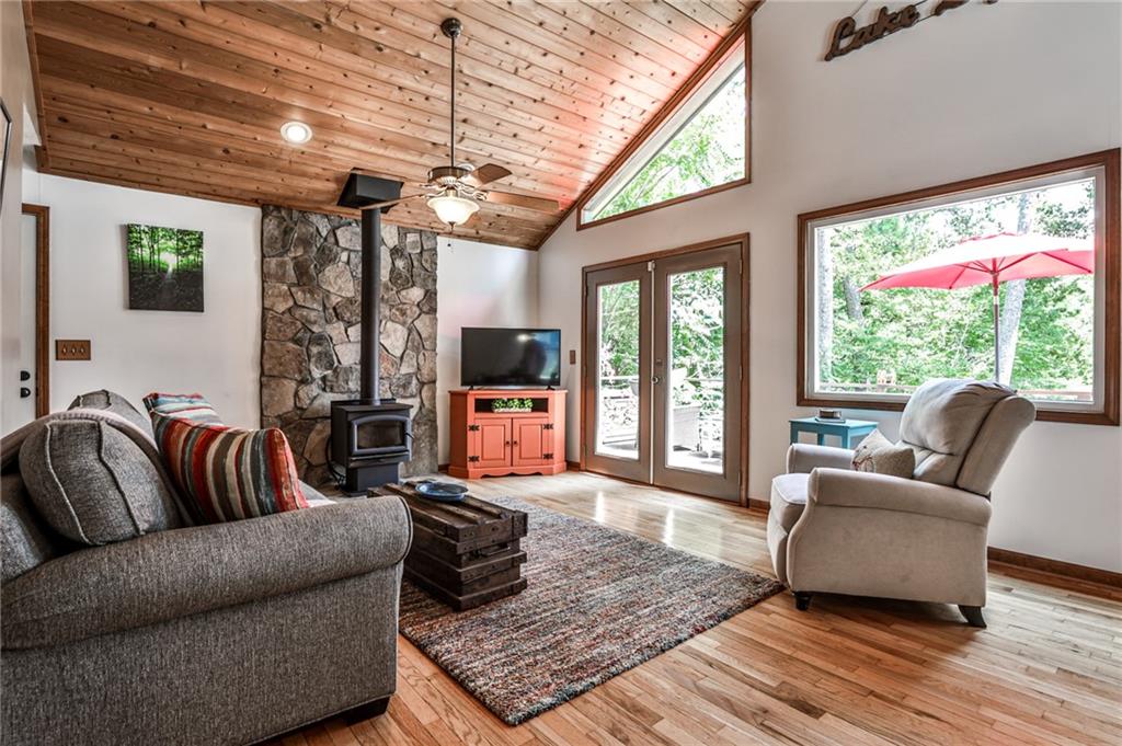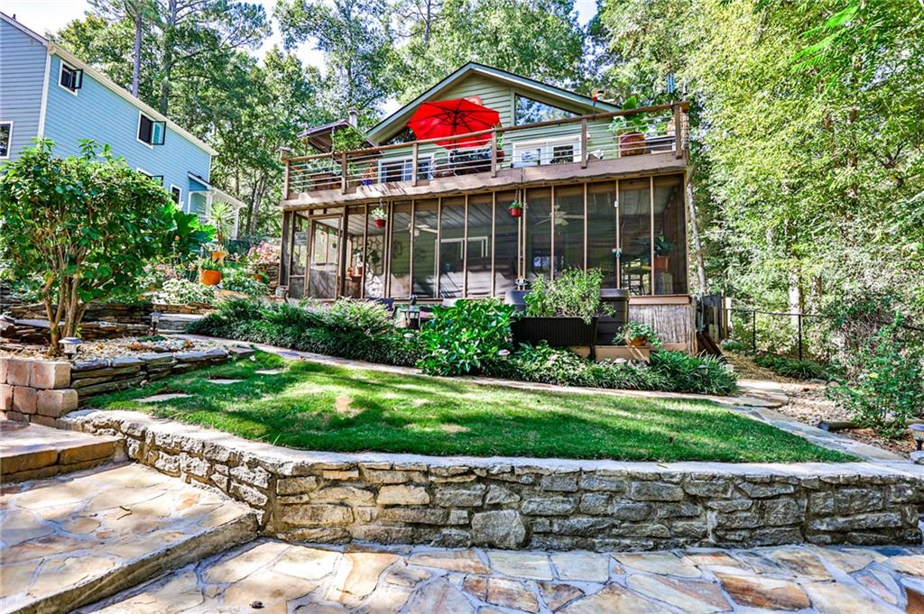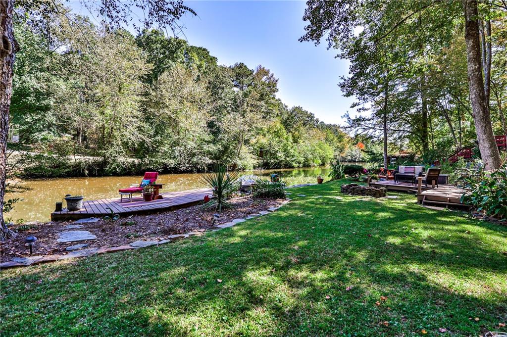 Lake life awaits at 572 Lake Drive in Snellville’s desirable private Norris Lake community. This charming 2-bedroom, 2-bath home sits on a 0.4600-acre lot and offers direct access to a private lake right in your backyard, creating a rare opportunity to enjoy a true lakeside oasis just 45 minutes from Downtown Atlanta and 15 minutes from Downtown Snellville. With its blend of natural beauty, outdoor recreation, and everyday convenience, this property offers the best of both worlds. Designed for lake life, this property features multiple outdoor spaces that maximize enjoyment and entertaining. An expansive deck off the living and dining room is perfect for grilling and hosting gatherings with friends and family. From the screened-in porch off the basement, you can relax while enjoying fresh air and lake views in any weather. Gather around the lakeside fire pit or entertain on the terraced backyard right by the water—with a private dock and boat slip, it’s easy to head out for boating, fishing, or simply floating. This home truly allows you to live, relax, and entertain right on the lake. Inside, you’ll find an inviting open-concept layout where the kitchen, dining room, and living room flow seamlessly together—perfect for both everyday living and entertainment. The kitchen is appointed with stainless steel appliances, and the main living room features a fireplace and beautiful vaulted ceilings. On the main level, you’ll find two spacious bedrooms, including a primary suite with a walk-in closet and a spa-like bath featuring a walk-in shower. A secondary bedroom provides flexibility for guests, a home office, or additional living space. The finished basement provides a flexible second living area complete with its own fireplace and full bath, making it ideal for a den, media room, or guest retreat. This level also includes a one-car garage with ample storage space and a laundry room, adding convenience and functionality to everyday living. The backyard is a true highlight of this home, thoughtfully designed with lush greenery, mature trees, and layered landscaping that enhance its peaceful retreat-like setting. A koi pond adds to the charm, while the mix of sunny and shaded spaces creates the perfect environment for relaxing, entertaining, or simply enjoying nature right at your doorstep. The Norris Lake community enhances the lifestyle with resort-style amenities: a private beach, community dock, swimming pool, tennis courts, playground, and clubhouse—all centered around a scenic private lake where neighbors come together. Residents also enjoy a monthly garden club to maintain the community’s landscaped beds, volunteer days for community projects, monthly member meetings, the lively “First Friday Club” where neighbors gather to eat, listen to music, and socialize, and a book club for avid readers. If you’ve been dreaming of a home that offers both peaceful seclusion and easy access to Atlanta, this property delivers. With direct lake access, lush landscaping, versatile living spaces, and a welcoming community with vibrant social and volunteer opportunities, it’s the perfect balance of recreation, relaxation, and connection.