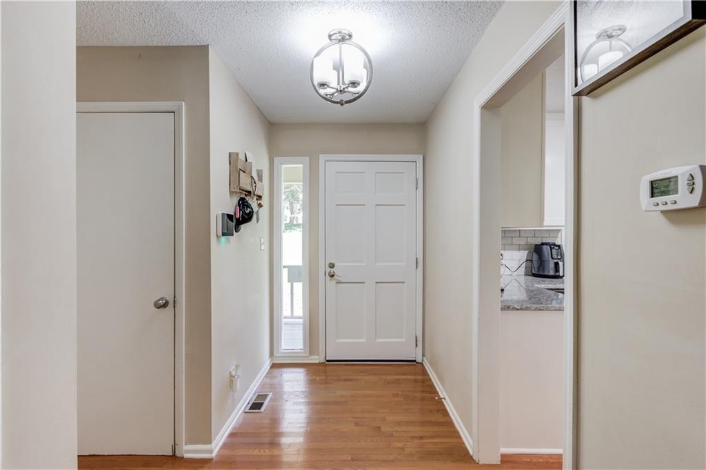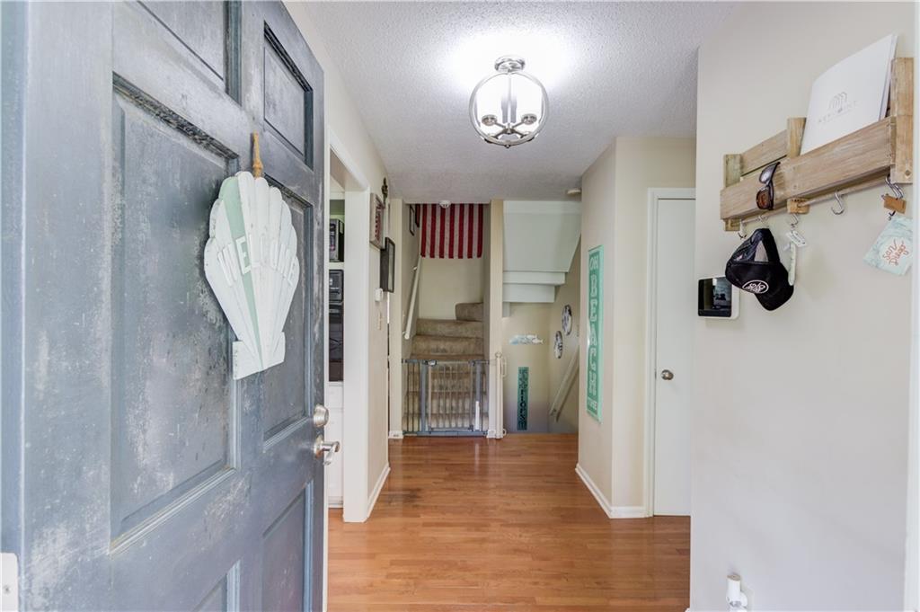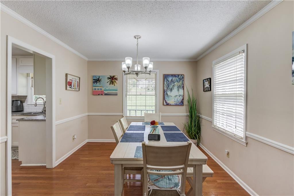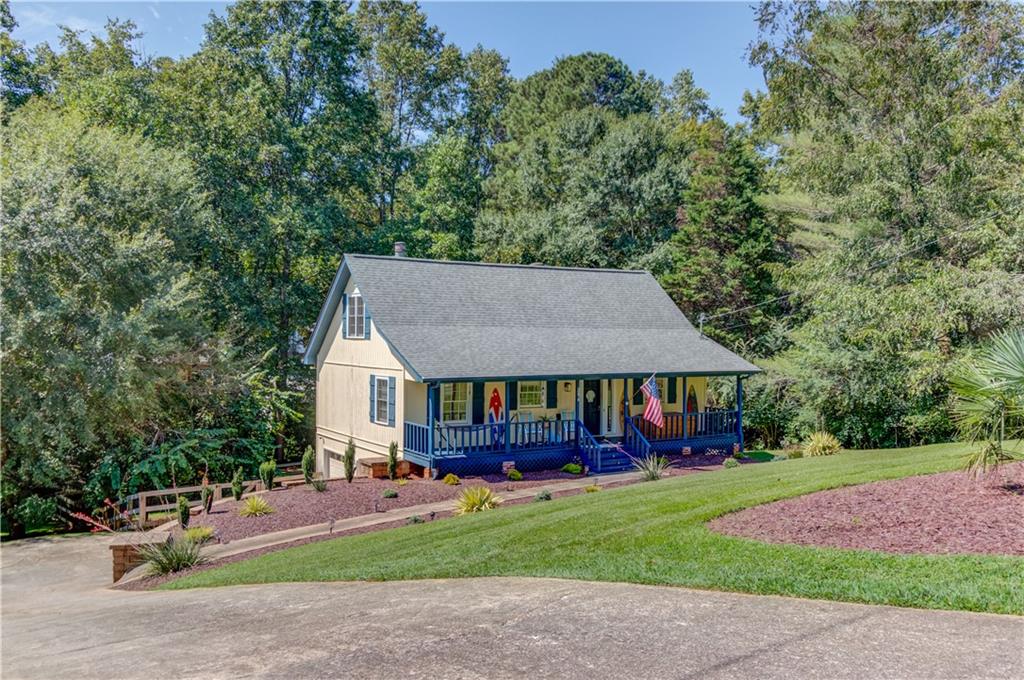 Welcome to 3754 Thompson Bend, a charming Cape Cod home located in a highly desirable North Hall neighborhood within the sought-after Mt. Vernon Elementary district. The main level features a spacious master bedroom, with two additional bedrooms and a full bath upstairs. The updated kitchen features white cabinetry and granite countertops, flowing seamlessly into hardwood floors in the family room, dining area, and kitchen. The partially finished basement is perfect for storage. Enjoy peaceful mornings on the covered rocking chair front porch in this quiet neighborhood, or unwind on the back deck overlooking a serene creek and a flat, fenced in usable backyard. Just 2 miles away, you'll find a convenient boat ramp for easy access to Lake Lanier. Just 6 minutes away from a brand new Publix, making grocery shopping quick and easy, and only 10 minutes from the Gainesville Square with plenty of shopping and dining!