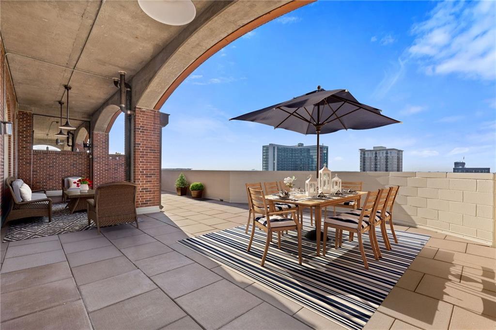 Welcome to Unit 1401 at the Mathieson Exchange Lofts! THE SELLER IS OFFERING TO PAY 6 MONTHS HOA WITH AN ACCEPTABLE OFFER! This incredible double unit affords you the lifestyle you've been craving - you literally don't need a car (but if you want one, there are two amazing covered deeded parking spots). Located in the heart of trendy Buckhead, the Mathieson Exchange Lofts (MEL) is a premier, full service condominium building with a 24-hour concierge staff. MEL is within walking distance to numerous restaurants, The Buckhead theater, Buckhead Village and many fashionable shops. The building is a 16-story residential loft high-rise and located on Mathieson Drive near its intersection with Peachtree Road - right next to Peachtree Road UMC. These lofts are the epitome of good design. The walls themselves are art, displaying meticulous brickwork, curving shapes, and arching windows. The amenities are stellar including the rooftop terrace with club room, pool table, etc...additional amenities include a pool with grilling area, newly revamped gym, and a dog walk. This unit (just one of 4 on the 14th floor), has one of the largest terraces with the most incredible panoramic views of Atlanta and beyond. With soaring ceilings and fabulous windows, the home is flooded with natural light. The kitchen was designed for a professional chef with high end appliances, double ovens and the most storage/cabinetry you have ever seen. There is a dedicated office with custom woodwork and exceptional storage as well as custom cabinetry and build outs in both of the en suite bedrooms. The primary bedroom is spacious and has yet another outdoor space. This home also has fresh paint, newer HVAC & water heater and a dedicated storage unit. Stop spending all of your time in a car, come and live the lifestyle you've been waiting for!