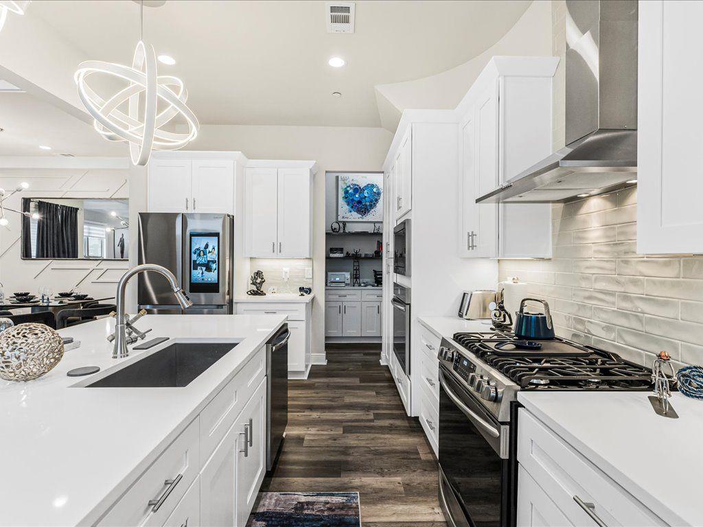 Welcome to this stunning, 2022 built end unit townhome located in the gated community of Tuscany Village, where modern design, comfort, and convenience come together seamlessly. This thoughtfully designed home features 3 spacious bedrooms, 2.5 bathrooms, and a bright, open concept layout that flows effortlessly from the oversized island kitchen into the dining and living areas. The kitchen is a true centerpiece, equipped with a gas cooktop and vent hood, a wall-mounted microwave combo, perfect for both everyday living and entertaining. Upstairs, a curved staircase leads to a cozy loft-style flex space, ideal for a home office, media room, or reading nook. The upper level also includes a large walk-in laundry room with built-in cabinetry, as well as a generous owner’s suite featuring dual walk-in closets and a spa-like bath with a freestanding soaking tub, dual vanities, and a walk-in tiled shower. Additional highlights include custom accent walls and detailed millwork throughout, a renovated guest bedroom, and a secondary bedroom fitted with California Closets perfect for someone with a large wardrobe, though easily converted back depending on the buyer’s needs. As an end unit, this home also offers added privacy, a fenced and turfed backyard for low maintenance outdoor enjoyment, and convenient proximity to guest parking. Residents will love the low maintenance lifestyle provided by the beautifully landscaped, HOA maintained grounds. Spend time at the dog park, play a game of bocce, relax at the community pavilion, or head out to one of the 69 eateries within a 5 mile radius. Set within the highly rated River Ridge High School district and surrounded by everyday conveniences, this home is ideal to lock and leave, reside and raise, rest and relax, or connect and commute. Tuscany Village offers the perfect balance of accessibility and tranquility, with quick access to Downtown Woodstock, The Outlet Shoppes, major grocers, and local dining favorites. Commuters will appreciate the easy routes to Hwy 575, Peach Pass lanes, and Hwy 400. This is a rare opportunity to own a highly upgraded, move in ready home in one of Woodstock’s most desirable gated communities.