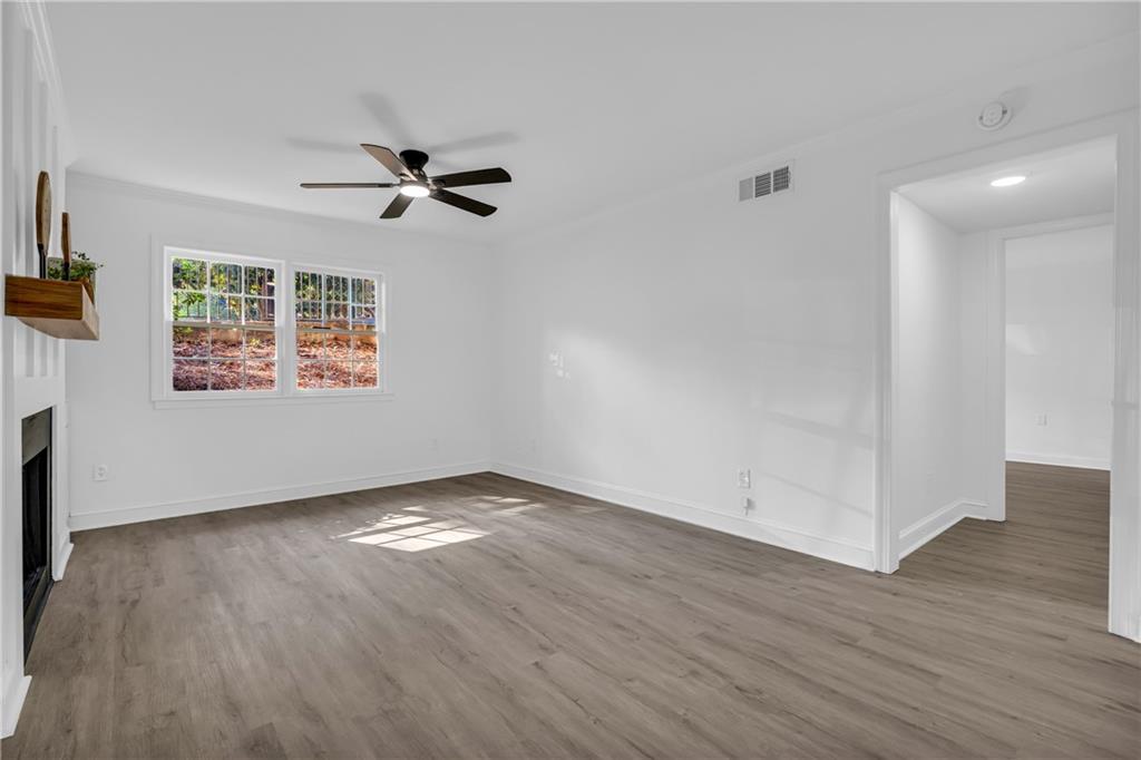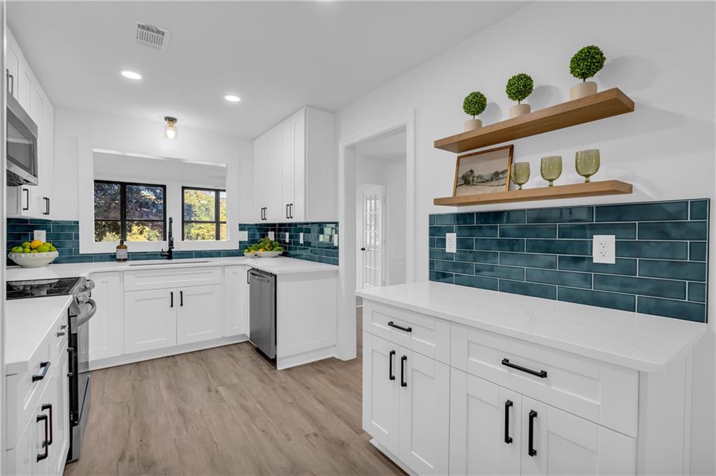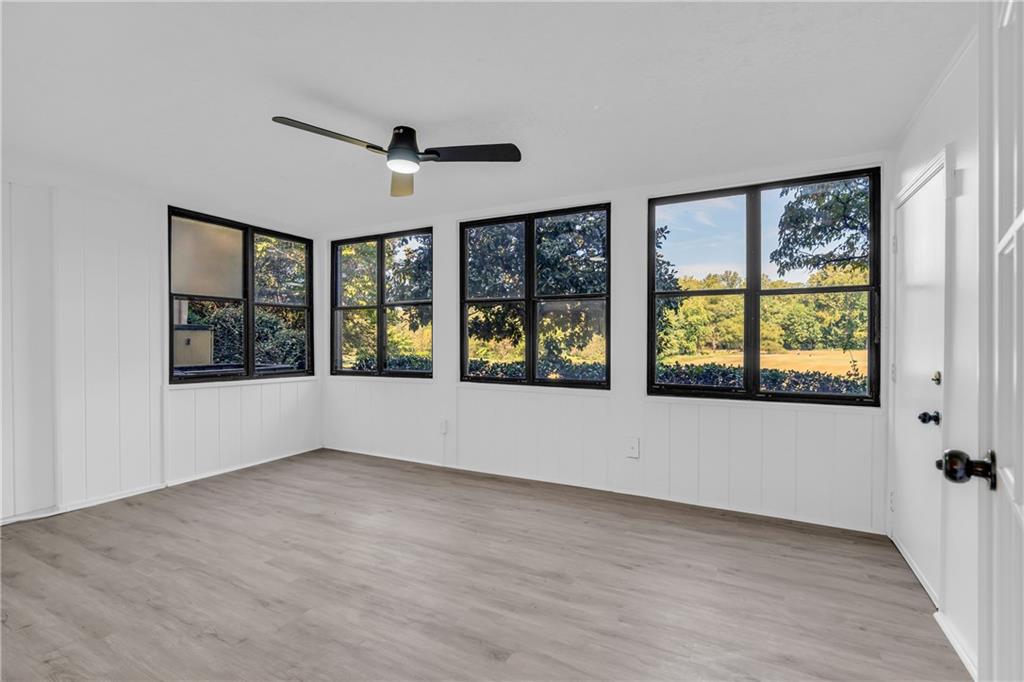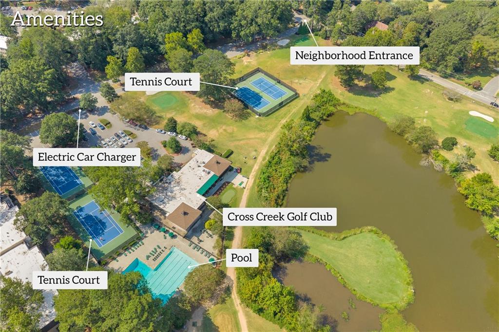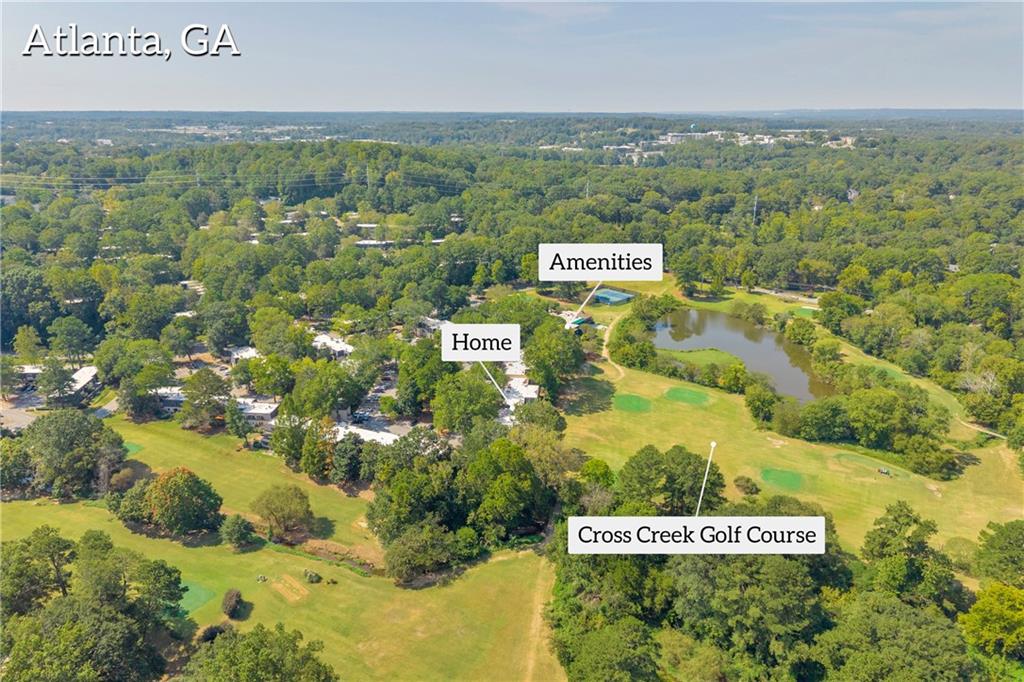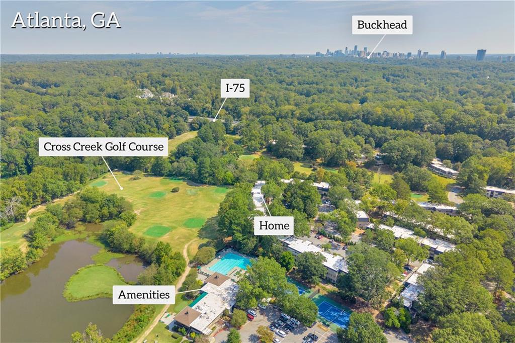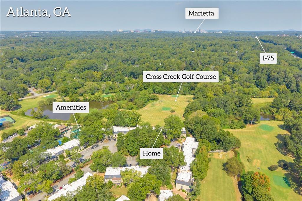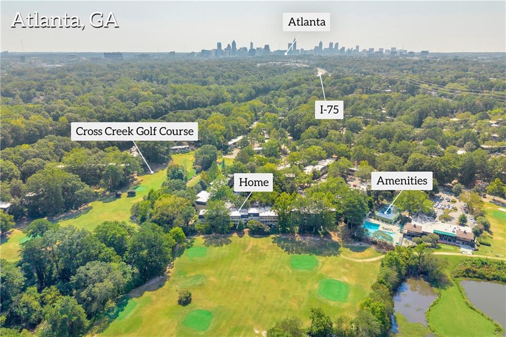 Come and visit this tremendous terrace level renovation! Cross Creek is a beautiful resort community in one of the most convenient areas in the Northwest Buckhead area of Atlanta. This home backs to the golf course, providing spectacular unobstructed views of the course! This home was taken to the studs - literally - and is a true renovation, not a few gallons of paint. Here you'll find a completely new kitchen to include cabinets, counters, appliances, fixtures and more. Both bathrooms are completely new, vanities, tub, tiled shower and floors, fixtures, even new drain and supply lines. Mechanical updates include a new electric panel, almost all new wiring, new HVAC including line set and condensate lines, new doors and hardware, and a new tankless water heater. All electric and plumbing fixtures, flat switches, outlets, covers, closet doors and shelving...all new. Most insulation is new, and high grade Sherwin Williams paint protects all of the new drywall, trim, and doors. The restrictive floor plan is gone, the unit is flooded with light, and the open floor plan is transformative. Cross Creek is a resort-style gated community. Enjoy a sprawling par 3 golf course, three pools, both tennis & pickleball courts, a fitness center, EV charging stations, and restaurant right on site. Great camps and events for the kids throughout the year. Great for owners as well as investors, this unit is ready to go and will provide years of trouble-free living. Opportunity is knocking, answer the door!