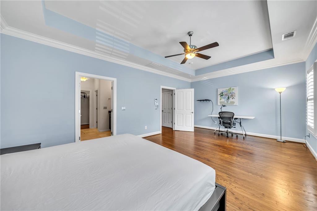 3 story high luxury townhome built with expensive natural stones and solid bricks with 3 bedrooms and 3.5 bathrooms locates at Lenox mall area. Walking distance to Phipps Plaza, Nordstrom Store, Lenox Square, restaurants, office buildings and Marta stations. High quality hardwood floors in all rooms, except bathrooms. Tiles in all bathrooms. Stairs are hardwood floors also. New back deck. The 2 story entry foyer sets a grand tone as soon as you step inside, offering a sense of space and openness. A bedroom with a full bathroom on the main level adds convenience to work from home to use it as office. The 2nd level likes the heart of the home, with a large kitchen featuring high-end appliances and granite countertops, perfect for both everyday cooking and entertaining. The spacious family room with its coffee ceiling and fireplace provides a cozy elegant atmosphere, while the dining space between the kitchen and family room offers a seamless flow for hosting gatherings. The custom-painted half bathroom adds a touch of personality and style to the space. Moving upstairs to the third floor, the master bedroom and additional bedroom offer privacy and comfort. The wet bar cabinets near the master bedroom are a thoughtful addition, providing convenience for late-night snacks or wine or morning coffee without having to go downstairs. The layout of this townhome maximizes both functionality and elegance, creating a welcoming environment for everyday living and entertaining alike. Elevator shaft space is ready for buyer to install an elevator. The design speaks to a level of sophistication and comfort that many homebuyers aspire to. The home is well cared and maintenance that's often hard to find. Plus, it is nestled inside the subdivision, away from Peachtree Road's traffic noise, adds to its appeal. 2 car garage, private entry, security system, and surround sound stereo enhance the convenience and security of the home. Expensive plantation shutters for all windows. Well-appointed master suite with double vanities, jacuzzi tub, spacious shower, toilet room and a walk-in closet with built-in cloth shelf. HOA fee covers landscaping, termite bond, waster, sewer and garbage services. Easy and relax life for busy professionals or retired elderly who want to travel the world. Enjoy the home and your life.