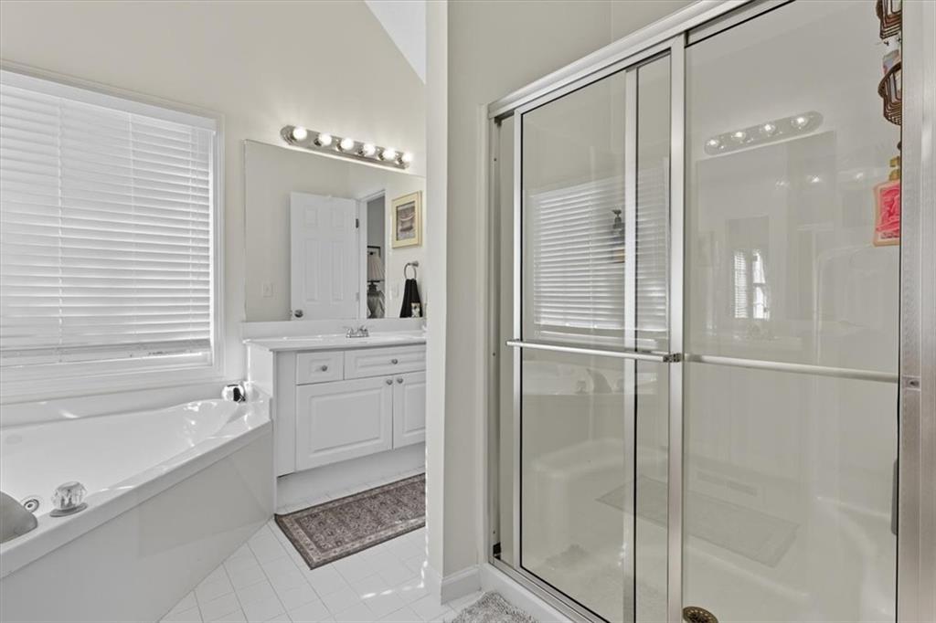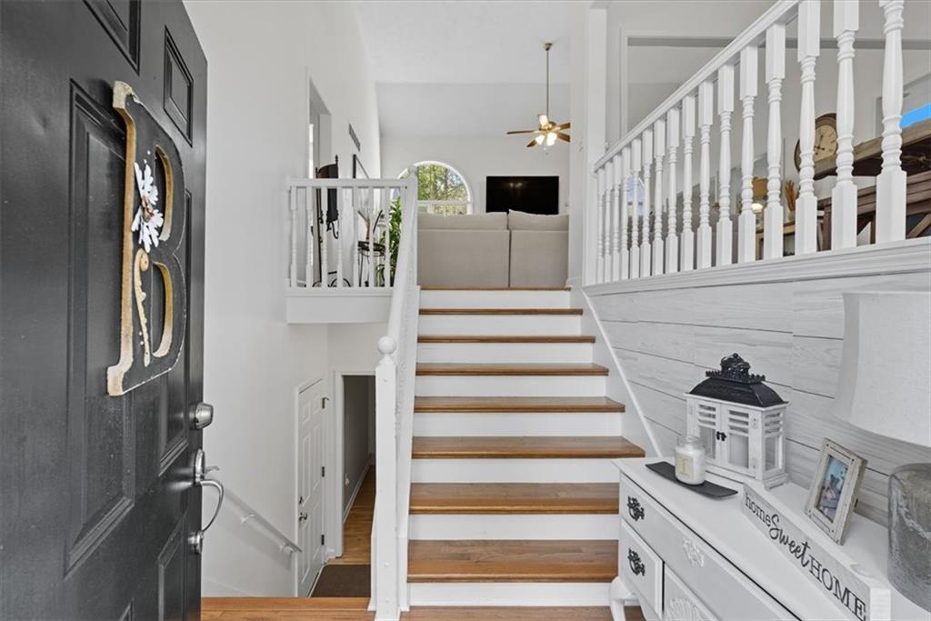 Beautiful 4/5 bedroom split foyer home nestled on a private wooded lot in the desired North Paulding community of North Pointe. Open floor plan from the large vaulted family room having hardwood floors, brick fireplace, huge windows for a lot of natural light, looks into the breakfast area, dining room and pass through to kitchen. The light, bright kitchen has stainless steel appliances, tile floors, white cabinetry and breakfast area with many windows and exterior door to deck. Lower cabinets have slide outs for your convenience. The dining room is also open to the family room, has a vaulted ceiling and a large triple window. The master bedroom is very large, has double doors to the deck, also vaulted ceiling and a lot of natural light. Master bath has a large jetted tub, separate vanities, tile floor and double door shower. Walk in closet is off the bathroom and has a professional closet system. The two additional bedrooms on the main level are generous in size with one having a large palladium window and high ceiling. The lower level you will find a large den, great space for extra tv room, playroom, man cave or diva den! The bedroom on the lover level is a great size and there is an additional bonus/5th bedroom/office as well, and a full bath. The garage is oversized, accommodates two large vehicles easily and is stubbed for separate storage space on the back side. The large deck runs almost the entire length of the home, the back yard is fenced. The HVAC and water heater have been replaced recently. Newer paint on exterior. The driveway for this property is very wide and long for convenience in parking many cars. Don't miss the chance to live in this awesome home with a lot of space for you and your family!