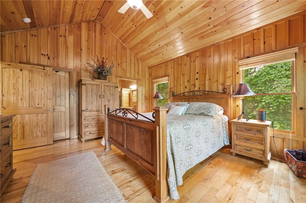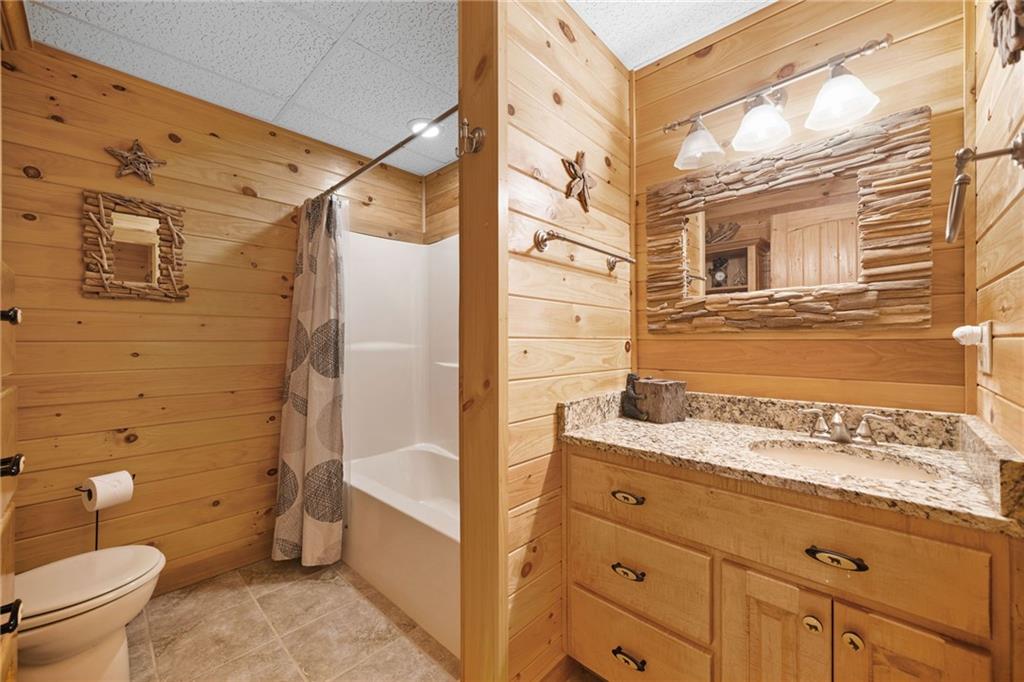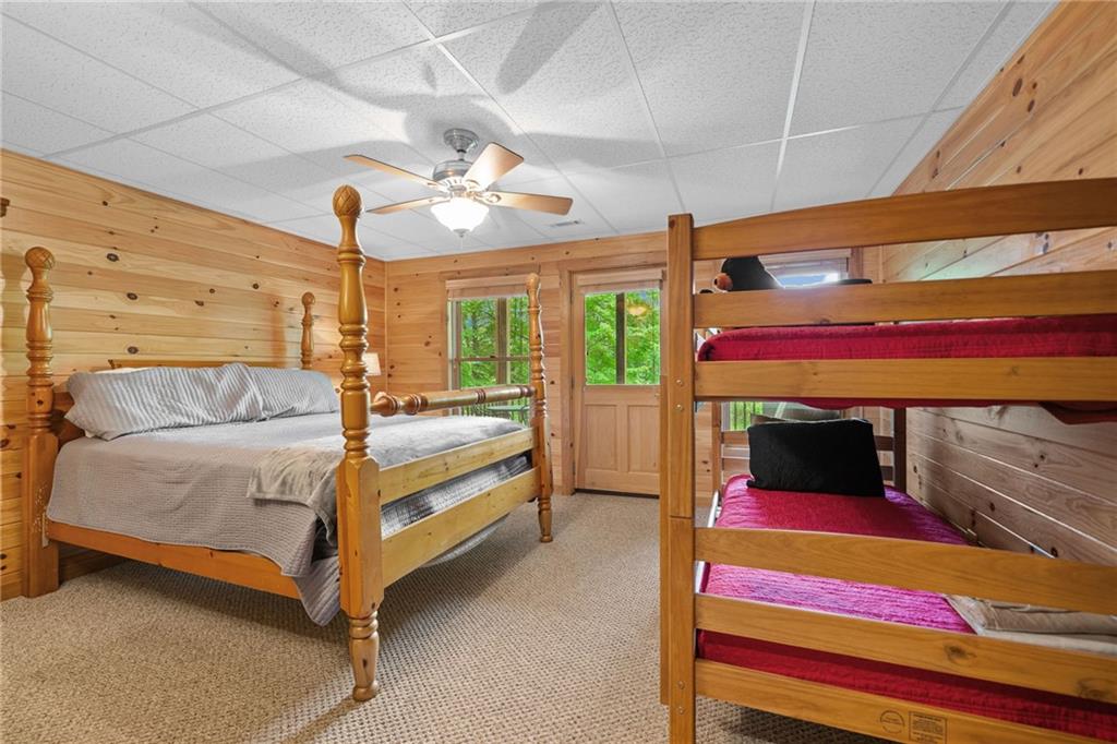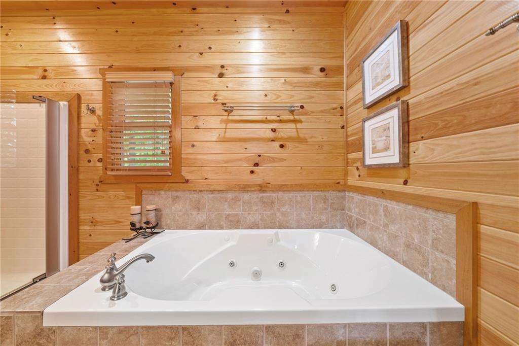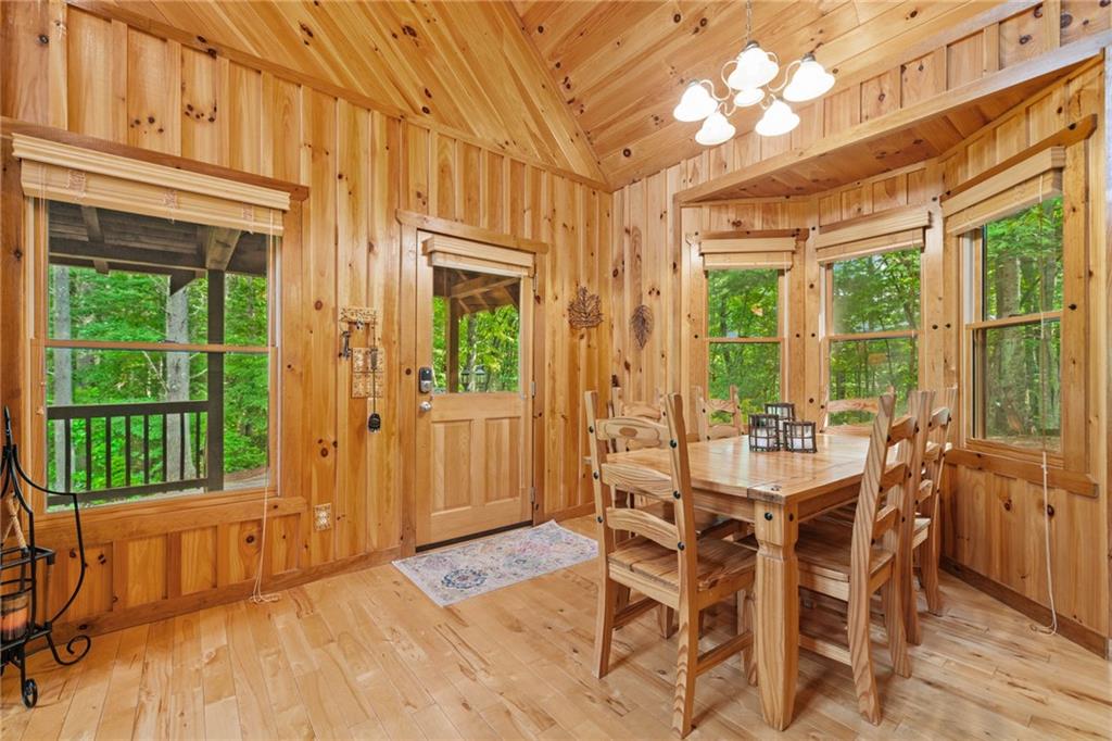 This exemplary mountain lodge with stunning Cohutta Mountain views can now be yours! Perched in a small gated community with nearly all paved access, this exquisite lodge offers the perfect blend of luxury, comfort, and convenience. Whether you're seeking a full-time residence, vacation getaway, or investment opportunity, this home checks all the boxes. Designed for seamless indoor and outdoor living, the spacious wraparound porch on the main level invites you to take in the breathtaking views of the Cohutta Mountains beside a cozy outdoor stone fireplace. Inside, the open-concept great room features soaring ceilings, a beautiful stone fireplace, and direct access to the rear porch, perfect for relaxing or entertaining with a mountain backdrop. The kitchen will please any culinary enthusiast with a two-tiered island with bar seating, granite countertops, pantry storage, and an adjacent dining area for gathering with family and friends. The main-level primary suite offers French door access to the porch, a gorgeous spa-like ensuite bath with a whirlpool tub, separate tiled shower, and convenient hallway access. A laundry closet rounds out the main level. Upstairs, you'll find a cozy loft space leading to a second master suite with vaulted ceilings, walk-in closet, a private covered balcony with stunning views, and a tiled ensuite bath with large shower. The fully finished terrace level is ready for fun, featuring a secondary living area, game space with bunks, plus a spacious bedroom with queen bed and additional bunk beds, a full bath, and walk-out access to the lower deck with a large hot tub, where mountain views continue to impress. Set on a generous lot that offers peace, privacy, and natural beauty. Just around the corner from trout fishing in the Toccoa River or 15-20 minutes from downtown Blue Ridge shopping & dining. This exceptional mountain lodge is your chance to live the North Georgia lifestyle in comfort and style.