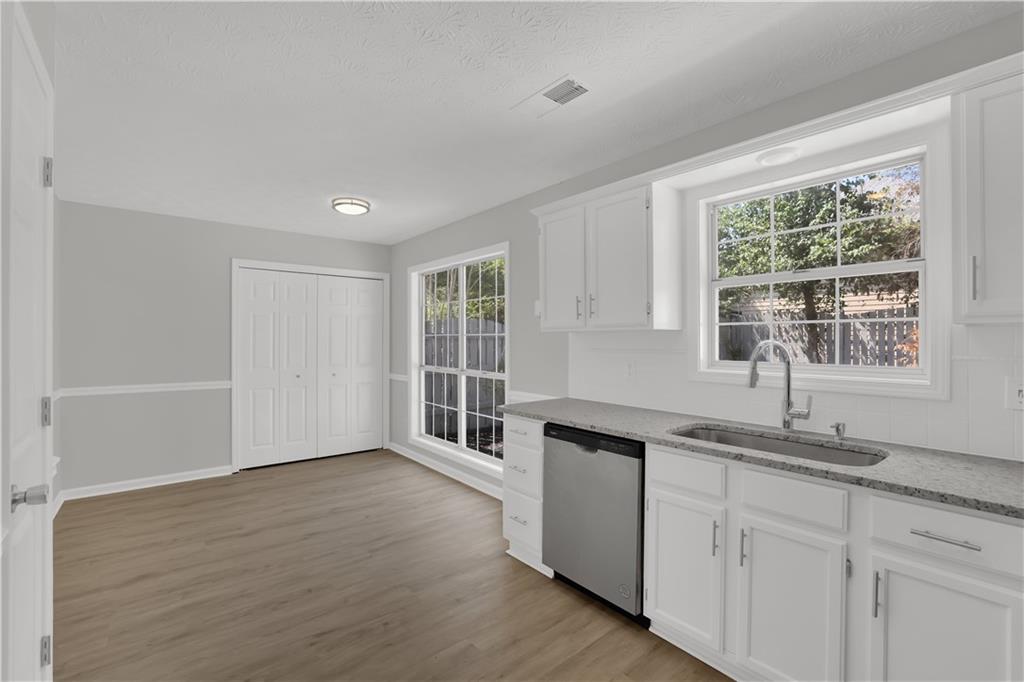 Charming 3BR/2BA ranch on a spacious corner lot in Westmill Creek. The inviting family room with fireplace opens to the dining area and kitchen featuring granite countertops and classic cabinetry. Fresh paint, updated flooring, and modern fixtures throughout. A beautiful sunroom with abundant natural light overlooks the backyard—perfect for relaxing or entertaining. Primary suite with private bath plus two secondary bedrooms and full hall bath. Large fenced yard, two-car garage, and convenient Marietta location near shopping, dining, schools, and major highways. Full of charm and move-in ready—make this property your home!