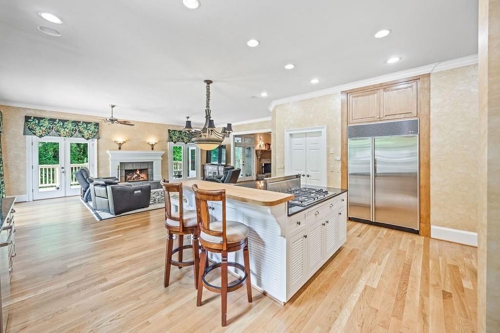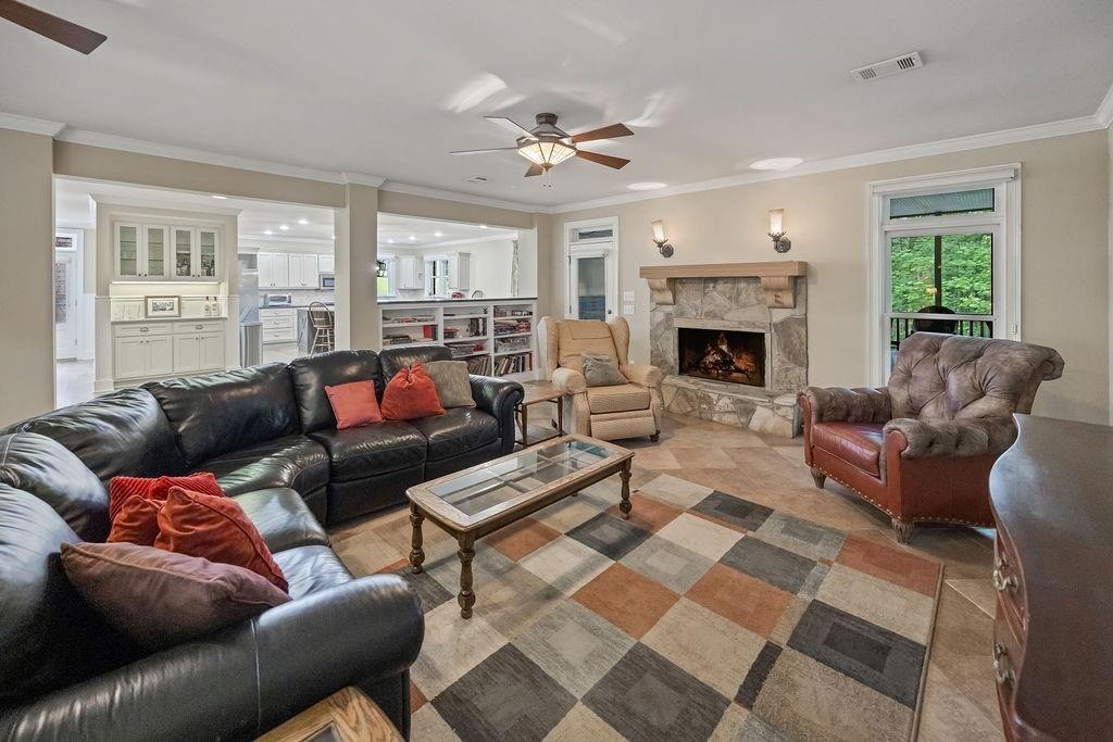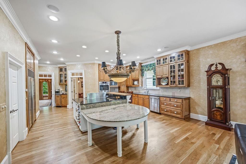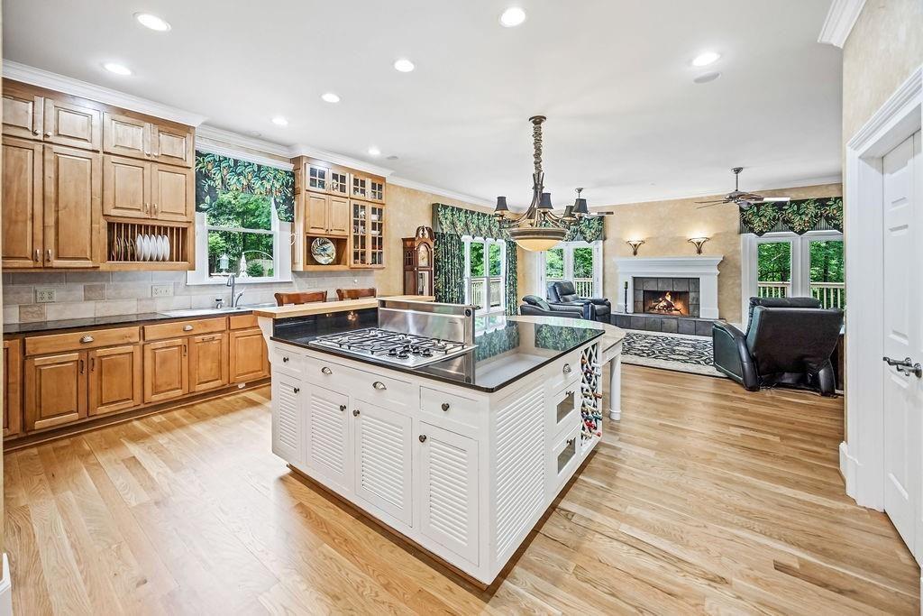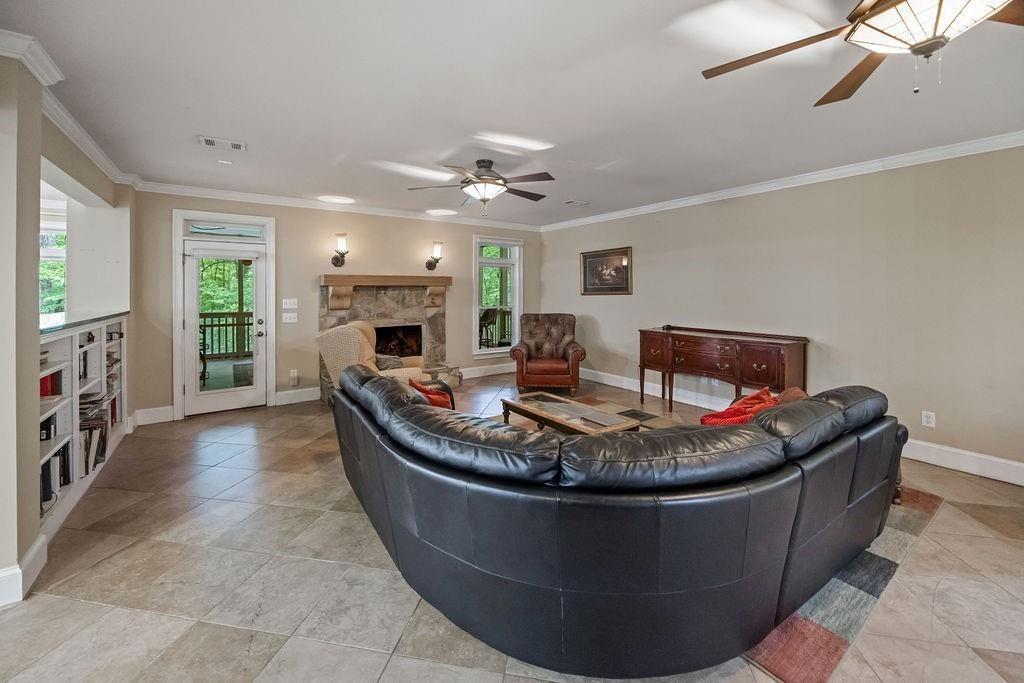 Escape to Sweet Briar Manor, a stunning 5.08-acre private estate where luxury meets tranquility. This isn't just a home—it's a lifestyle. Step into the grand two-story foyer and immediately feel the elegance of this custom home. The main level is designed for both entertaining and everyday living, featuring a formal dining room and a spacious living room with a stone fireplace and sophisticated coffered ceilings. The gourmet kitchen and keeping room with a fireplace is a chef's dream, with stainless steel appliances and granite countertops. From here, you can overlook the sparkling saltwater pool, a perfect setting for your next gathering. The main-floor primary suite is a true retreat, offering a fireplace, sitting room, and a luxurious bath with a soaking tub. A second bedroom with a private bath on this level is ideal for guests. Upstairs, two more spacious bedrooms each have their own private bath. The enormous walk-in attic offers incredible potential to expand or use as massive storage space. The basement level is a full, separate apartment, perfect for an in-law suite or multi generational living. With its own private entrance, driveway, and patio, it's a home within a home. This level includes a second primary suite, a full kitchen with a huge island, and a family room with a fireplace. Enjoy the best of outdoor living with a large deck, a screened porch, and a patio, all overlooking the gorgeous pool. This is the private oasis you've been searching for!