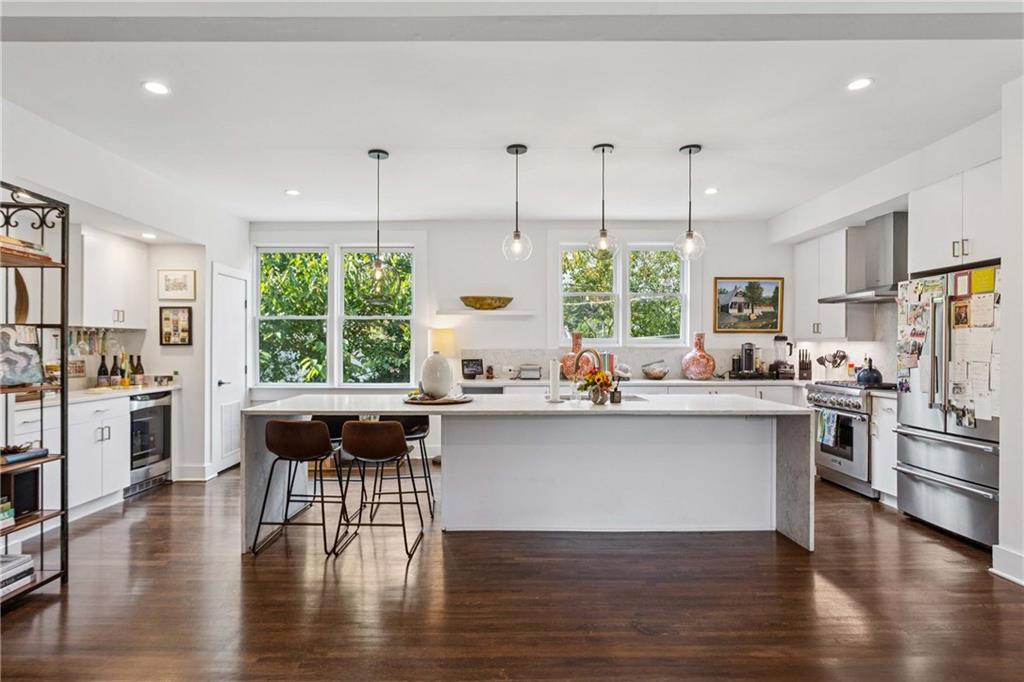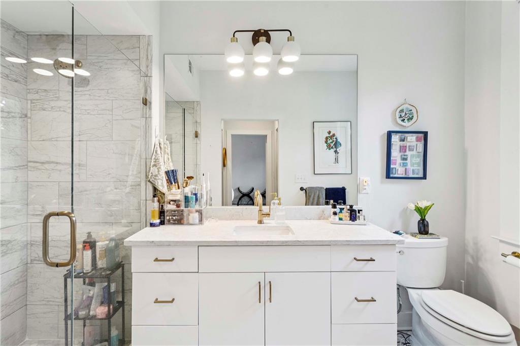 Experience elevated Buckhead living in this stylish two bedroom, 2 bath condominium at the sought-after Enclave at Peachtree Memorial. This former model home showcases high-end design and thoughtful upgrades throughout. The heart of the home is a chef’s kitchen, complete with Bosch and Thermador stainless steel appliances, gas range, an oversized waterfall island, quartz counters and backsplash, and a built-in bar with wine refrigerator—ideal for entertaining. The open-concept living room flows seamlessly to a screened porch, offering a private retreat for morning coffee or evening relaxation. The Owner’s Suite boasts double closets and a spa-inspired ensuite bath, while the second bedroom and full bath provide a comfortable retreat. Additional features include a new hot water heater and two deeded covered parking spaces for convenience. This community offers more than just a home—it’s a lifestyle. Residents enjoy access to a fitness center, landscaped grounds, and walkable tree-lined streets. Adding to the appeal, the condo comes with a transferable rental permit, offering flexible investment potential. Located in the heart of Buckhead, you're just minutes from Buckhead's popular shopping and dining, The Beltline, and Midtown arts and cultural venues. Quick access to I-75, I-85, and GA-400 makes commuting across the city a breeze.