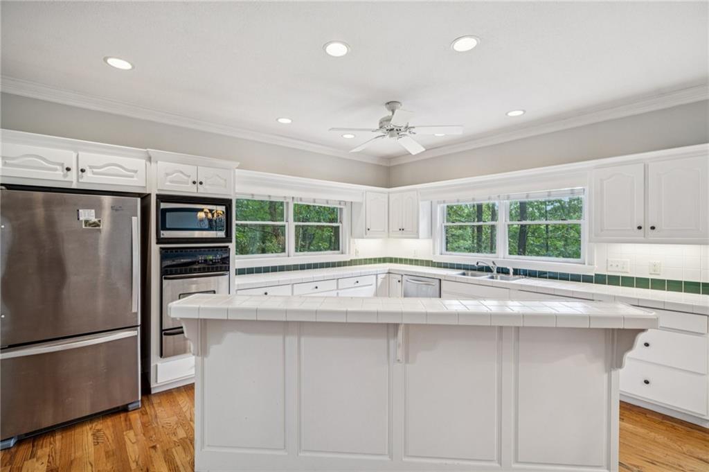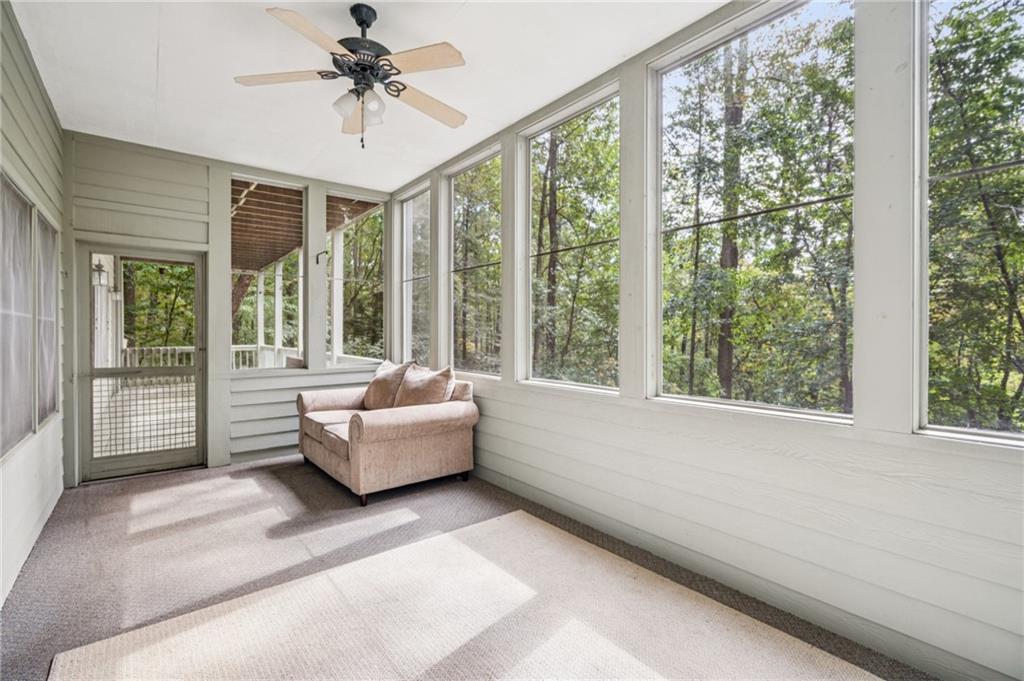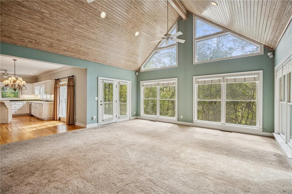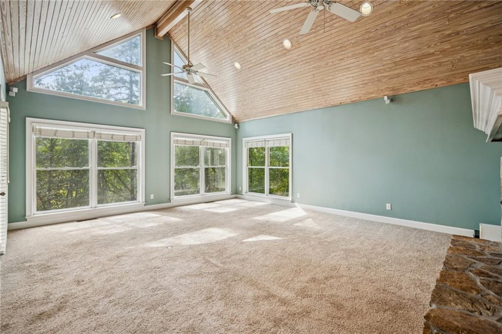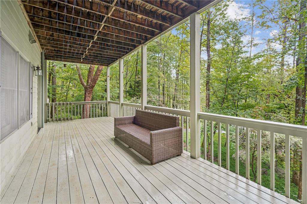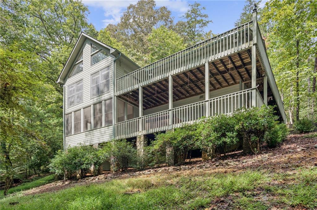 Tucked away in the gated Skylake community, this 4-bedroom, 3-bath mountain home sits on two combined lots totaling 3.57 acres, offering both space and privacy alongside some of North Georgia’s best amenities. Relax on the expansive wraparound porch or step inside to an open-concept living area where the kitchen, dining, and great room come together under soaring ceilings. A dramatic stone fireplace and floor-to-ceiling windows create a warm, light-filled centerpiece for gatherings. The kitchen features a spacious island with cooktop, hardwood floors, and plenty of cabinetry. The main level hosts a generous owner’s suite with tray ceiling, double-vanity bath, and tiled finishes. A second bedroom and full bath, plus a flexible laundry/bonus room that can serve as an office, complete this floor. The finished daylight basement expands the living space with two more bedrooms, a third full bath, and a large living area with wet bar. From here, enjoy morning coffee while watching deer wander past or take in views of the neighboring horse pastureland and tranquil green space. Skylake itself provides a lifestyle beyond compare: two lakes for fishing and kayaking, a clubhouse, swimming pool, tennis and pickleball courts, playgrounds, stables, a dog park, and more than 12 miles of hiking trails. Residents also enjoy a gated entrance with 24-hour security and amenities like boat, kayak, and RV storage. (Note: short-term rentals are not allowed.) If you’ve been waiting for a true mountain retreat with a strong community and resort-style amenities, this Skylake home is ready to welcome you.