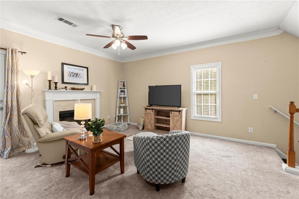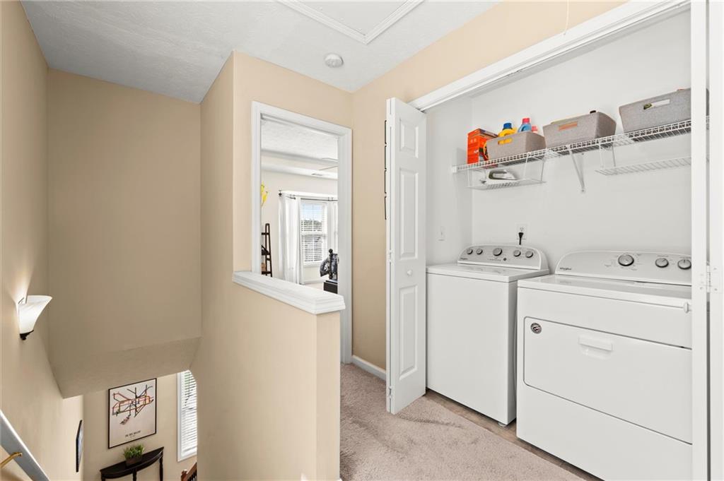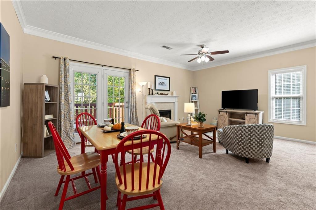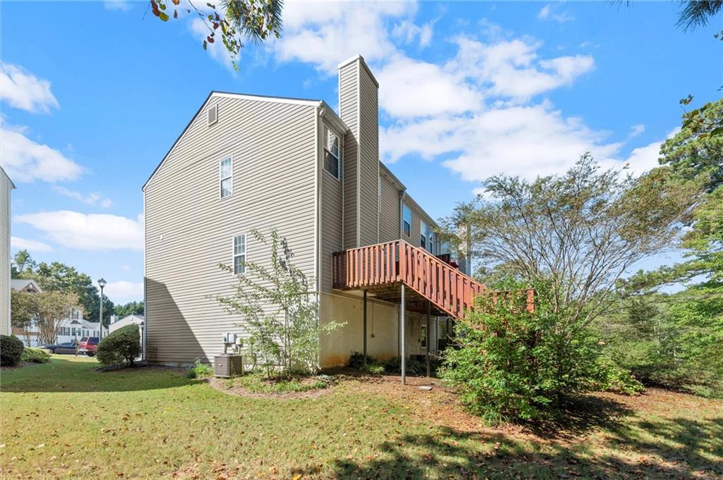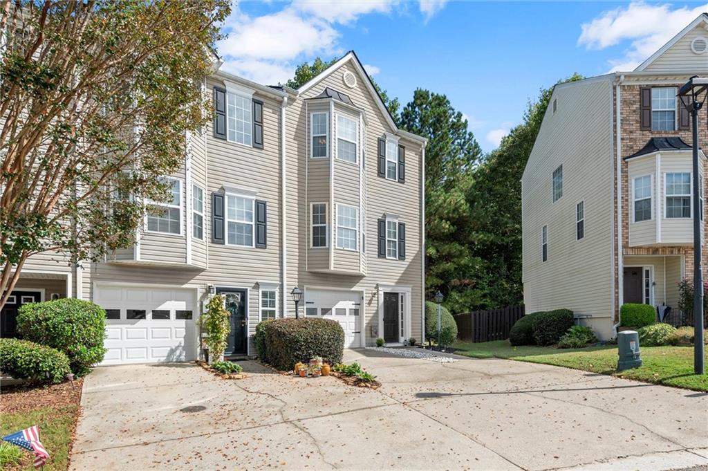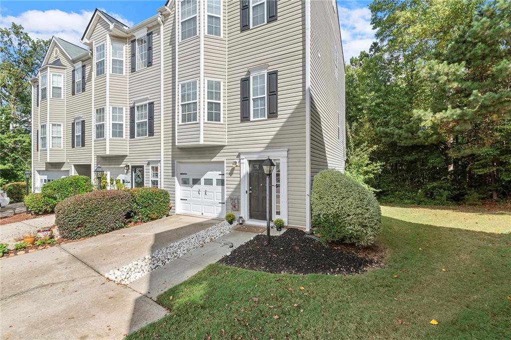 Welcome to this charming and well-maintained 2-bedroom, 2.5-bath end-unit townhome in the peaceful Pilgrim Lake community. Nestled on a quiet cul-de-sac, this three-story home offers abundant parking with a two-car garage and a flat driveway that easily accommodates two more vehicles. The main level boasts an open-concept layout, perfect for entertaining, featuring a spacious kitchen with breakfast bar, a dining area, and a cozy living room with an updated gas fireplace. French doors lead to a private back deck overlooking a wooded yard and tranquil lake views. Upstairs, you’ll find two bright, generously sized bedrooms, each with its own ensuite bath and ample closet space. The laundry closet is conveniently located in the hallway. Recent updates include fresh interior paint, a newer roof (2020), new gas line for the fireplace, and a newer washer and dryer. All appliances remain with the home. Pilgrim Lake residents enjoy a well-kept community with HOA services that include trash collection and lawn maintenance. With its ideal location near downtown Cumming, GA-400, Cumming City Center, The Aquatic Center, shopping, dining, and top-rated schools, this home offers comfort, convenience, and value all in one.