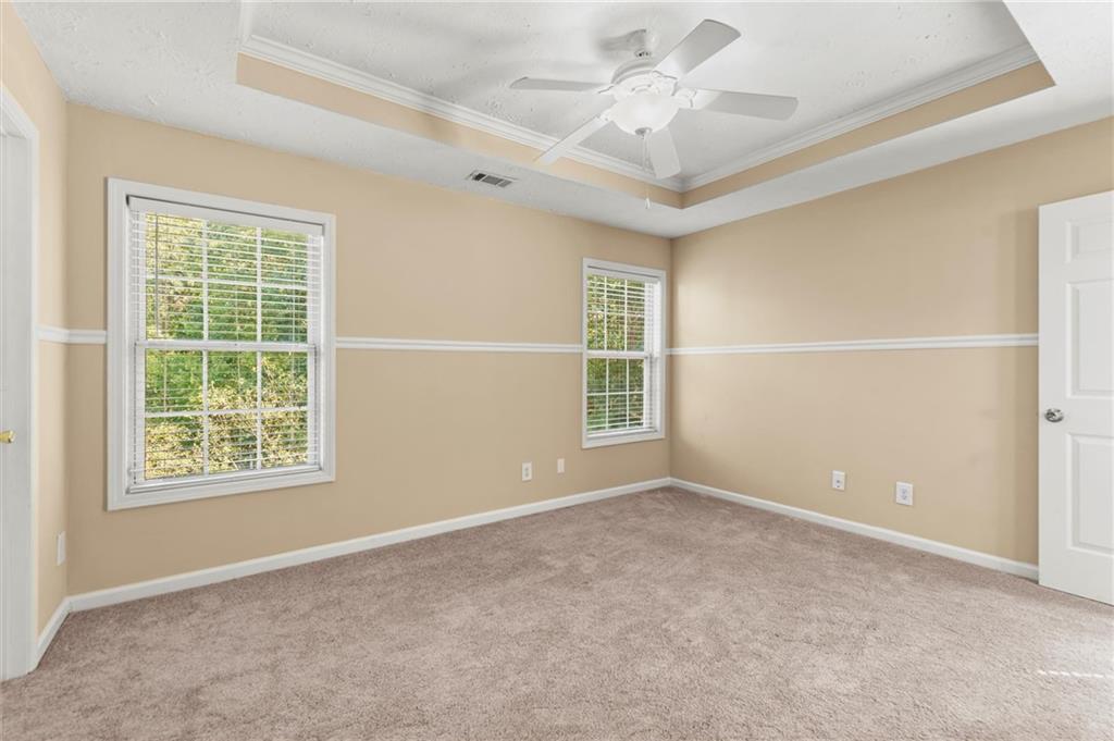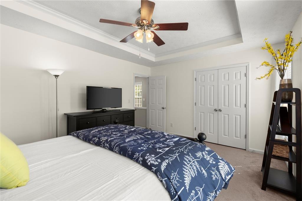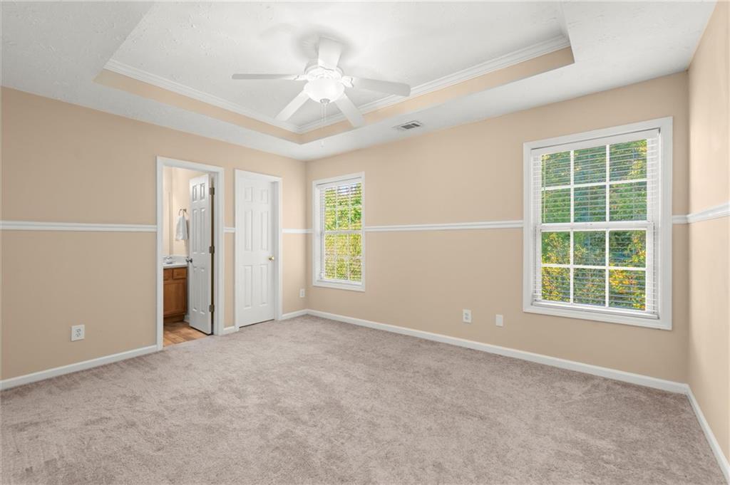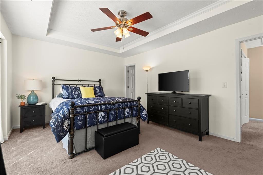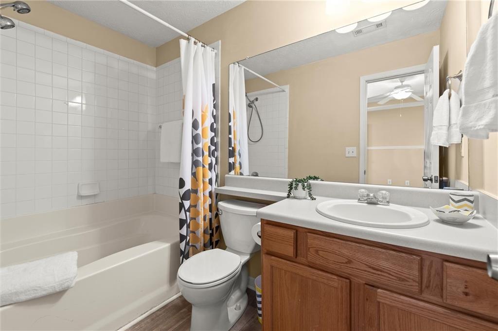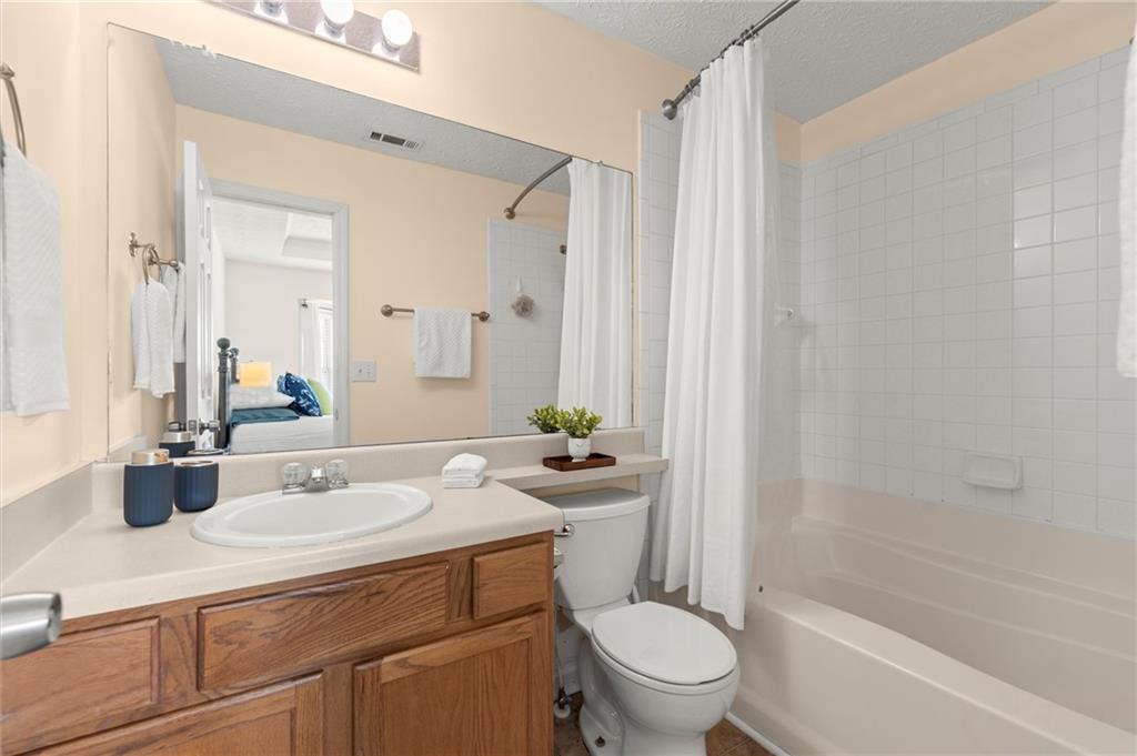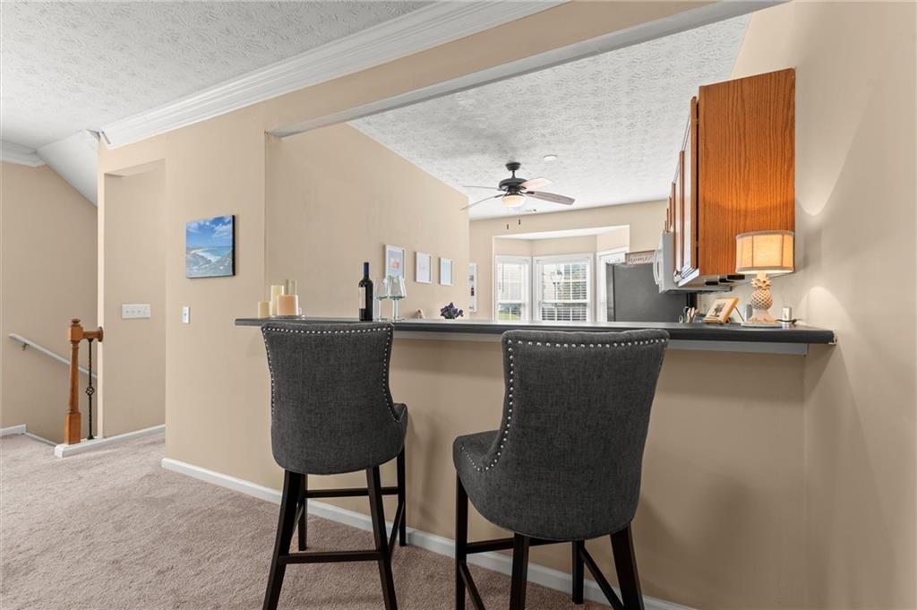 Welcome to this charming and well-maintained 2-bedroom, 2.5-bath end-unit townhome in the peaceful Pilgrim Lake community. Nestled on a quiet cul-de-sac, this three-story home offers abundant parking with a two-car garage and a flat driveway that easily accommodates two more vehicles. The main level boasts an open-concept layout, perfect for entertaining, featuring a spacious kitchen with breakfast bar, a dining area, and a cozy living room with an updated gas fireplace. French doors lead to a private back deck overlooking a wooded yard and tranquil lake views. Upstairs, you’ll find two bright, generously sized bedrooms, each with its own ensuite bath and ample closet space. The laundry closet is conveniently located in the hallway. Recent updates include fresh interior paint, a newer roof (2020), new gas line for the fireplace, and a newer washer and dryer. All appliances remain with the home. Pilgrim Lake residents enjoy a well-kept community with HOA services that include trash collection and lawn maintenance. With its ideal location near downtown Cumming, GA-400, Cumming City Center, The Aquatic Center, shopping, dining, and top-rated schools, this home offers comfort, convenience, and value all in one.