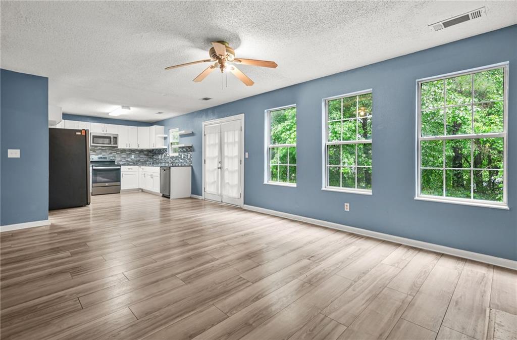 Well-maintained 2-story home in quiet Lithonia community. Hardwood floors throughout the open-concept main level. Living room features cozy fireplace and flows into dining area and kitchen with stainless steel appliances, tasteful backsplash, and ample cabinet space. Upstairs offers carpeted bedrooms with generous closet space. One-car garage. Great curb appeal with spacious backyard—ideal for entertaining or relaxing. Convenient to shopping, schools, and major highways.