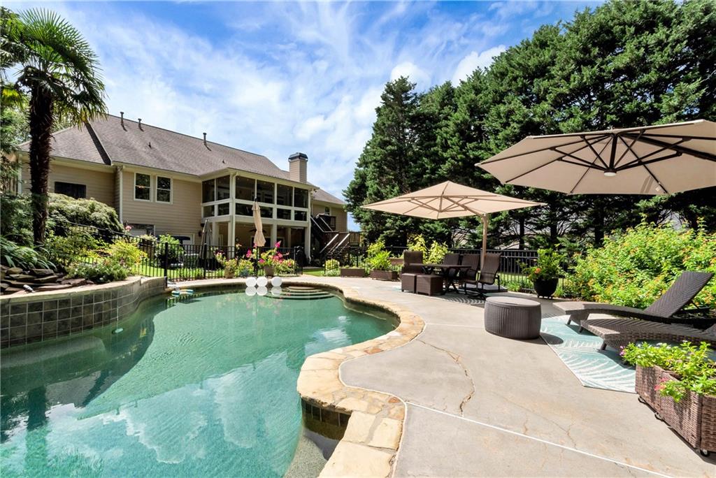 Welcome to your private retreat! Nestled on a beautifully landscaped 1+ acre lot in a highly sought-after school district, this exceptional home offers the perfect blend of luxury, comfort, and functionality — both inside and out. Step into an open, light-filled main level featuring soaring ceilings and expansive windows that bring the outdoors in. The heart of the home boasts a gourmet kitchen that flows seamlessly into the living and dining areas, ideal for entertaining or relaxed family living. Enjoy the ease of main-level living with a luxurious master suite, complete with a spa-inspired ensuite bathroom, plus a secondary bedroom with an en-suite full bath, and an additional guest bathroom—perfect for multigenerational living or visitors. An office space and laundry with cabinetry and basin complete the main level. Step outside to your private backyard oasis featuring a saltwater gunite swimming pool with a mini waterfall, surrounded by lush greenery for ultimate relaxation. The screened-in deck offers year-round enjoyment and overlooks the serene, tree-lined yard. The partially finished basement is an entertainer’s dream, offering a wet bar, spacious family lounge, two additional bedrooms, one full bathroom, a guest half-bath, a wet bar and a versatile kids’ playroom and bonus room that can adapt to your lifestyle needs. Don't miss this rare opportunity to own a home that truly has it all — space, privacy, and resort-style amenities — this well maintained property is a gem!