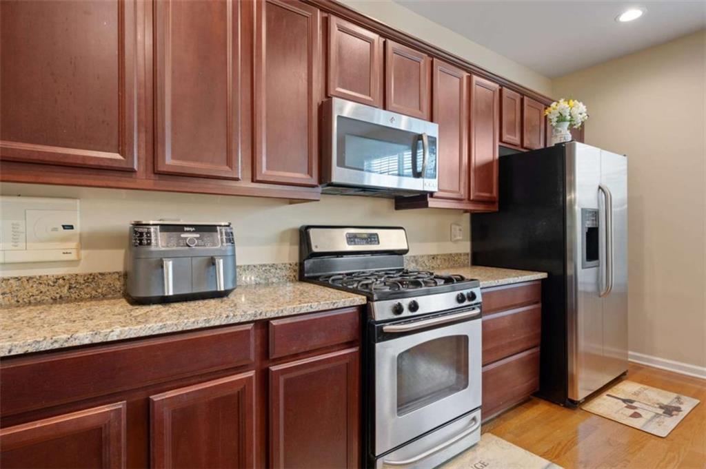 Why waste time touring other homes when the one you're searching for is this lovely 3-bedroom, 3.5-bathroom, 3-story townhouse located in the established Oakdale Bluffs community? Tried, tested, and true for those who seek a convenient location, design sophistication, and practicality, it offers exceptional value in the metro-Atlanta market. Make no mistake with this wise investment and elevate your daily living by gaining easy access to Buckhead, Downtown ATL, many of the city's finest amenities, and nearby attractions-like the Chattahoochee River, Truist Park, the Battery ATL, the Silver Comet Trail, and much more. Come home to an upscale, brick-front exterior facade, gorgeous hardwood floors, and 9-ft ceilings showcased in a modern, open-concept floor plan. The main level brings harmony to both work and play by providing flexible space-ideal for focused remote work or study from home-with easy access to the joys of a spacious great room filled with the ambient warmth of a cozy fireplace. Experience it all from the well-equipped, dine-in kitchen featuring an abundance of beautifully stained wood storage cabinets, granite countertops, stainless steel appliances, a breakfast bar, a gas-cooktop range, and recessed lighting while preparing meals, and creating precious memories with those you love. Two spacious ensuites await on the upper level. The primary boasts a vaulted ceiling, a sitting area, dual bath vanities, a large walk-in closet, a separate jetted soaking tub and shower, and a private backyard deck. The secondary ensuite offers similar amenities to the first, and both ensuites share hallway access to the upstairs laundry closet. The terrace level daylight basement offers a full bath, one of three private outdoor spaces, and ample room for spirited gatherings or hosting overnight guests. Exclusive neighborhood amenities include a Club House with a Pool and Gym, a Dog Park, Lighted Tennis Courts, and Plentiful Guest Parking. Don't miss this amazing opportunity. Schedule a private showing today and experience undeniable value and positive vibes that go beyond perception! ***Additional Considerations: New Roof, New Water Heater, Fee Simple Ownership, Low Cobb Taxes, Low-Maintenance Living, Great Location***