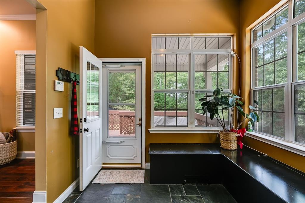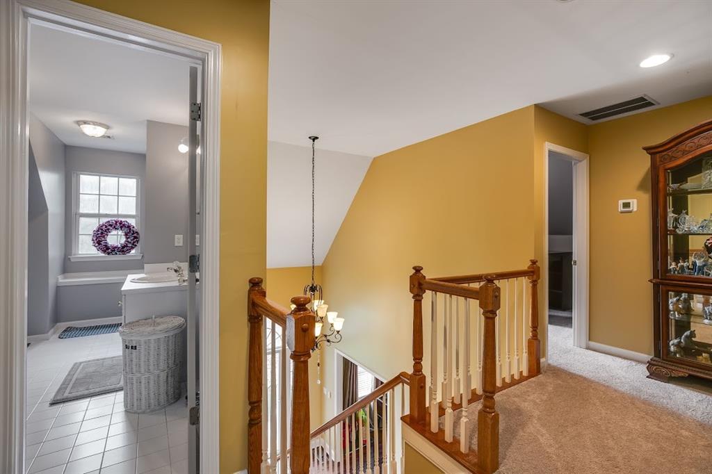 Beautiful three-sided brick home nestled on just over an acre at the end of a quiet cul-de-sac. This one-owner property has been lovingly maintained through the years and is ready to welcome its next homeowner. The primary suite is conveniently located on the main level and offers a spacious sitting area with a cozy gas fireplace (wowza!) and an enormous en-suite bathroom complete with a walk-in closet. Hand-scraped teak flooring flows throughout the office, dining room, and living room. where you'll find another inviting gas fireplace. The large eat-in kitchen is ideal for entertaining, offering plenty of seating and a secondary dining area for gatherings. A mudroom with slate floors and custom cabinetry connects the interior to the back deck and screened porch, creating a seamless blend of indoor and outdoor living. Upstairs, you'll find three additional bedrooms and a full bathroom, providing ample space for family or guests. Need even more room? The terrace level features a spacious bonus area, plus another bedroom and a full bath, perfect for guests, hobbies, or a home gym. Storage is never an issue here, thanks to generous closets throughout and a huge three-car garage. The private backyard is the perfect spot to relax, entertain, and enjoy nature, with a trickling creek that often draws friendly deer visitors. Located in a lovely community of well-kept homes, residents enjoy low HOA fees with access to a swimming pool and tennis courts. This home truly has it all. space, style, and serenity. Don't miss your chance to make it yours! Contact your favorite REALTOR® today.