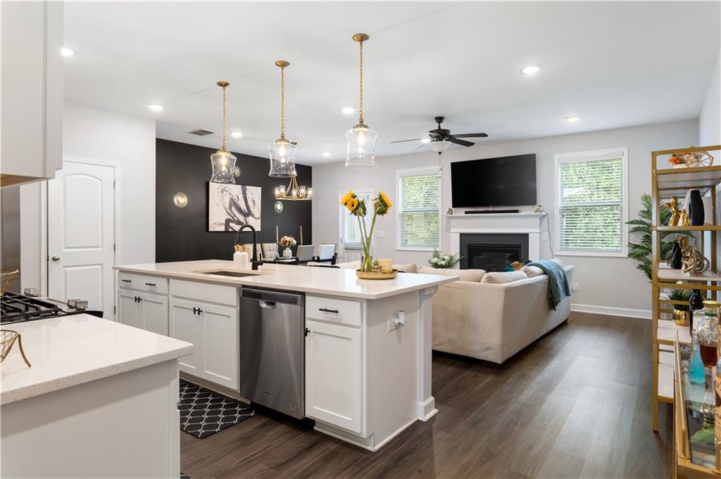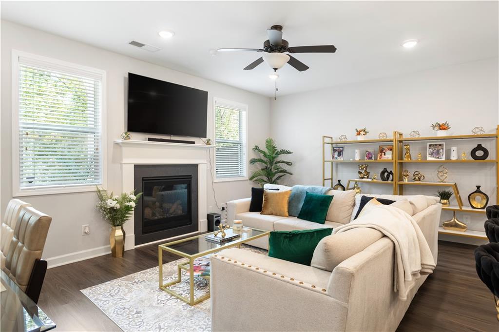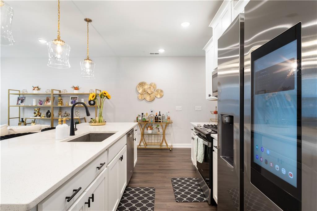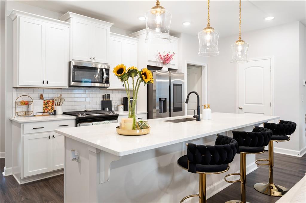 Welcome to 3730 Silvery Way, an Impeccably designed and modern Powder Springs home, that blends elegance with everyday comfort. The open-concept layout features a bright chef’s kitchen with quartz countertops, white shaker cabinetry, stainless steel appliances, and gold-accent lighting. The main living area offers effortless flow for dining and entertaining, while upstairs, the serene primary suite showcases a spa-inspired bath with dual vanities, sleek black fixtures, and a glass-enclosed shower. Secondary bedrooms provide versatility for guests or a home office. Nestled in the desirable Tapp Farm community, residents enjoy exceptional amenities including a resort-style pool, clubhouse, pickleball courts, grilling stations, firepit areas, and scenic walking trails. Ideally situated minutes from downtown Powder Springs, The Silver Comet Trail, shopping, dining, and top-rated Cobb County schools, this home offers the perfect balance of luxury, lifestyle, and convenience. A Home Buyer’s Warranty is included for added peace of mind, ensuring confidence and ease for the next homeowner.