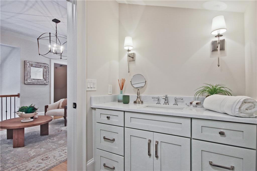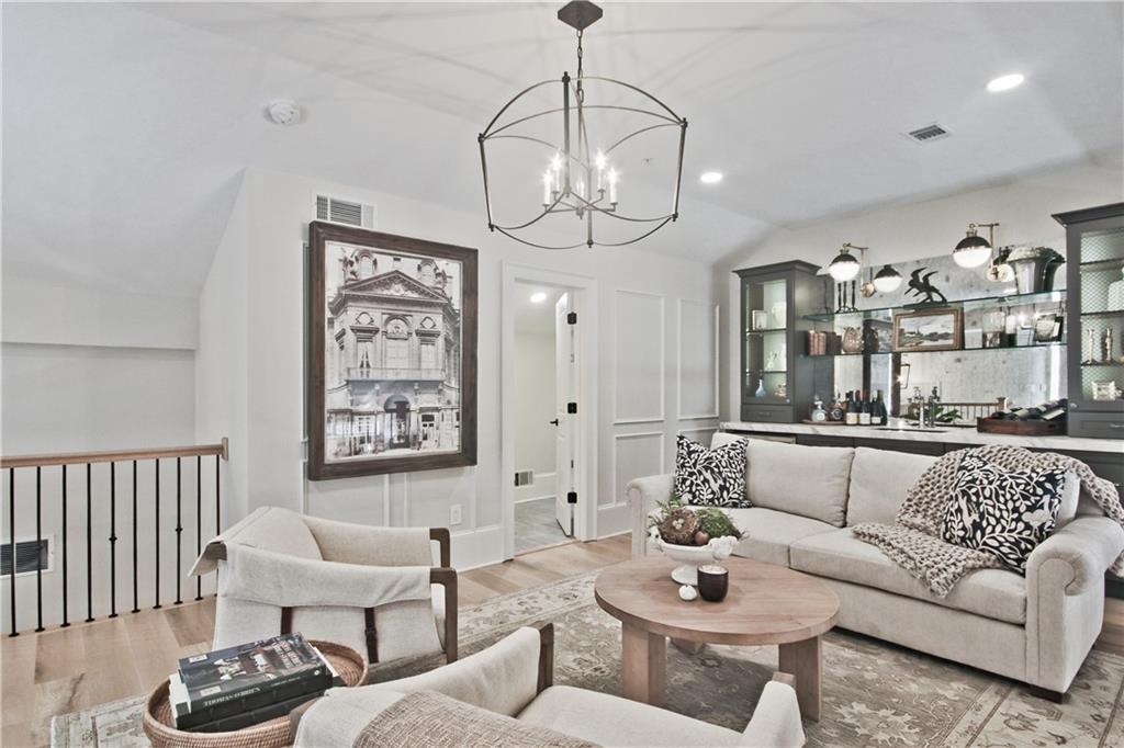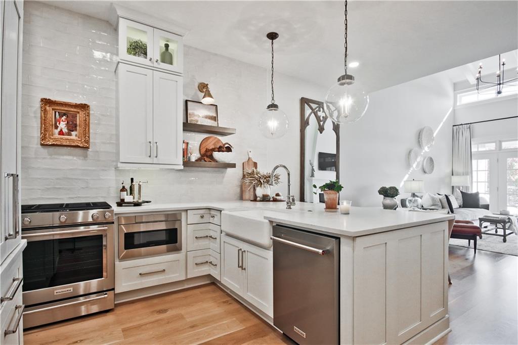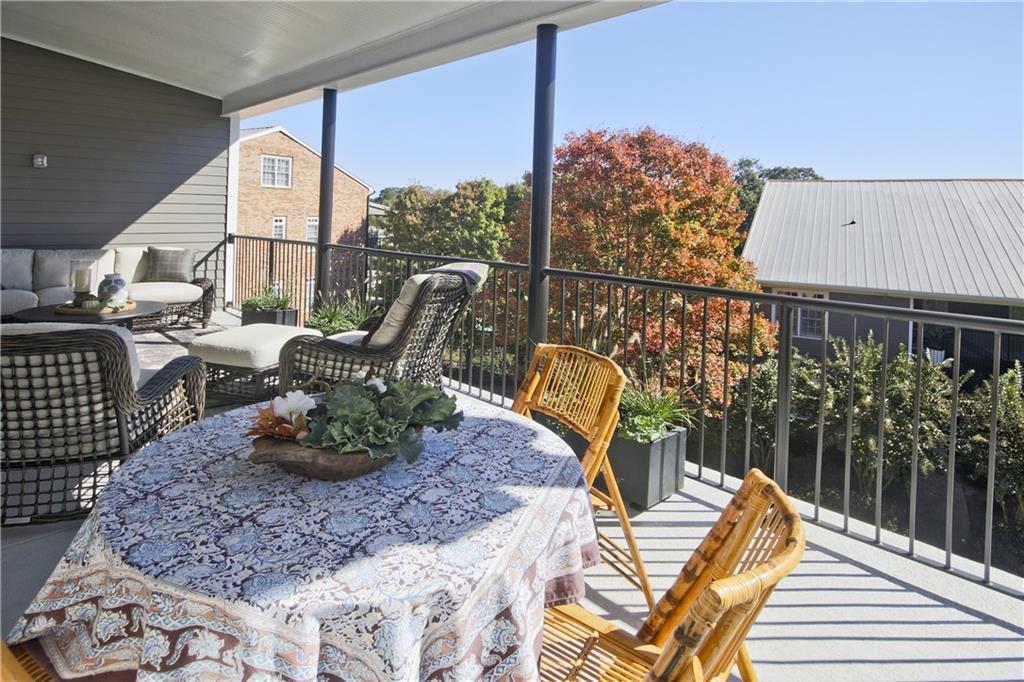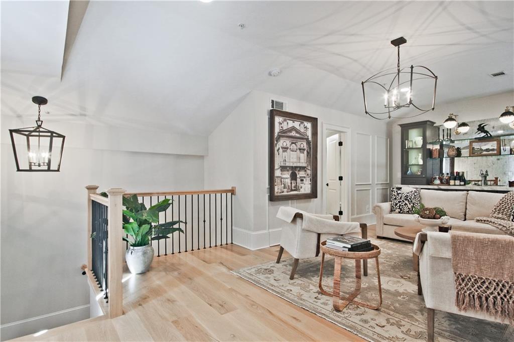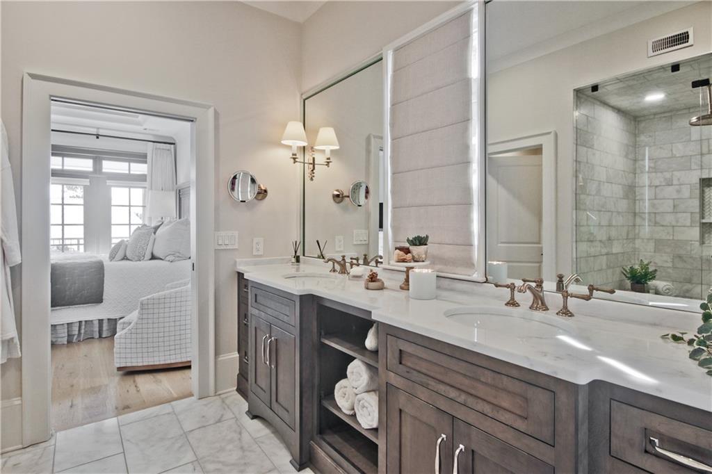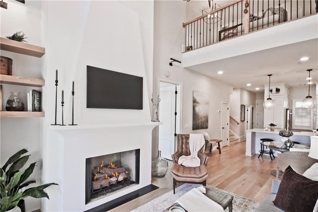 A Buyer’s Dream… Upscale, elegantly appointed, low maintenance and like-new! If you have dreamed of owning your own truly exceptional home in the Heart of Roswell – this is your chance! You are steps away from Restaurants, a Coffee Shop, the Vickery Creek waterfall, Covered bridge and Trails and just minutes from the Chattahoochee River and Riverwalk. This Stunning home has been completely Renovated and is filled with High Quality Designer Upgrades throughout - you will not be disappointed! Solid 7" wide White oak flooring, Quartz and Marble counters, gorgeous Custom High-end inset Cabinetry with soft close drawers, breathtaking Fireplace, Visual Comfort and Foundry high end lighting, a redesigned Staircase with tread lighting and Metal Balusters, Shiplap walls, and elegant moldings throughout are just a small sampling of all the numerous upgrades. The 3 bedroom, 3 bath top floor luxurious condo has been impeccably maintained and is one of the largest units in the complex - You won’t need to do a thing before moving in! Enjoy the comfort of the Spacious Family Room with Vaulted and Beamed Ceilings, 19 foot Custom Designed Fireplace, Floating Wood Shelving and Access to Large Covered Porch. The Open floorplan and flow is perfect for entertaining! Love the Chef’s Kitchen with View to Family Room equipped with Kitchen-Aid Stainless Steel Appliances, Gas Stove, Built-in Drawer Microwave, Full-size Refrigerator, Kohler Cast Iron Apron Sink, Oversized Breakfast Bar, Quartz Countertops, Subway Tile Backsplash, Accent Lighting, Beautiful High-end Solid Maple Custom Inset Ceiling Height Cabinetry with Soft Close Drawers and Glass Doors, Appliance Garage, Built in Pantry with slide-out Drawers and Oak Wood Floating Shelves. Feel pampered in the captivating Primary Suite on main featuring a Custom Ceiling Height Solid Maple Built-in Wardrobe with ample Hanging and Drawer Space, 10’ High Ceilings, Cove Lighting and Access to Covered Porch. The luxurious Primary Bath features Double Vanities with Marble Countertops and Floors, Kohler Solid Brass Fixtures, Gorgeous Steam Shower with Multiple Shower Heads, Bench Seating and Niche, Custom Inset Cabinetry and Additional Space for another Closet or extra Storage. Relax on your Expansive Covered Porch while having morning coffee or a beverage of your choice overlooking the Park-like Quiet community setting. There is another spacious Primary Bedroom on the main floor highlighting an Accent Wall of Elegant Moldings with direct access to a large Full Bath with Tub/Shower, Marble Counters, Floating Wood Shelves and Tile Accents. The wide Staircase with Metal Balusters, Tread Lighting, and Shiplap walls was redesigned for easy access to the Elegant Loft which spotlights a Spacious Seating Area, Custom Solid Maple Inset Ceiling Height Cabinetry Bar with Sink, Beverage Fridge, Quartz Counters, Aged Glass and Lighting Accents, Designer moldings, Additional Bedroom or Office and Full Bath with Shower and Marble Counters. There are two dedicated parking spots in the covered garage. New HVAC system, Recent Exterior Paint. The HOA includes exterior building maintenance, all grounds maintenance, water, trash, termite ….just enjoy life and not the upkeep of a home. Don’t miss this Incredible opportunity!