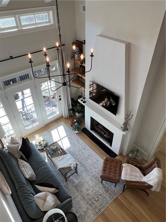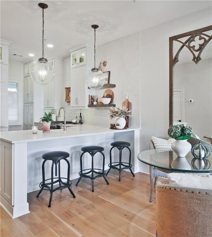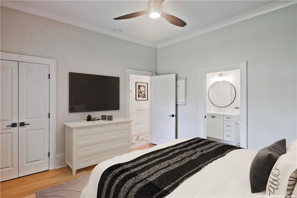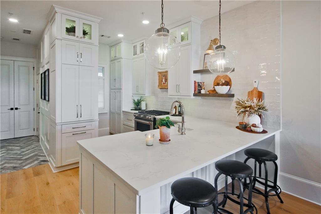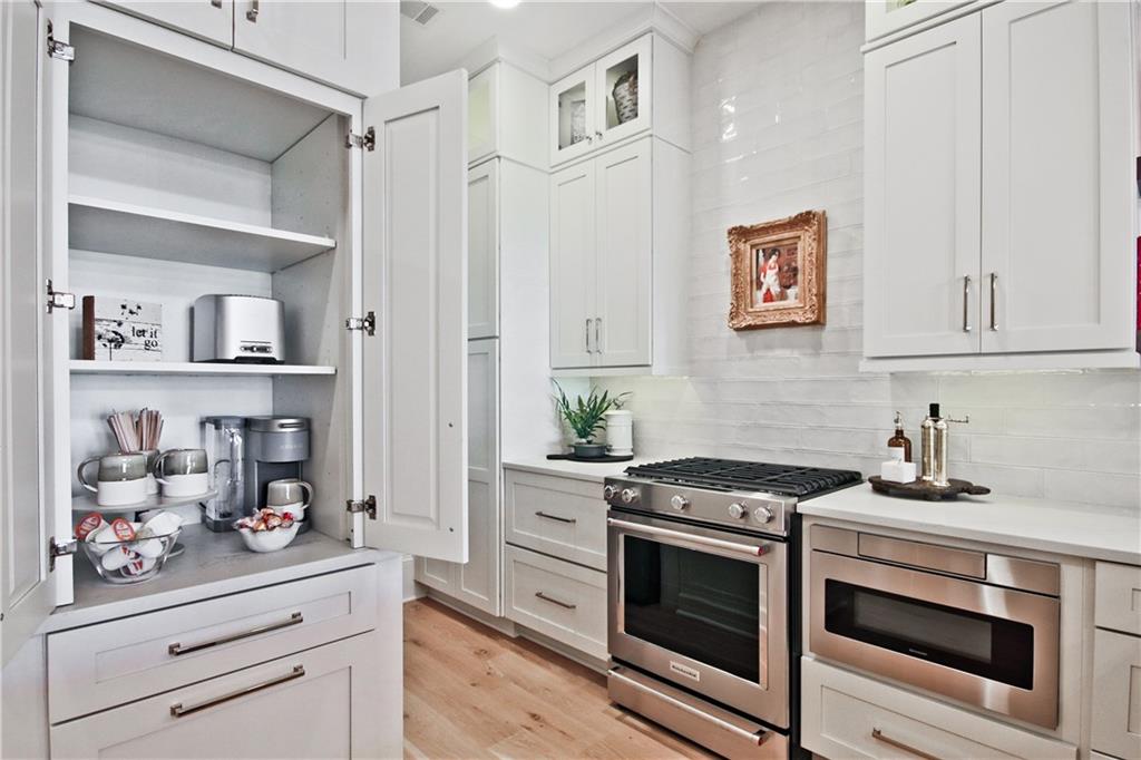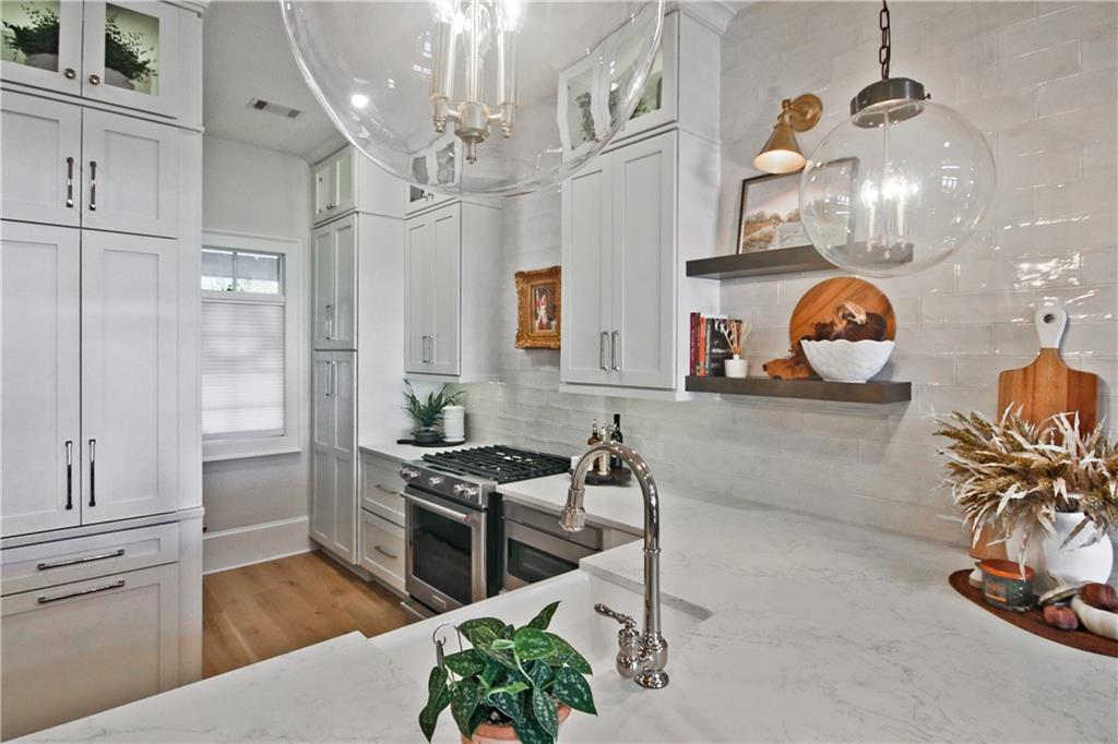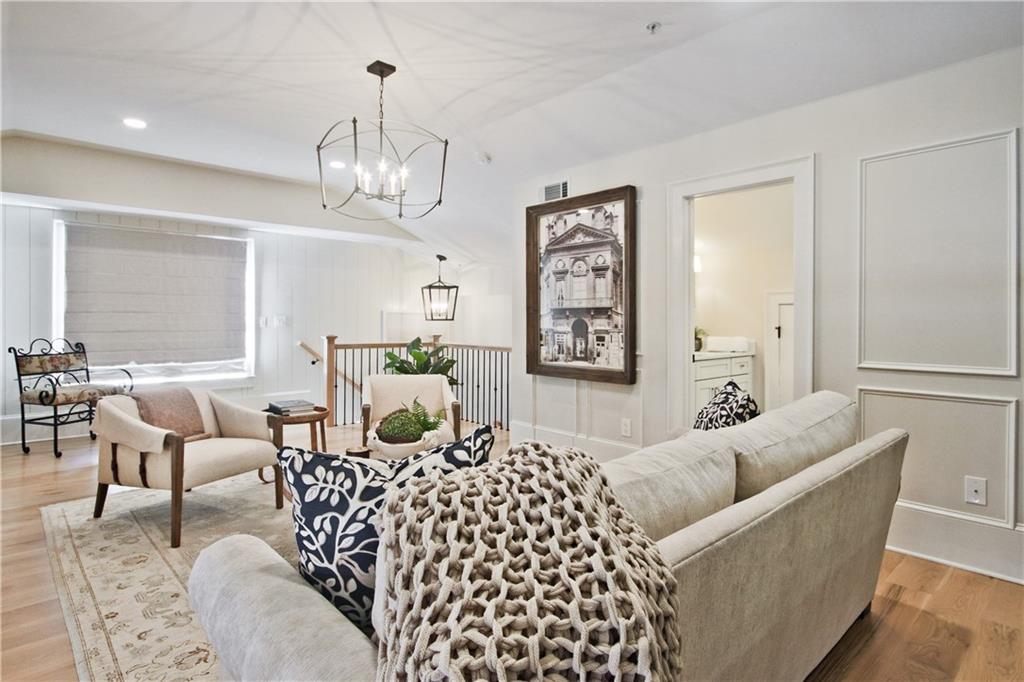 A Buyer’s Dream… Upscale, elegantly appointed, low maintenance and like-new! If you have dreamed of owning your own truly exceptional home in the Heart of Roswell – this is your chance! You are steps away from Restaurants, a Coffee Shop, the Vickery Creek waterfall, Covered bridge and Trails and just minutes from the Chattahoochee River and Riverwalk. This Stunning home has been completely Renovated and is filled with High Quality Designer Upgrades throughout - you will not be disappointed! Solid 7" wide White oak flooring, Quartz and Marble counters, gorgeous Custom High-end inset Cabinetry with soft close drawers, breathtaking Fireplace, Visual Comfort and Foundry high end lighting, a redesigned Staircase with tread lighting and Metal Balusters, Shiplap walls, and elegant moldings throughout are just a small sampling of all the numerous upgrades. The 3 bedroom, 3 bath top floor luxurious condo has been impeccably maintained and is one of the largest units in the complex - You won’t need to do a thing before moving in! Enjoy the comfort of the Spacious Family Room with Vaulted and Beamed Ceilings, 19 foot Custom Designed Fireplace, Floating Wood Shelving and Access to Large Covered Porch. The Open floorplan and flow is perfect for entertaining! Love the Chef’s Kitchen with View to Family Room equipped with Kitchen-Aid Stainless Steel Appliances, Gas Stove, Built-in Drawer Microwave, Full-size Refrigerator, Kohler Cast Iron Apron Sink, Oversized Breakfast Bar, Quartz Countertops, Subway Tile Backsplash, Accent Lighting, Beautiful High-end Solid Maple Custom Inset Ceiling Height Cabinetry with Soft Close Drawers and Glass Doors, Appliance Garage, Built in Pantry with slide-out Drawers and Oak Wood Floating Shelves. Feel pampered in the captivating Primary Suite on main featuring a Custom Ceiling Height Solid Maple Built-in Wardrobe with ample Hanging and Drawer Space, 10’ High Ceilings, Cove Lighting and Access to Covered Porch. The luxurious Primary Bath features Double Vanities with Marble Countertops and Floors, Kohler Solid Brass Fixtures, Gorgeous Steam Shower with Multiple Shower Heads, Bench Seating and Niche, Custom Inset Cabinetry and Additional Space for another Closet or extra Storage. Relax on your Expansive Covered Porch while having morning coffee or a beverage of your choice overlooking the Park-like Quiet community setting. There is another spacious Primary Bedroom on the main floor highlighting an Accent Wall of Elegant Moldings with direct access to a large Full Bath with Tub/Shower, Marble Counters, Floating Wood Shelves and Tile Accents. The wide Staircase with Metal Balusters, Tread Lighting, and Shiplap walls was redesigned for easy access to the Elegant Loft which spotlights a Spacious Seating Area, Custom Solid Maple Inset Ceiling Height Cabinetry Bar with Sink, Beverage Fridge, Quartz Counters, Aged Glass and Lighting Accents, Designer moldings, Additional Bedroom or Office and Full Bath with Shower and Marble Counters. There are two dedicated parking spots in the covered garage. New HVAC system, Recent Exterior Paint. The HOA includes exterior building maintenance, all grounds maintenance, water, trash, termite ….just enjoy life and not the upkeep of a home. Don’t miss this Incredible opportunity!