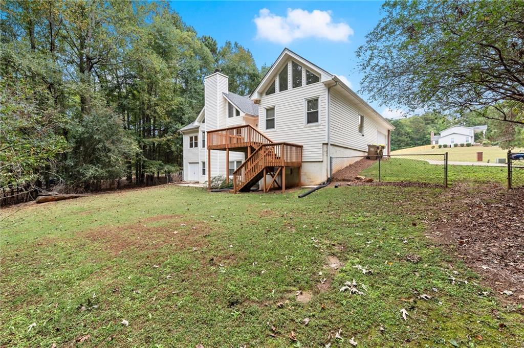 PICTURE PERFECT RANCH HOME ON A BASEMENT! IDEALLY LOCATED IN THE HIGHLY SOUGHT AFTER COMMUNITY OF QUAIL CROSSING. Situated on an acre lot with a fenced yard, long driveway and wonderful curb appeal. Bright and airy with soaring ceilings and walls of windows. Beautiful Mohawk laminate wood flooring throughout and fresh interior paint. Kitchen with breakfast bar and dining nook. The Great room offers vaulted ceilings, fireplace and access out to the expansive deck overlooking and with access to the backyard. The primary suite features vaulted ceilings, ceiling fan and french doors to the outdoor deck to enjoy your morning coffee or relax in the evening with the private backyard view. The primary bathroom boasts a soaking tub with separate shower, dual vanity sinks and a large walk-in closet. 2 spacious secondary bedrooms feature plush carpeting and share a guest bathroom. Convenient separate laundry room. The basement features a room with a fireplace, perfect for entertainment room/playroom/office, etc...and the unfinished area offers endless storage and the opportunity to set it up to suit your needs. Spacious, fenced backyard. Fantastic location close to Hoschton Recreation Park, numerous parks, shopping and dining spots and easy access to I-85, Hwy 53, Hwy 211, Hwy 124 as well as Chateau Elan Winery and historic Braselton.