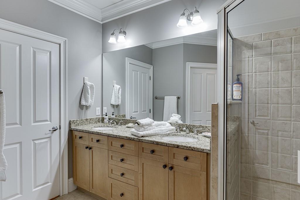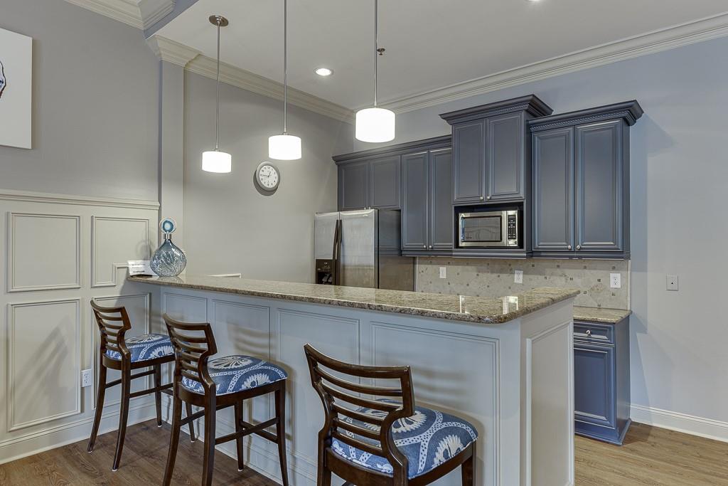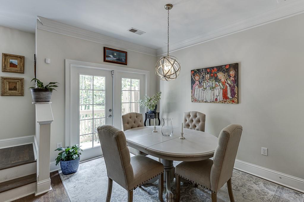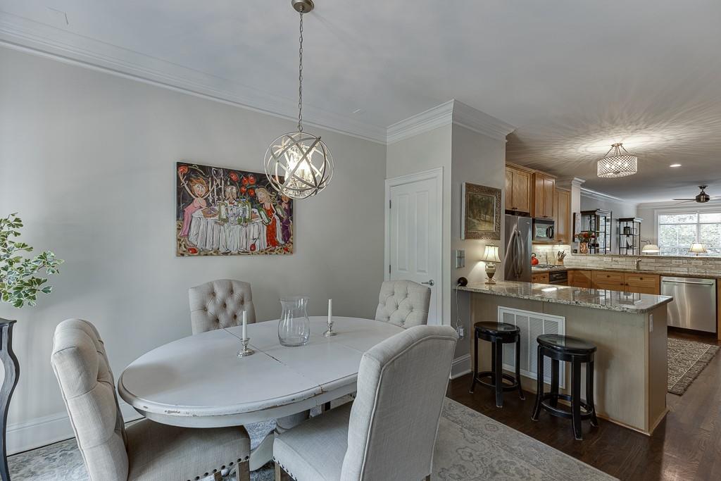 This GATED affordable townhome community is the best location in all of Metro Atlanta. Located within walking distance to all the Hospitals on Pill Hill: Children’s Healthcare of Atlanta, Emory at St. Joseph’s, and Northside Hospital. If you need a fast commute to anywhere in North Metro Atlanta, the entrance to Ga 400 and I 285 is just half a mile away. The open concept three level townhome features a large front living room, with the kitchen is located in the middle, and the dining area overlooks the wooded view. The current owner enjoyed time with her family while she was cooking in the kitchen; a group was watching football in the living room, and the kids were at the dining room table playing games. This layout will enable you to spend time with your guests while everyone enjoys different activities. The light-filled living area has hardwood floors, a half bathroom, beautiful designer light fixtures, and deluxe crown molding. Modern shaker style maple cabinets envelope the kitchen. Stainless-steel appliances and plenty of neutral granite counter tops grace this highly coveted U-shaped kitchen layout. One of the favorite things the current owner enjoys is the wooded view from both the dining room as well as the primary suite. On the upper level is the over sized primary suite, which is large enough to create an office or lounging space. The en-suite bathroom has dual vanities with granite counter tops, a whirlpool tub and separate tiled shower, a water closet, and a spacious walk-in closet. The secondary upper bedroom also has a walk-in closet and an attached private full bathroom. On the ground level, there is a third bedroom with a large walk-in closet, access to the garage, and a private patio out back. Don't be deceived by the garage door, as this home has a 2 car tandem garage. Washer & Dryer are included, and both HVAC units were replaced in 2024. Glenridge Creek is pet-friendly; with 2 gated entrances. Be sure to tour the pool, fitness center, billiards room, business center, and clubhouse at Peachtree Dunwoody Rd entrance.