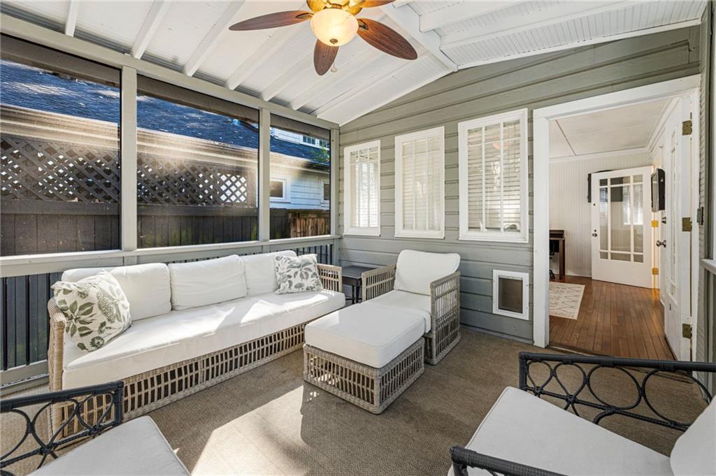 Welcome to this beautifully maintained 3 bedroom, 2 bathroom bungalow blending historic charm with modern updates in one of Atlanta’s most desirable in-town neighborhoods. The open concept floor plan connects the separate dining space, kitchen and fireside family room featuring vaulted ceilings & built-in bookshelves. A renovated primary suite offers a spacious walk-in closet and dual-vanity updated bathroom with designer finishes. The screened in porch overlooks the private, fully fenced and turfed backyard is perfect for pets, play or entertaining. Additional highlights include a brand new roof, charming front porch with views of the landscaped front yard, and unbeatable proximity to the Atlanta BeltLine. Just a short stroll to the neighborhood’s beloved park, complete with a playground, pond, and dog park. Don’t miss this rare opportunity to own a move-in ready home in Loring Heights—an ideal location close to Midtown, Westside, Buckhead, and all that Atlanta has to offer.