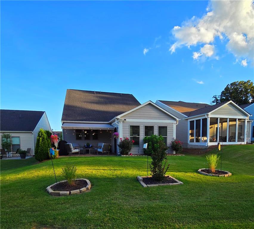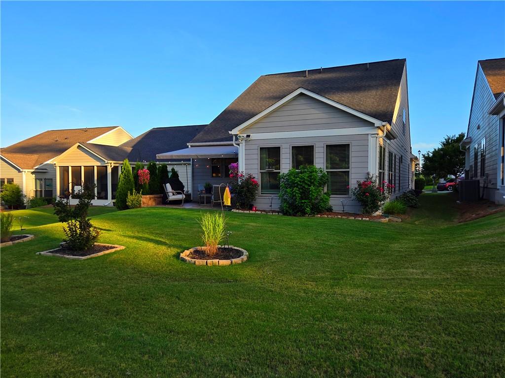 Welcome to this beautifully maintained 3-bedroom, 2-bath 1.5-story home located in the prestigious 55+ active adult community of Del Webb Chateau Elan in Hoschton, GA. Situated in a quiet cul-de-sac, this thoughtfully designed home offers an open-concept layout with beautiful hardwood flooring throughout the main level. The primary suite is located on the main floor and features a fully renovated en-suite bath with a large, luxurious zero-entry shower. Two additional bedrooms, including a versatile flex room, provide space for guests, a home office, or hobbies. A bonus room on the upper level adds even more flexible space for an extra bedroom, media room, craft room, or additional guest area. Enjoy natural light all year round in the sunroom addition, or step outside to a covered patio that's perfect for entertaining or relaxing. The home also features a two-car garage with built-in storage and a professionally landscaped yard, fully maintained by the HOA for low-maintenance living. Del Webb Chateau Elan offers resort-style amenities including indoor and outdoor swimming pools, a clubhouse with organized social events and hobby clubs, a state-of-the-art fitness center, tennis and pickleball courts, bocce ball, and scenic walking trails. Conveniently located near shopping, dining, healthcare, and just minutes from the Chateau Elan Winery & Resort, this home offers the perfect blend of comfort, convenience, and community. Don't miss your opportunity to live in one of Georgia's most sought-after active adult neighborhoods!