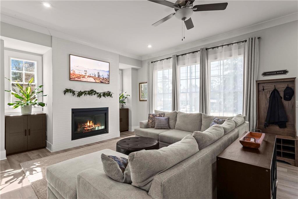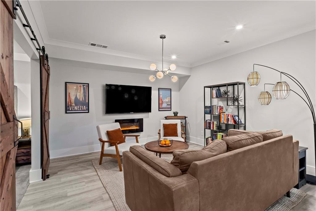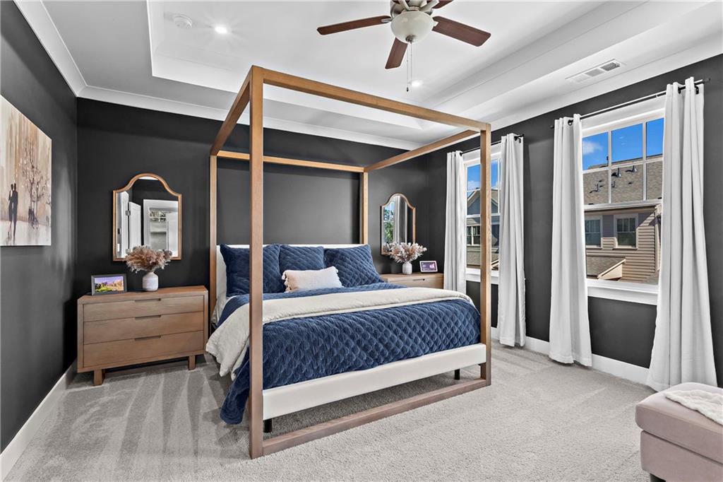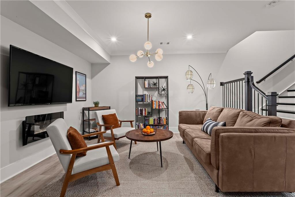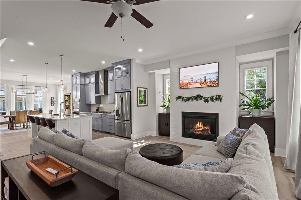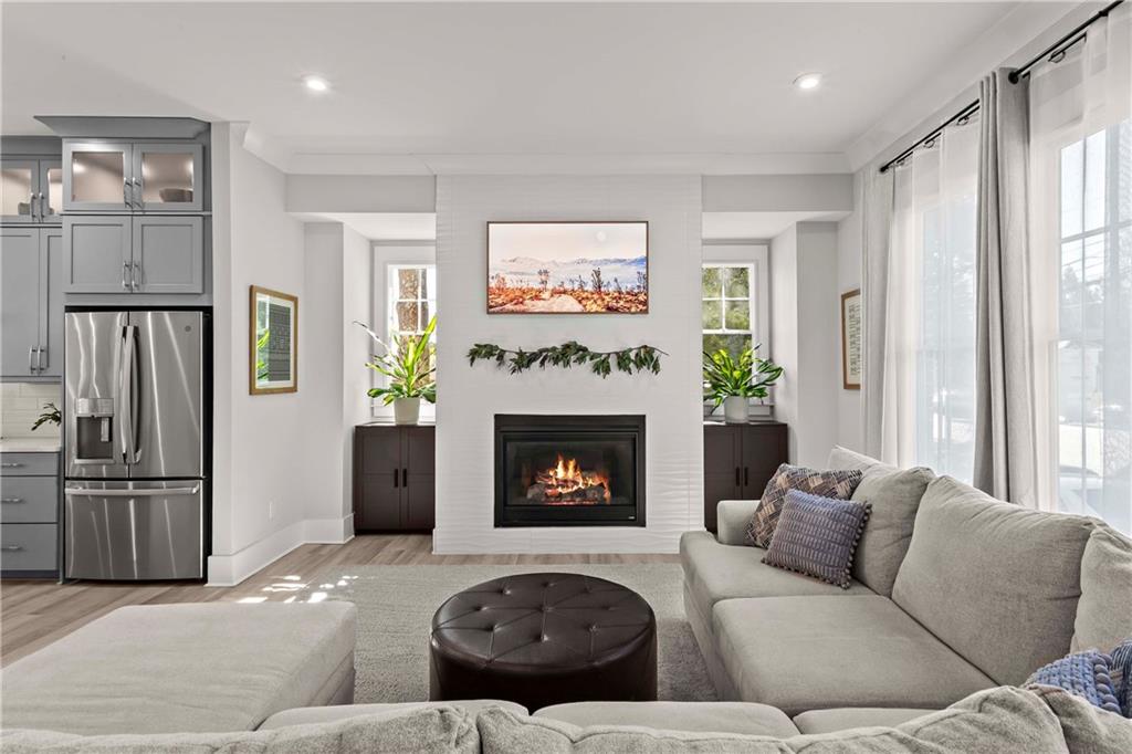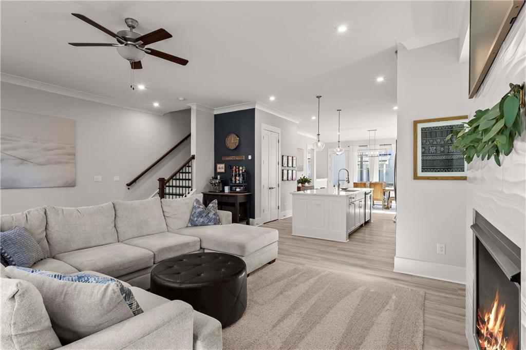 Welcome to one of Roswell’s most charming communities, Canopy! This like-new 3 bedroom, 3.5 bathroom end unit townhome offers a rare private fenced side yard and lives large with bright, open spaces + thoughtful upgrades throughout. The main level is both open and inviting, featuring a fireside living room, dining room, and a chef’s kitchen with a large island, bar seating for four, a large walk-in pantry, and stylish pendant lighting. Also found on the main level is an office or study nook plus a half bath. Don't miss the sizable outdoor deck, perfect for morning coffee or evening happy hour. Upstairs you’ll find a primary suite that offers a large custom walk-in closet and a spa-like bathroom with dual vanities. Two spacious secondary bedrooms, a secondary bathroom, and laundry complete the second level. The finished terrace level is a special treat for movie night! It features a full bathroom and barn doors that lead to a fourth bedroom, a home office, or gym. The oversized two-car garage offers excellent storage + a Tesla EV car charger. A community dog park is loved by many! Enjoy unbeatable access to local favorites with Roswell Junction, Summit Coffee, The Mill, and Souper Jenny just minutes away—and the beloved shops and restaurants of Canton Street only a short distance from your door.