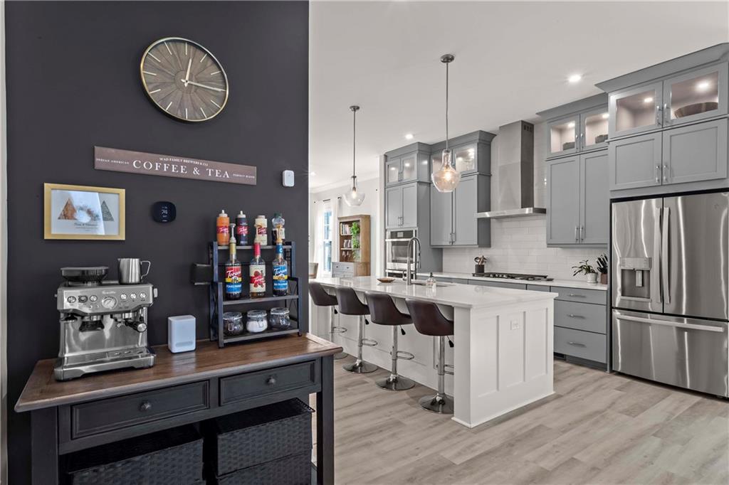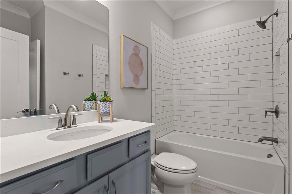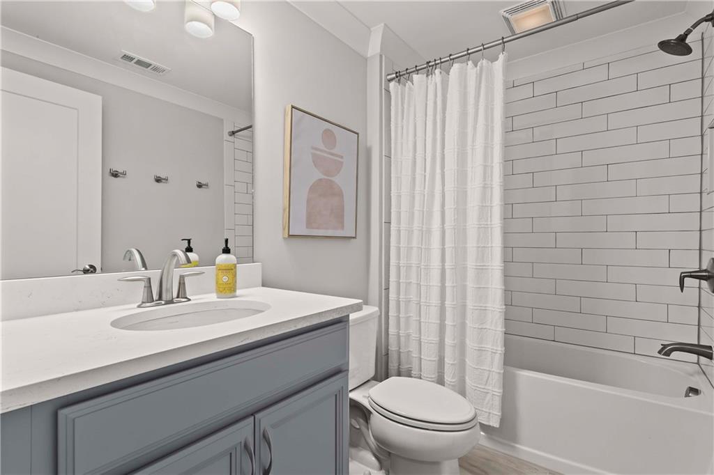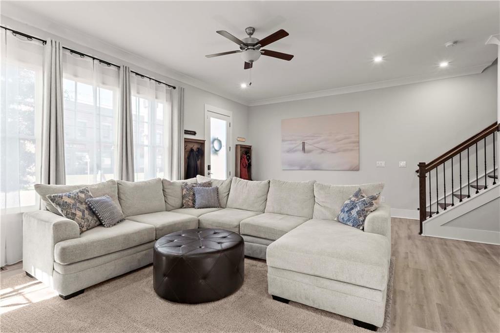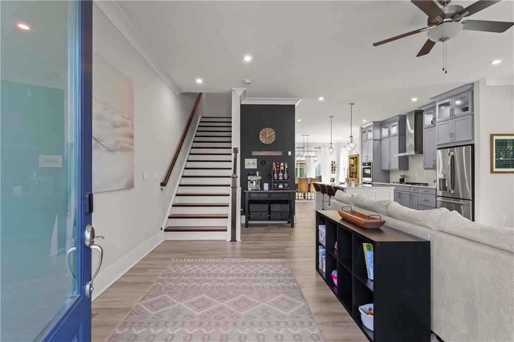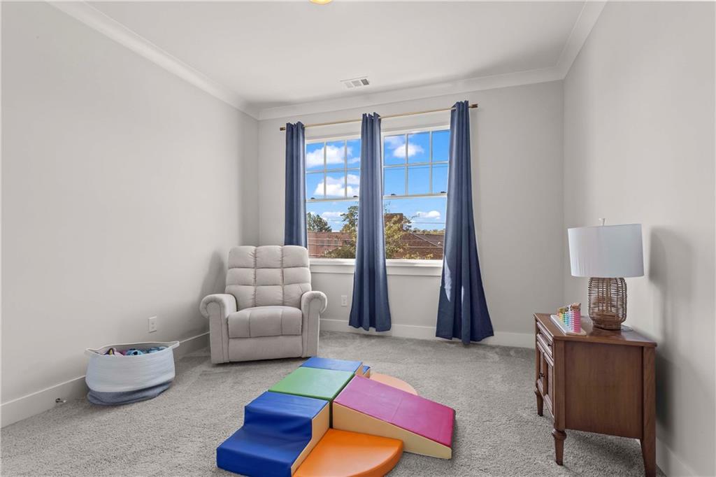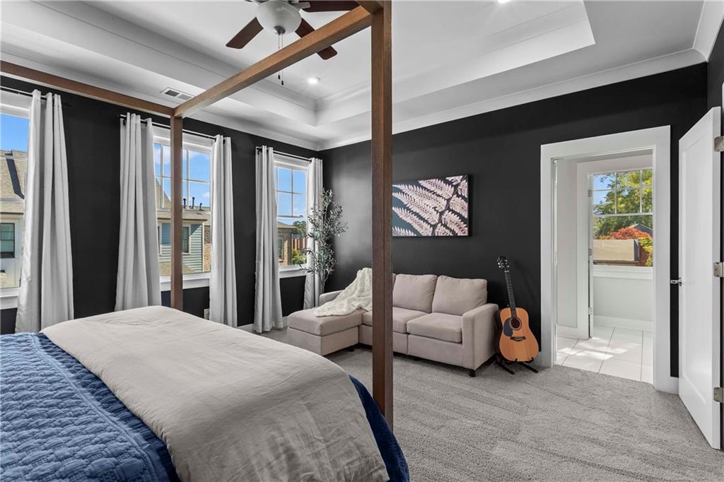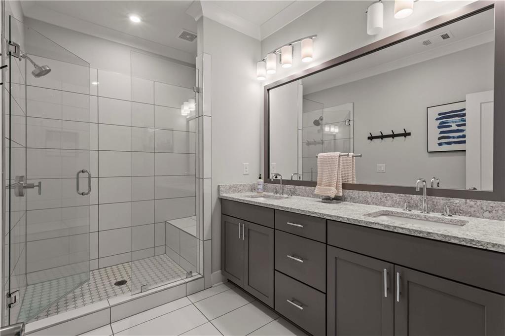 Welcome to one of Roswell’s most charming communities, Canopy! This like-new 3 bedroom, 3.5 bathroom end unit townhome offers a rare private fenced side yard and lives large with bright, open spaces + thoughtful upgrades throughout. The main level is both open and inviting, featuring a fireside living room, dining room, and a chef’s kitchen with a large island, bar seating for four, a large walk-in pantry, and stylish pendant lighting. Also found on the main level is an office or study nook plus a half bath. Don't miss the sizable outdoor deck, perfect for morning coffee or evening happy hour. Upstairs you’ll find a primary suite that offers a large custom walk-in closet and a spa-like bathroom with dual vanities. Two spacious secondary bedrooms, a secondary bathroom, and laundry complete the second level. The finished terrace level is a special treat for movie night! It features a full bathroom and barn doors that lead to a fourth bedroom, a home office, or gym. The oversized two-car garage offers excellent storage + a Tesla EV car charger. A community dog park is loved by many! Enjoy unbeatable access to local favorites with Roswell Junction, Summit Coffee, The Mill, and Souper Jenny just minutes away—and the beloved shops and restaurants of Canton Street only a short distance from your door.
