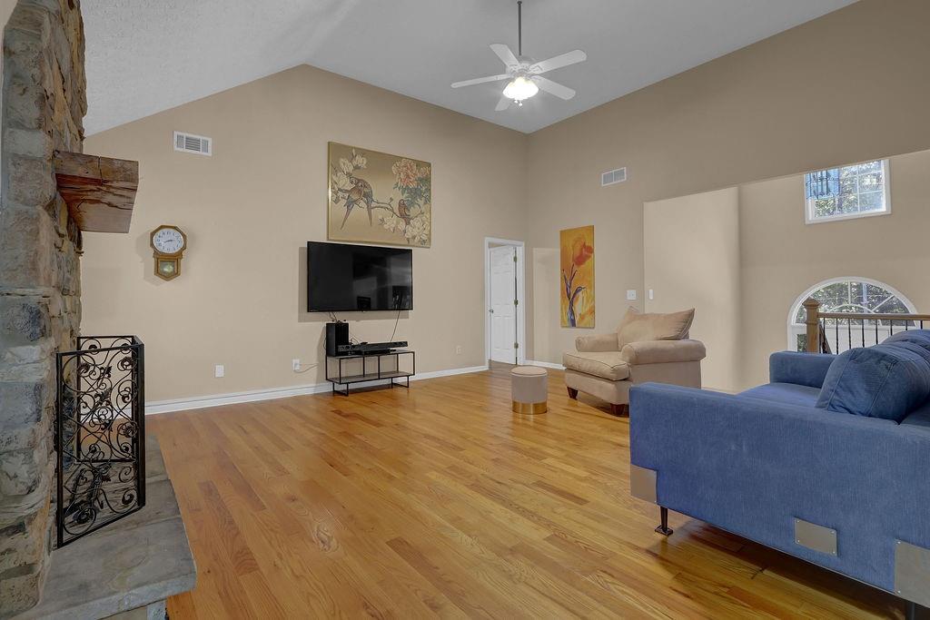 4% Assumable FHA Rate with Roam! Nestled at the back of a peaceful subdivision, this beautifully maintained 4-bedroom, 3-bath split-level home sits on a large, wooded lot offering privacy, space, and charm. Step inside to discover an open-concept layout perfect for modern living. The spacious family room features a stunning stone gas fireplace and flows seamlessly into the kitchen and dining areas—ideal for entertaining. Just off the dining space, enjoy the outdoors year-round on your large covered back deck, overlooking serene wooded views. The master suite is a true retreat, complete with an en-suite bath featuring a double vanity, a large walk-in closet, and a relaxing layout designed for comfort. Downstairs, the lower level offers incredible flexibility with a fourth bedroom, full bath, and a generous bonus room—currently outfitted as the perfect music or recording studio. Additional highlights include a brand new front porch, a large rear walk-out patio, and the quiet comfort of cul-de-sac living. Home also includes additional RV storage space complete with full 50 amp RV hookup Don’t miss your chance to own this unique and inviting home—schedule your showing today!