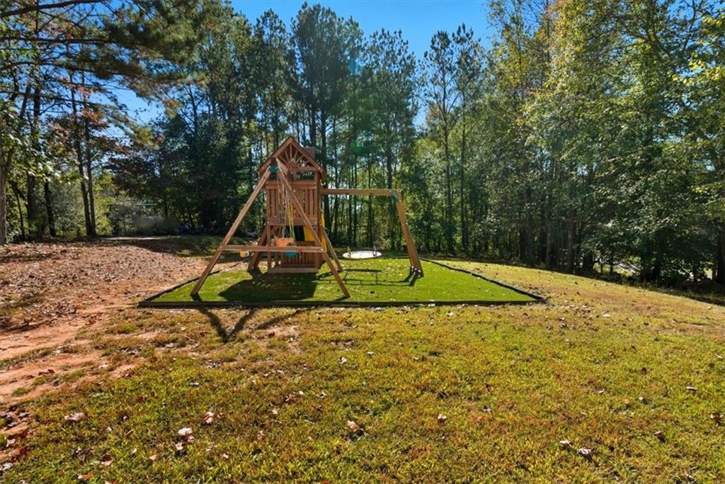 Location, Privacy, and Space—This One Has It All! Close to both Downtown Ball Ground and Downtown Jasper, this 4-bedroom, 3.5-bath home sits on a 1-acre lot with no HOA. The main level features a spacious dining room, a well-appointed kitchen with ample counter space and storage, and a cozy family room with an updated hearth. The roomy primary suite on the main offers a walk-in closet, dual vanities, soaking tub, and separate shower. Upstairs includes two large secondary bedrooms, both with walk-in closets and a shared Jack-and-Jill bath. All upstairs windows have been recently replaced for improved energy efficiency. The fully finished terrace level is perfect for entertaining and includes a large media room (wired for multiple TVs), a kitchenette, guest bedroom, and a full bath. Enjoy outdoor living with a new front porch, covered back porch, and a leveled side yard ideal for a firepit and play area. A detached 2-car garage provides additional storage or workshop space. Recent updates include a new roof, gutters, and downspouts. This move-in ready home offers the perfect combination of convenience, comfort, and privacy!