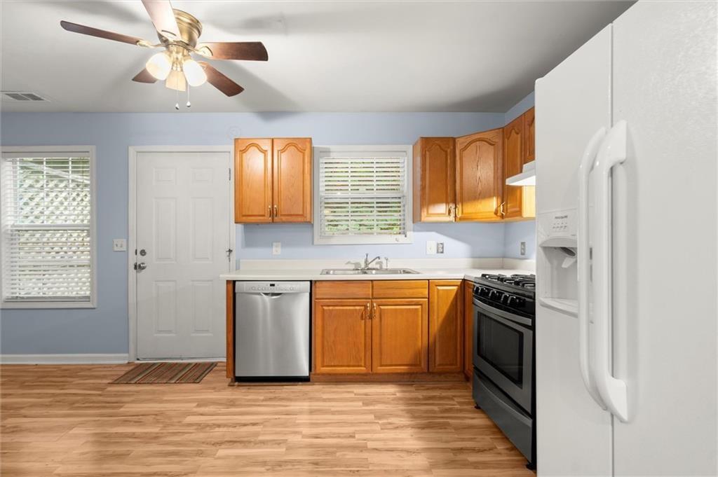 Situated directly across from Big Creek and the Oxbo Trail, this charming townhome puts you just minutes from Downtown Roswell and all that Canton Street has to offer. Enjoy an unbeatable blend of nature and convenience—surrounded by upscale dining, boutique shopping, local art galleries, coffee houses, and year-round community events. Whether you prefer peaceful morning walks or vibrant nights out, you’ll love being in the heart of it all. The open-concept floor plan is filled with natural light and designed for everyday comfort and easy entertaining. The main level features a spacious living room, open dining area, laundry closet, and a bright kitchen. Upstairs, two generously sized bedrooms share a full bath, while a convenient half-bath serves the main floor. Move-in ready, the home also offers excellent potential for updates and personal touches to make it your own—or to build additional value. Nature lovers will appreciate the serene beauty right across the street. Big Creek and Vickery Creek Trail offer scenic paths that connect to Old Mill Park with its iconic covered bridge and waterfall views. The nearby Chattahoochee River National Recreation Area adds even more options for outdoor adventure—kayaking, fishing, hiking, and more. Whether you’re a first-time buyer, investor, or looking to downsize in a walkable, vibrant location, this townhome is a rare find. With strong surrounding property values, the possibilities are wide open. Don’t miss your chance to own in one of North Fulton’s most desirable, character-filled neighborhoods!