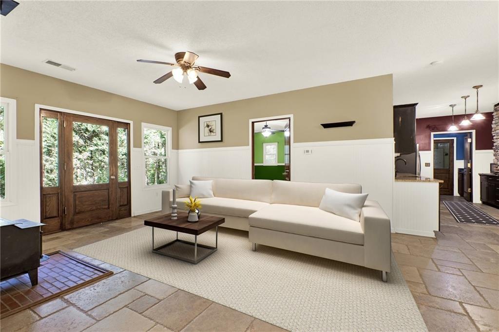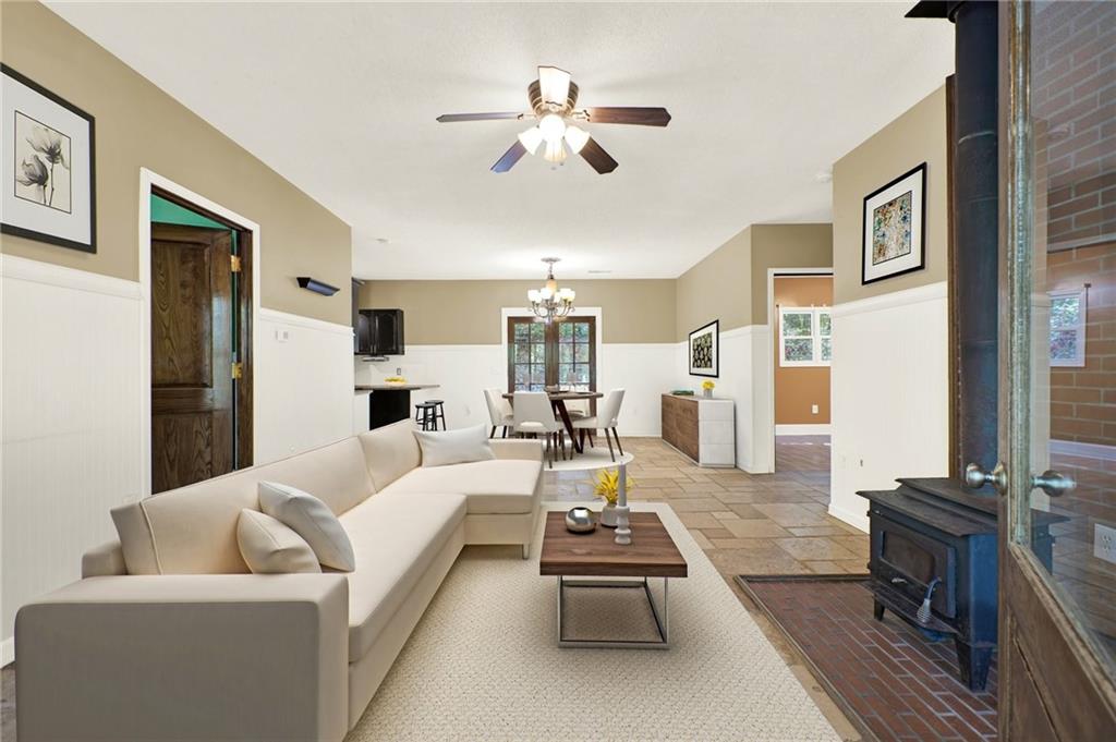 Motivated Seller will look at all reasonable offers. Discover this inviting ranch home nestled on a private 1.51+/- acre lot surrounded by nature and abundant wildlife. The main home offers an open floor plan that seamlessly blends comfort and functionality, featuring two bedrooms, a versatile flex room perfect for an office or bedroom (has been used as a 3rd bedroom for years). The beautifully designed Italian-style kitchen offers style and efficiency, complemented by a separate laundry room/mud room, and a one-car garage for added convenience. The property also includes a spacious guest house with an open-concept layout, a bar area with cabinets which is ideal for a micro-kitchen, and a full bath - perfect for visitors, extended family or an office. With plenty of parking and peaceful surroundings, this property makes an ideal full-time residence or a relaxing weekend getaway.
